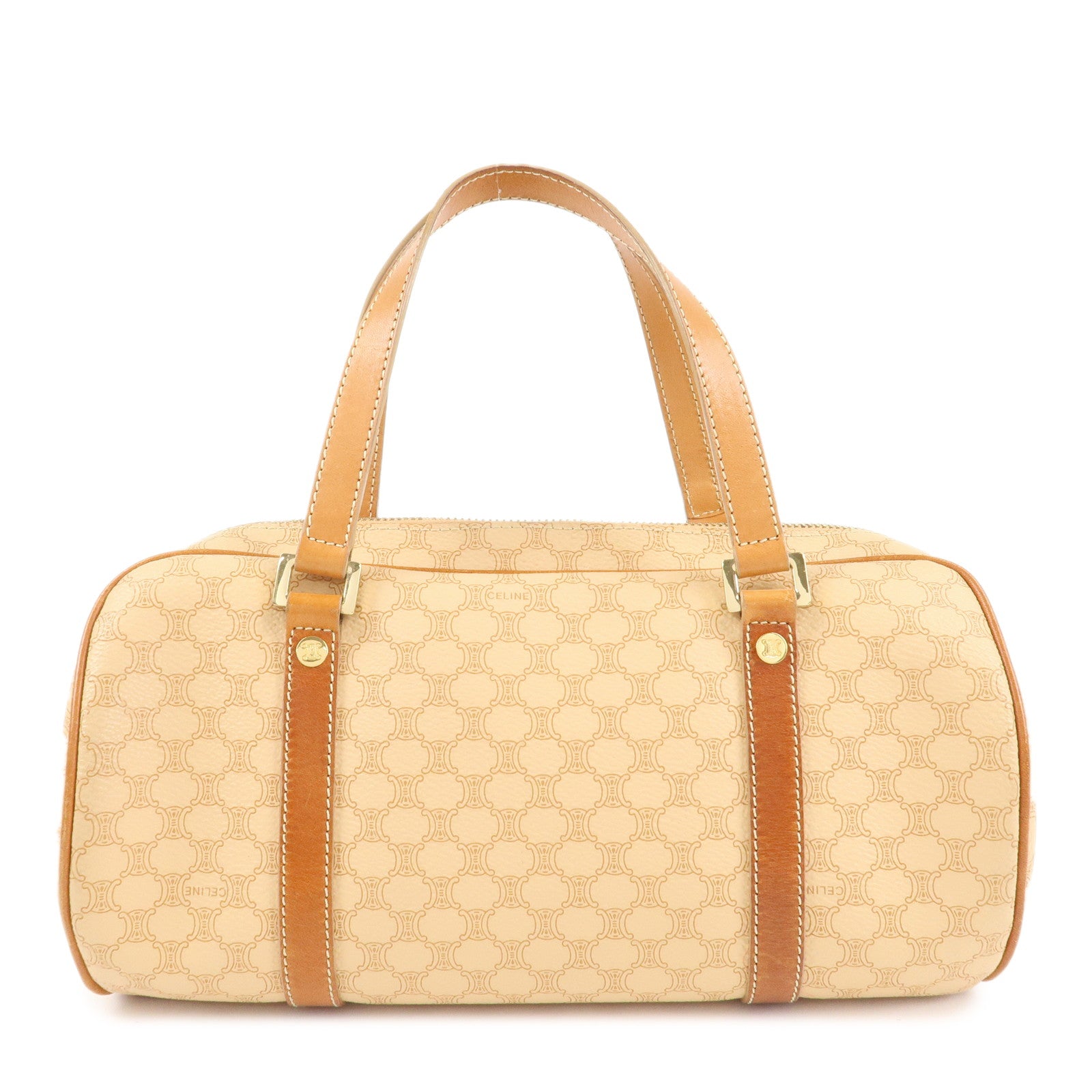 CELINE Macadam PVC Leather Mini Boston Bag Hand Bag Beige Used