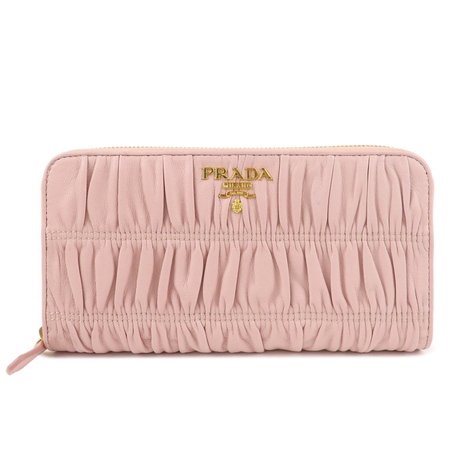 PRADA Leather Gather Round Zippy Wallet Gold Hardware Pink 1M0506 Used