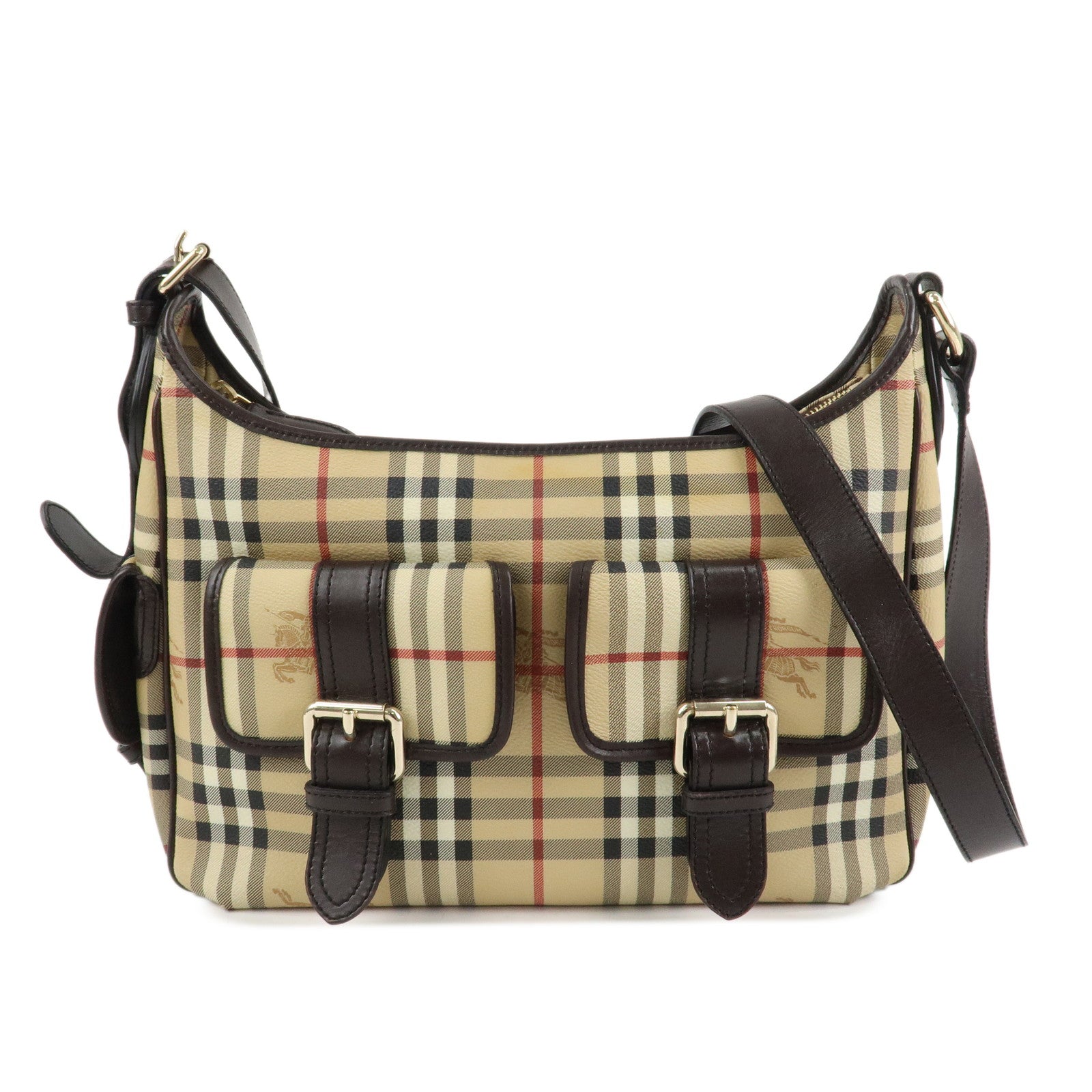 BURBERRY Nova Plaid Canvas Leather Shoulder Bag Hand Bag Used