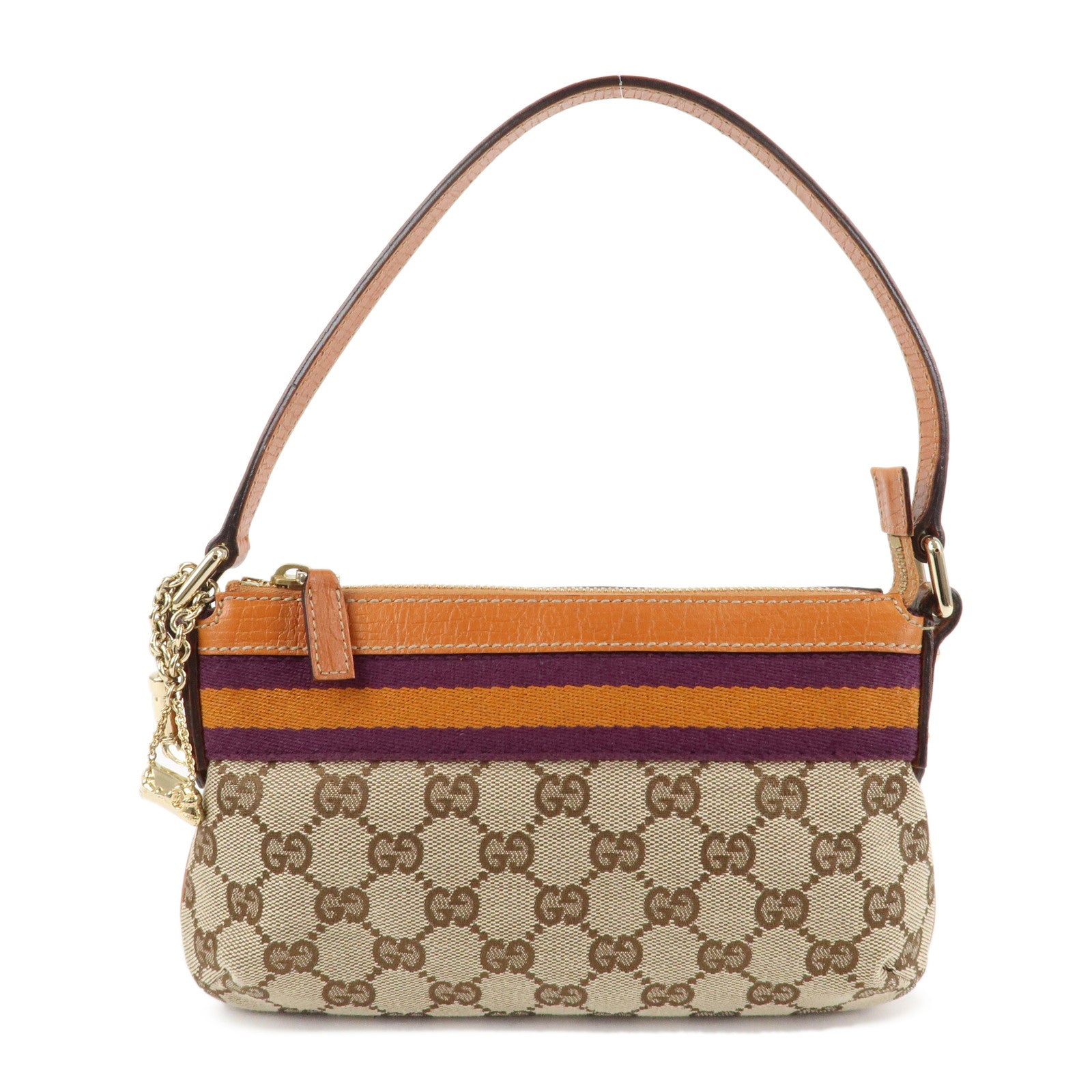 GUCCI Sherry GG Canvas Leather Shoulder Bag Gold Boots Bag Charm 145970 Used