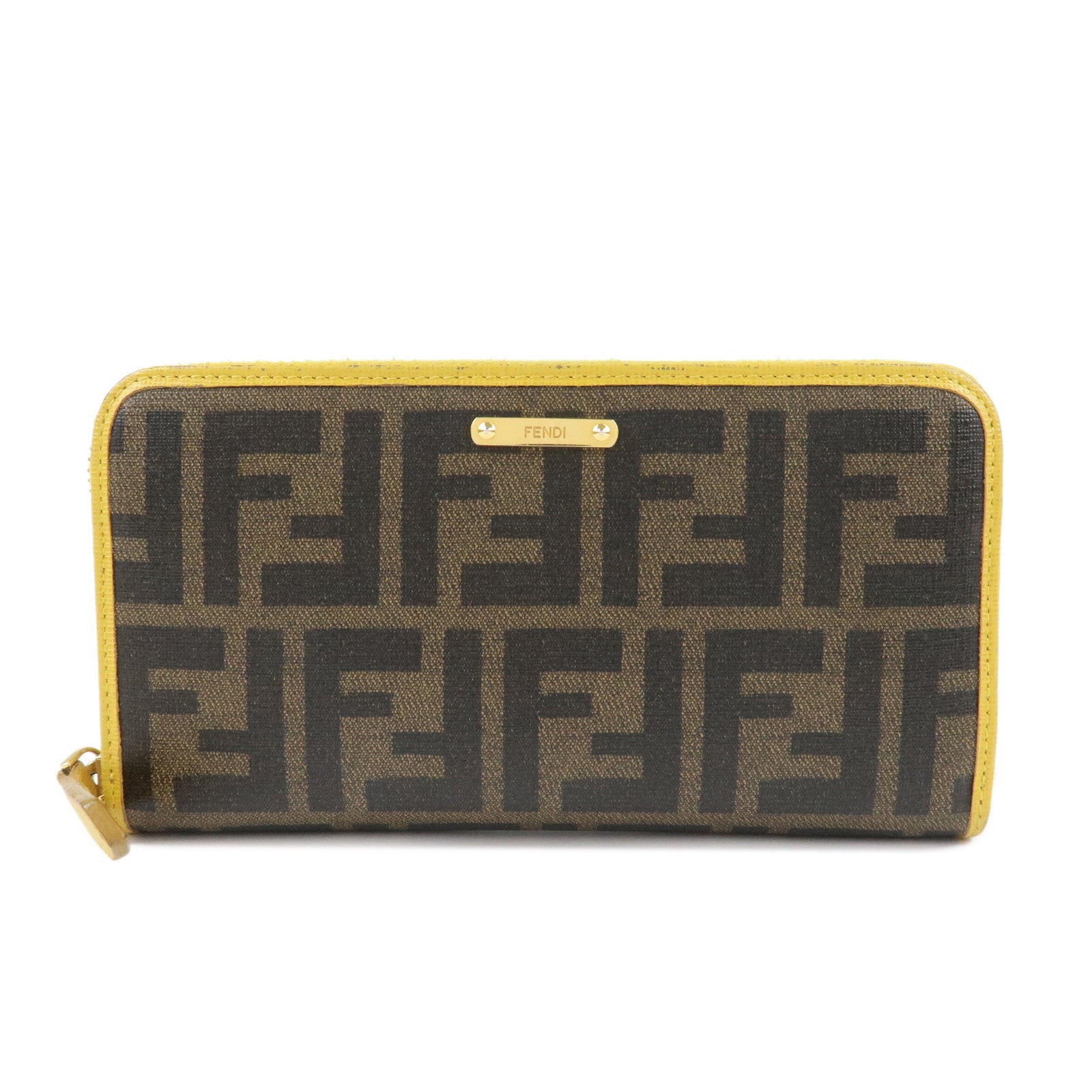FENDI Zucca PVC Leather Round Zippy Long Wallet Brown Yellow 8M0299 Used