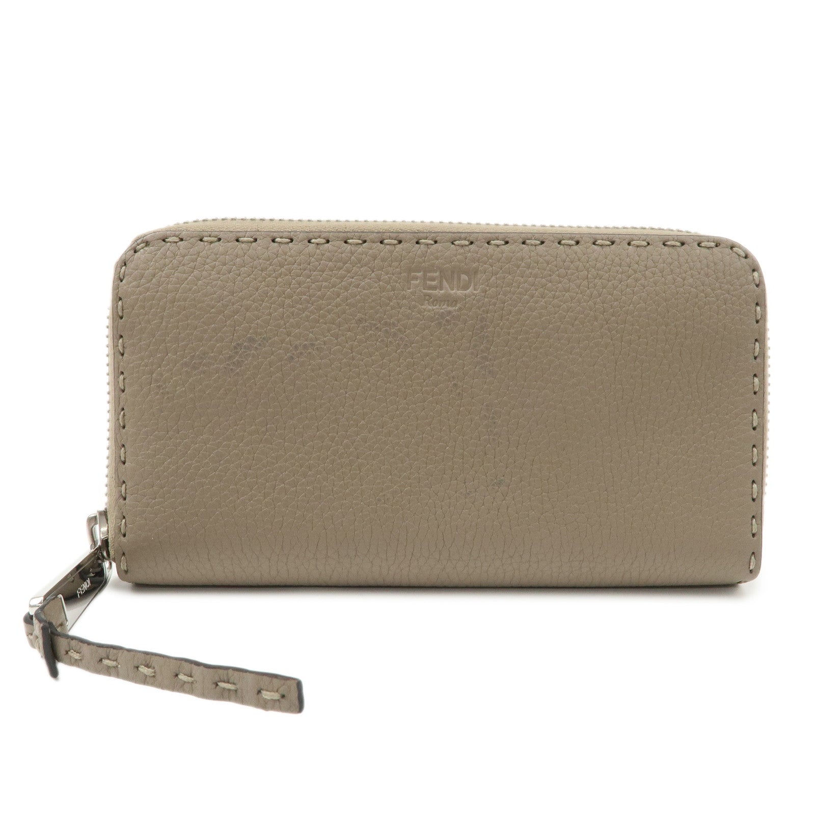 FENDI Selleria Leather Zip Around Long Wallet Greige 8M0374 Used