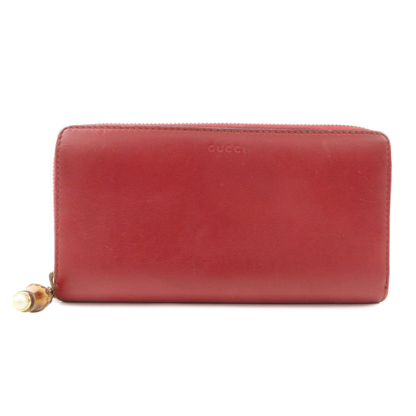 GUCCI Bamboo Leather Round Zippy Wallet Long Wallet Red Used