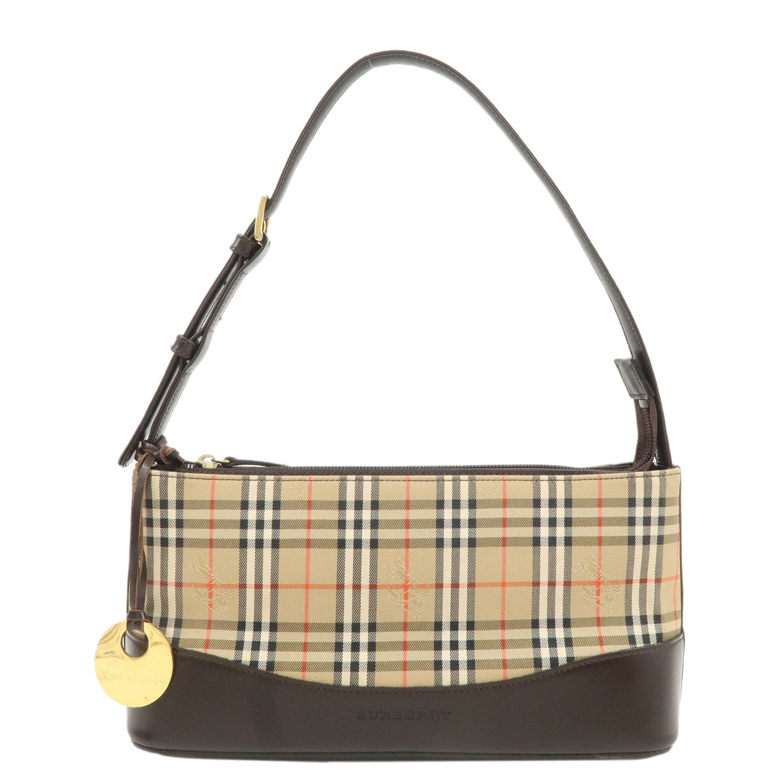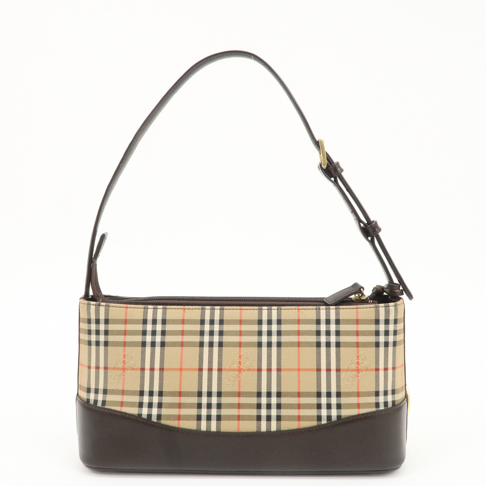 BURBERRY Canvas Leather Nova Plaid Shoulder Bag Hand Bag Used