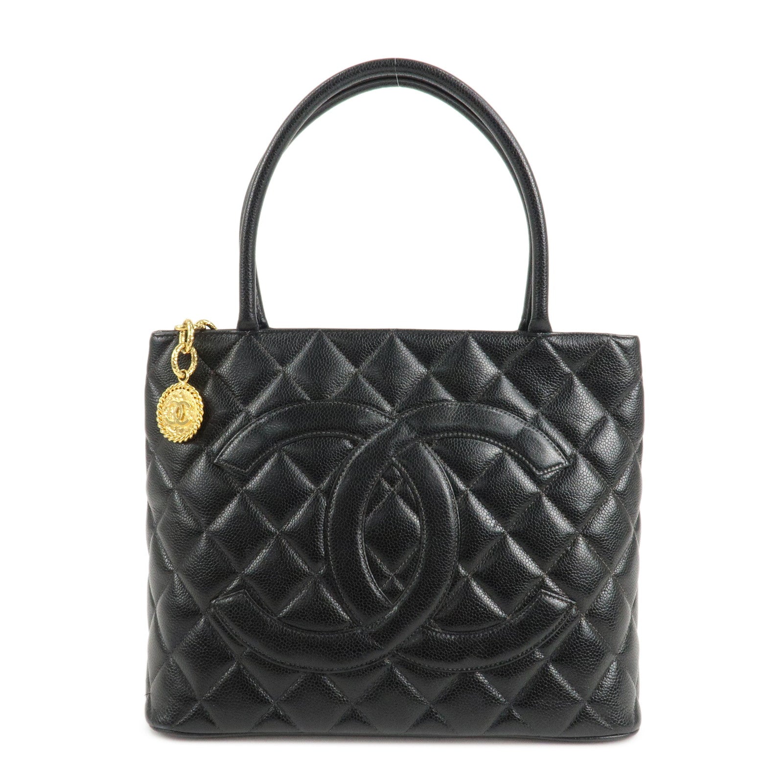 CHANEL Caviar Skin Matelasse Tote Bag Hand bag Black A01804 Used
