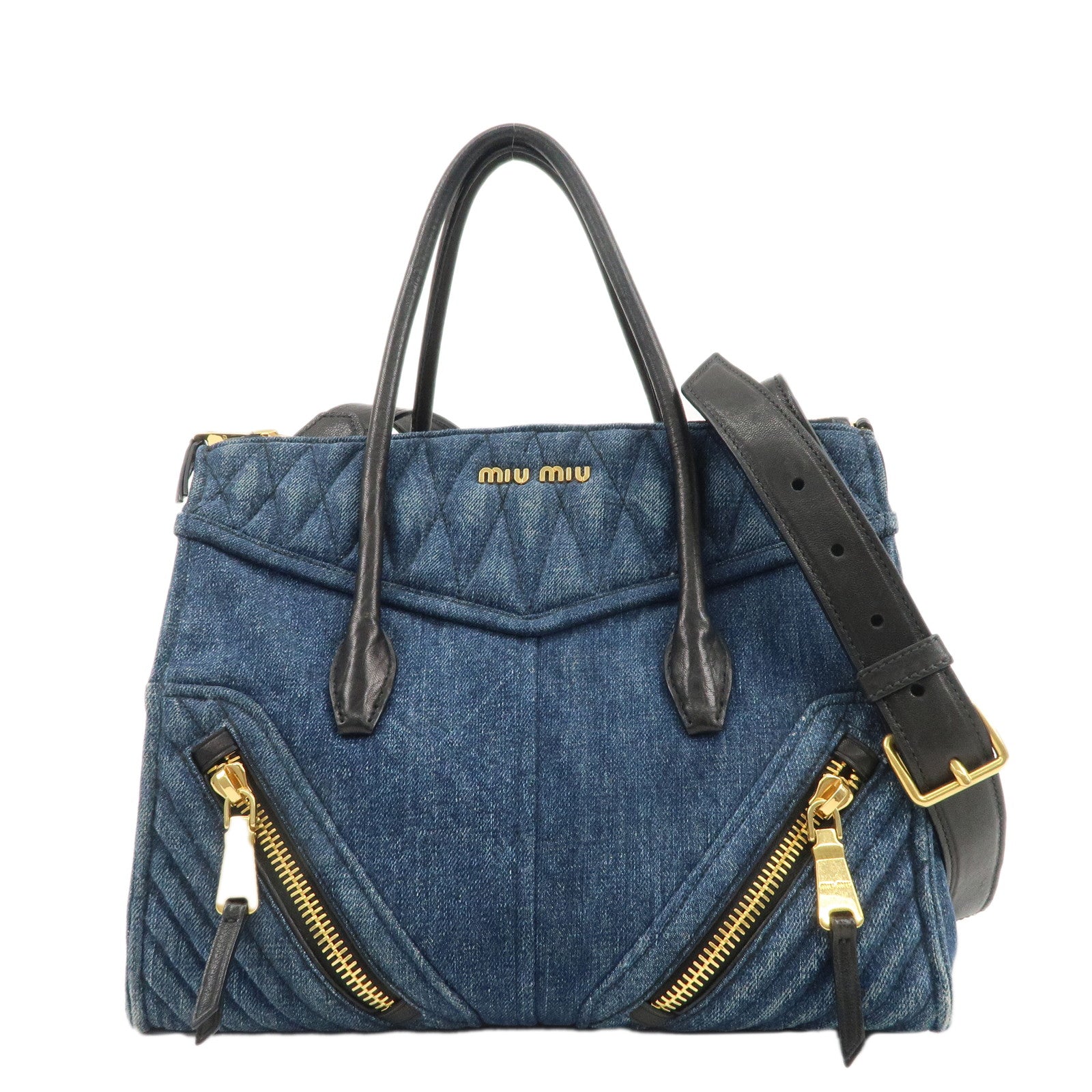 MIU MIU Denim Leather Biker 2WAY Bag Blue Black RN1031 Used