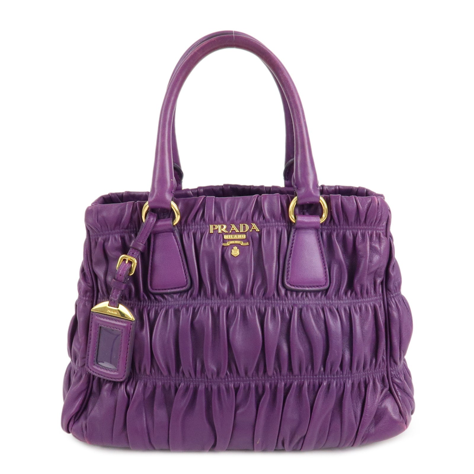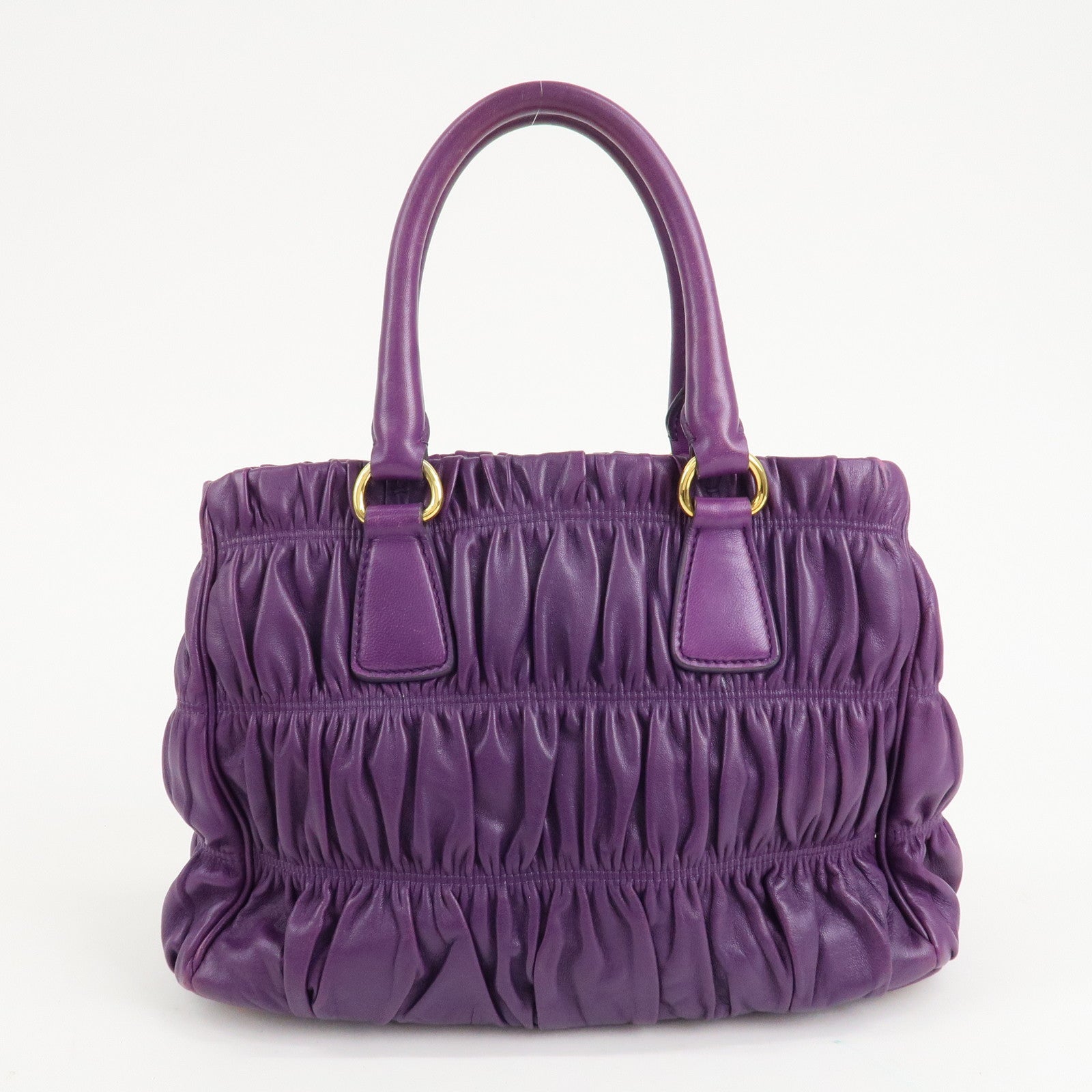 PRADA Leather Gathered Hand Bag Purple Gold Hardware BN2394 Used