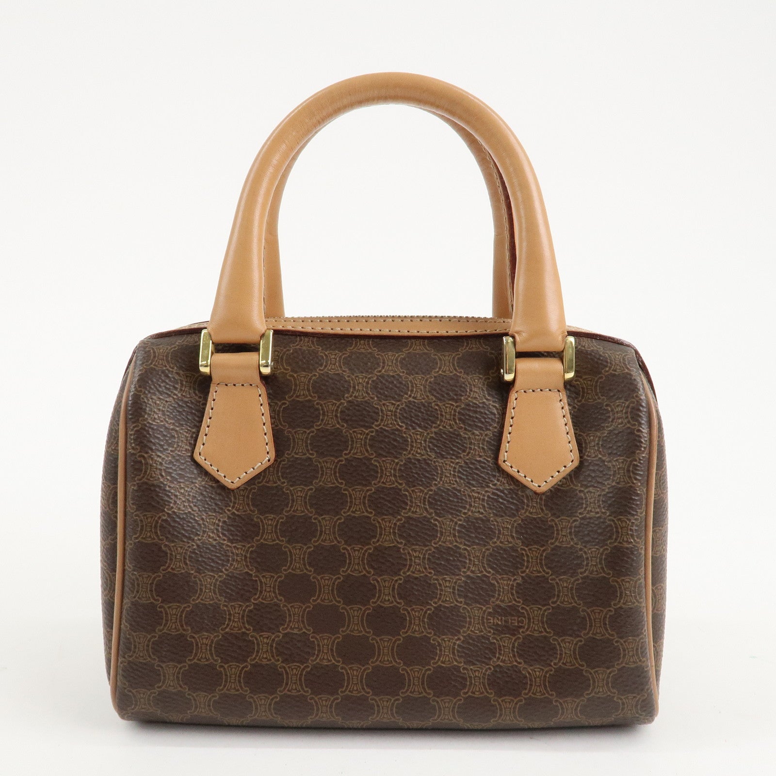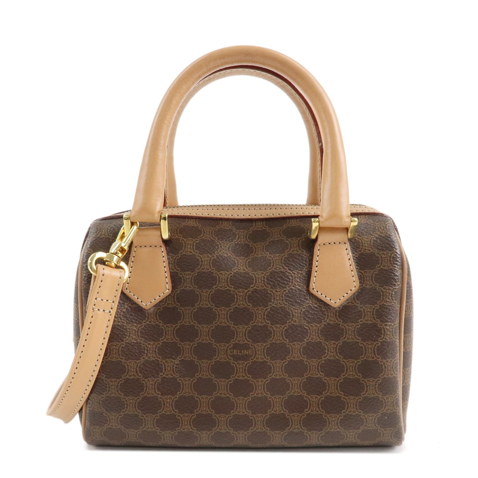 CELINE Macadam PVC Leather 2 Way Boston Bag Hand Bag Brown Used