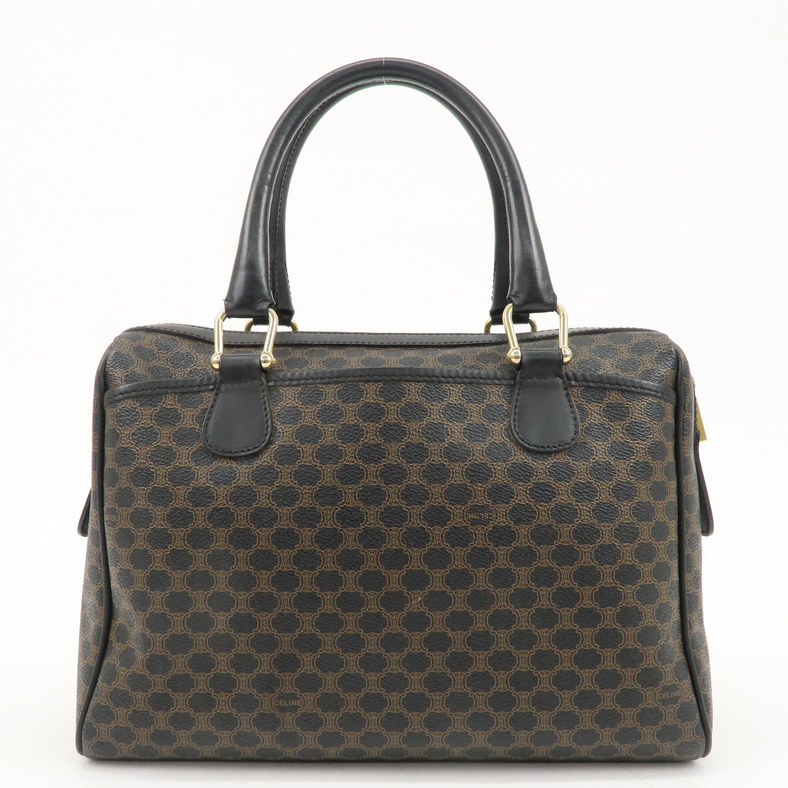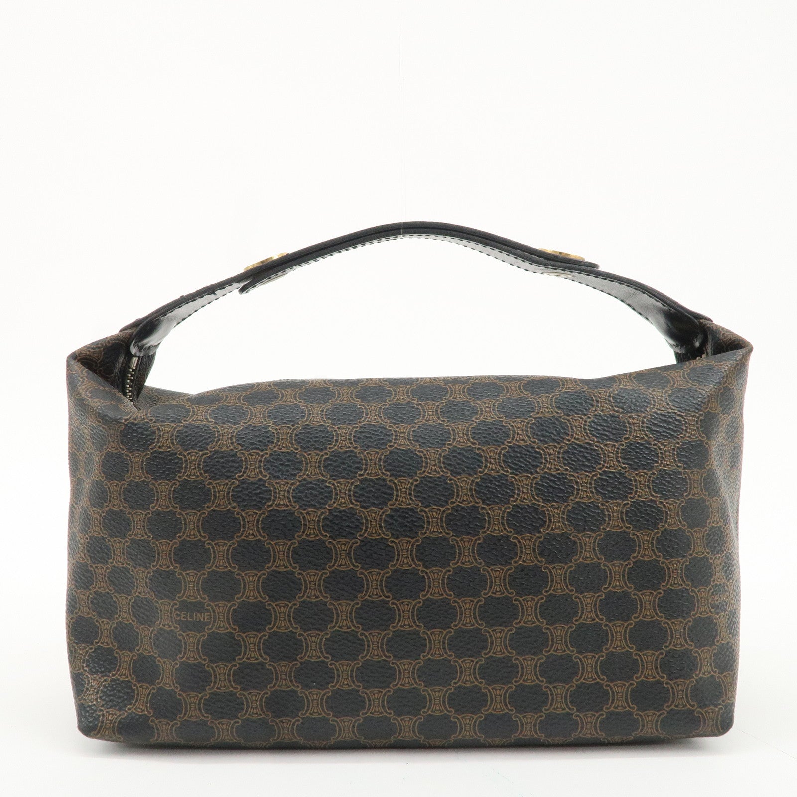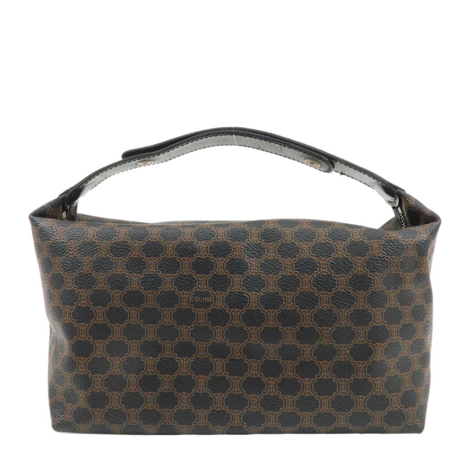 CELINE Macadam PVC Leather Hand Bag Black Brown Used