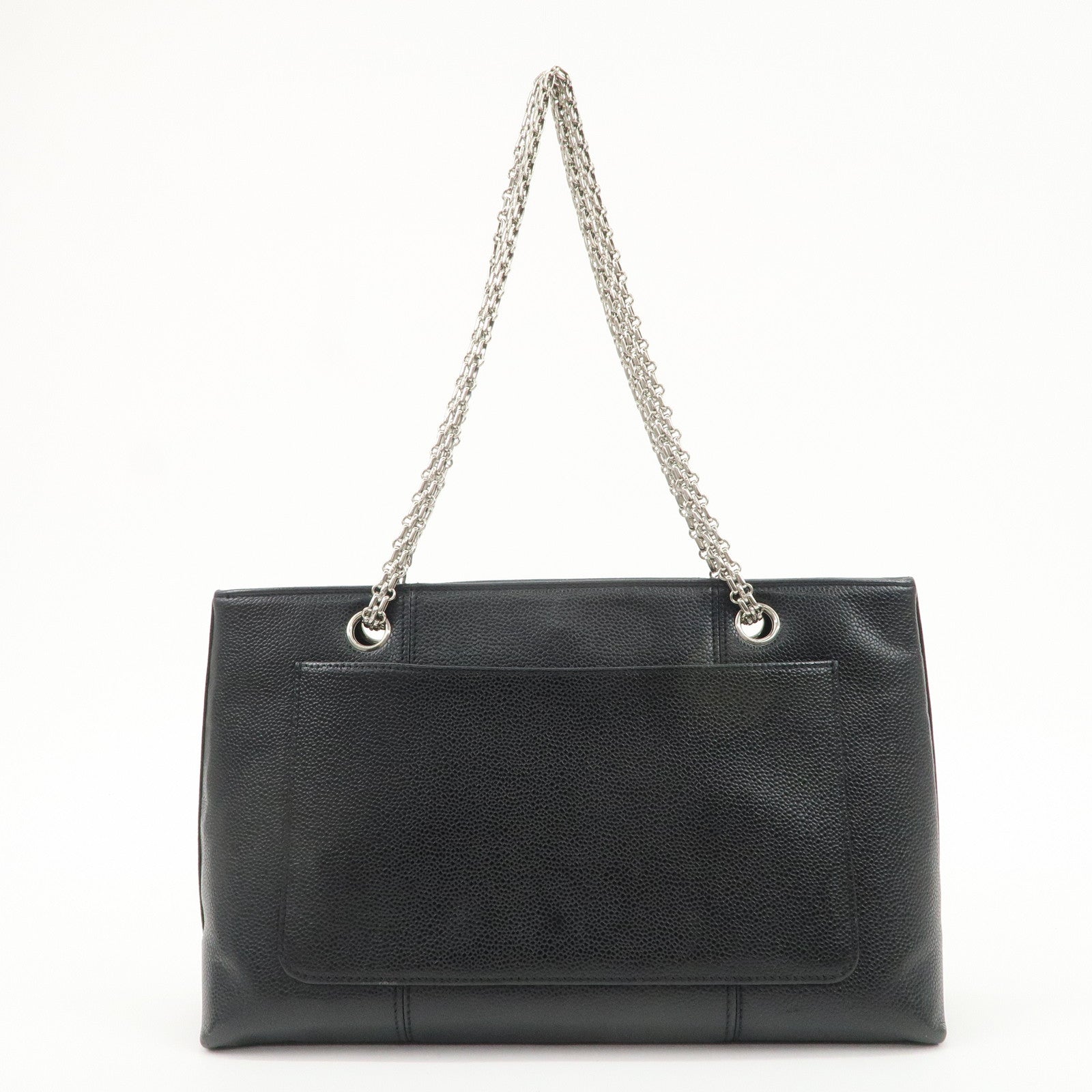 CHANEL Caviar Skin Chain Tote Bag Shoulder Black Silver HDW Used