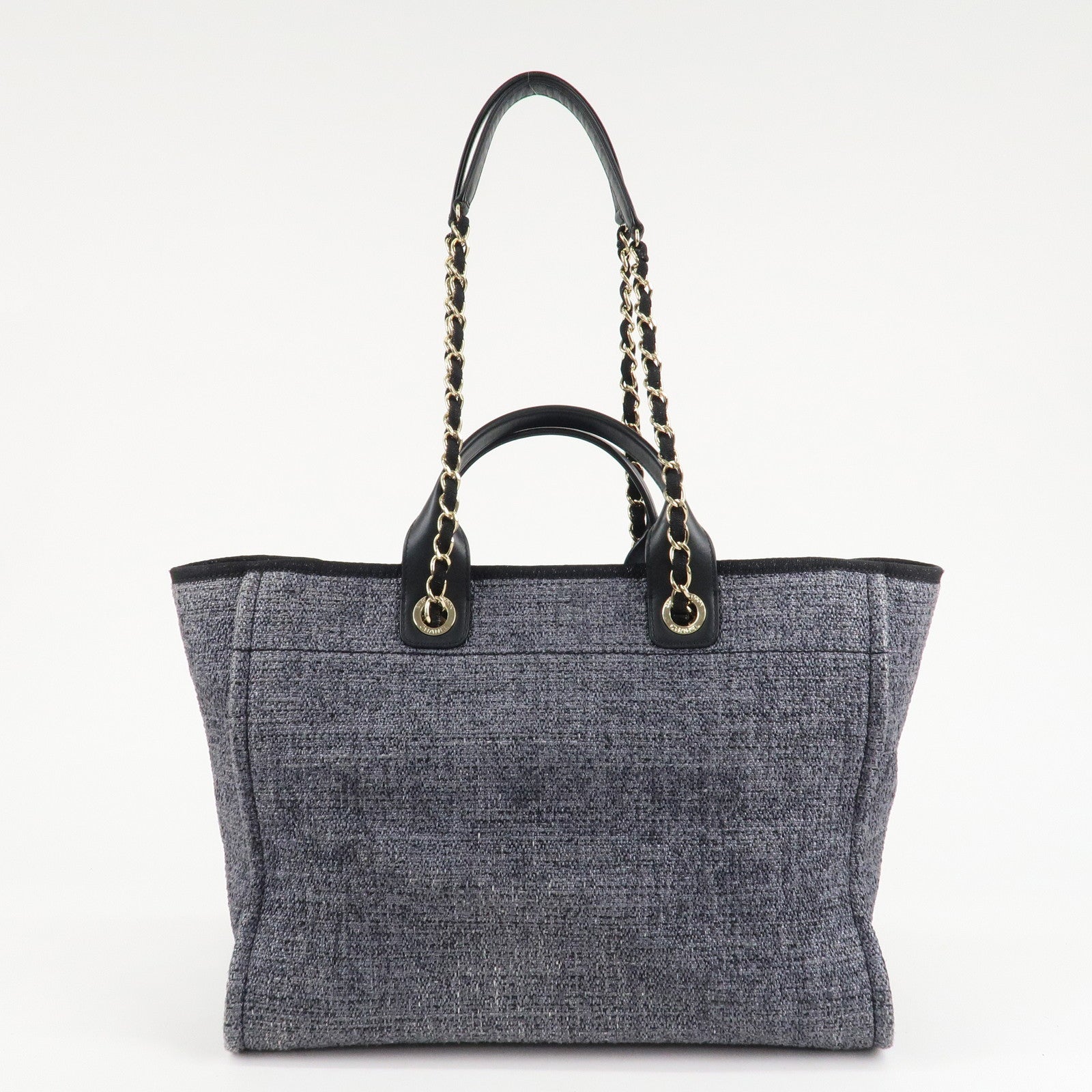CHANEL Deauville Raffia Leather Chain Tote Bag GM A66941 Navy Used