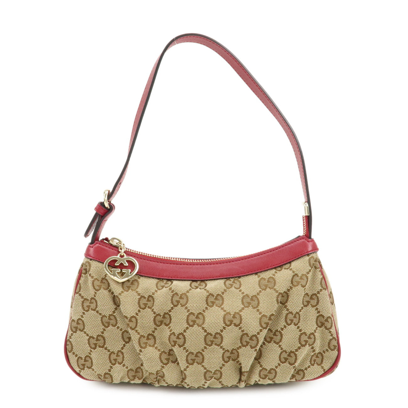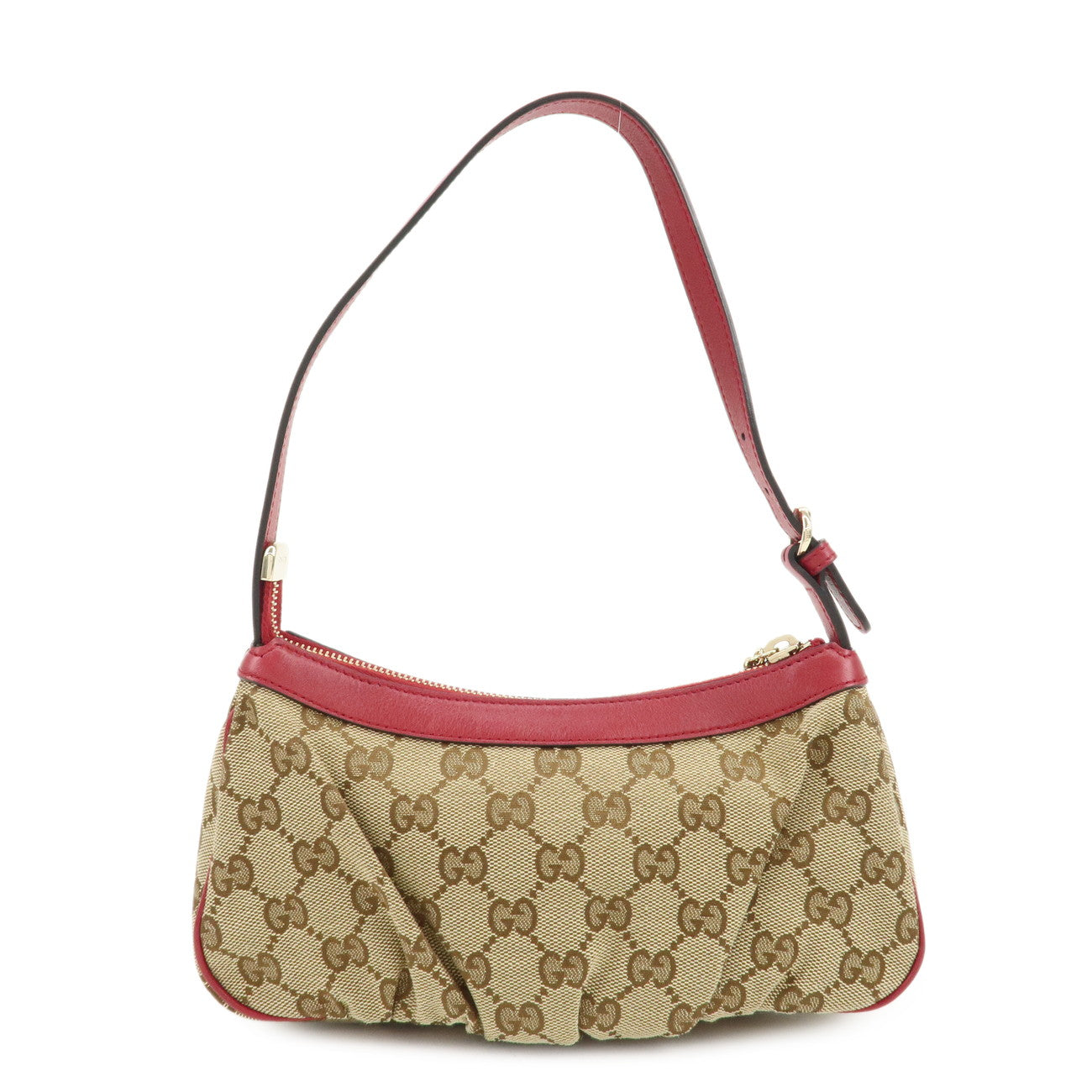 GUCCI GG Canvas Leather Hand Bag Pouch Beige Red 245938 Used