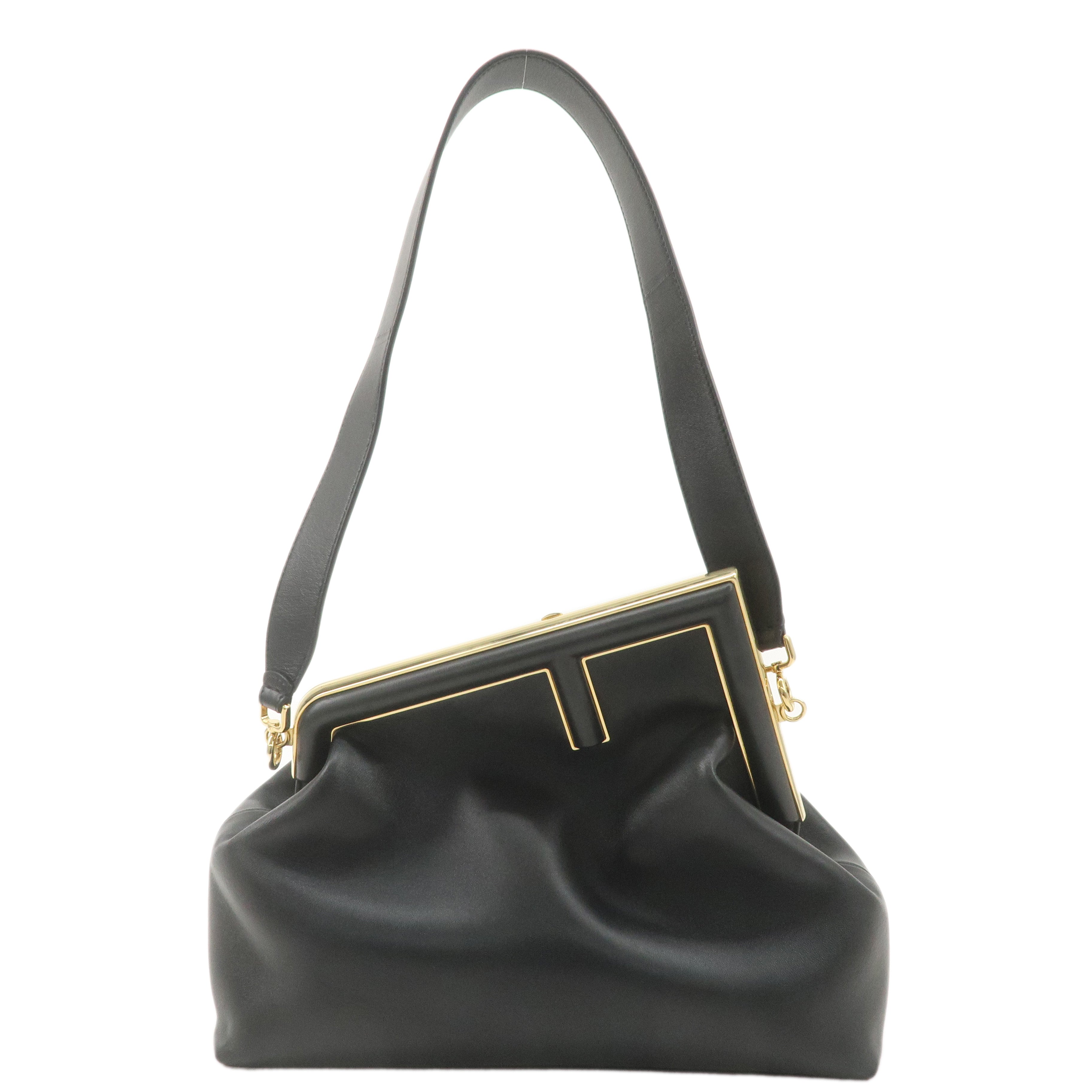 FENDI Leather First Medium 2Way Clutch Shoulder Bag Black 8BL127
