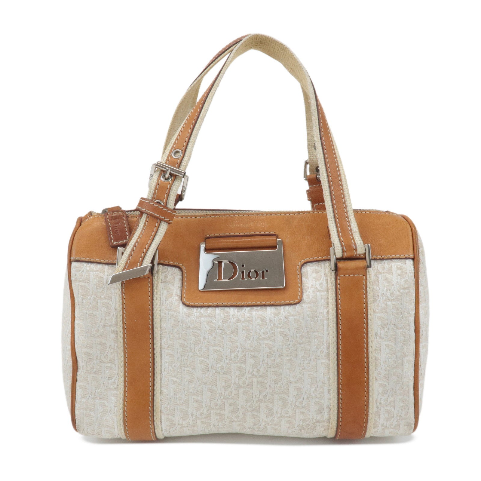 Christian Dior Trotter Canvas Leather Mini Boston Bag White Brown