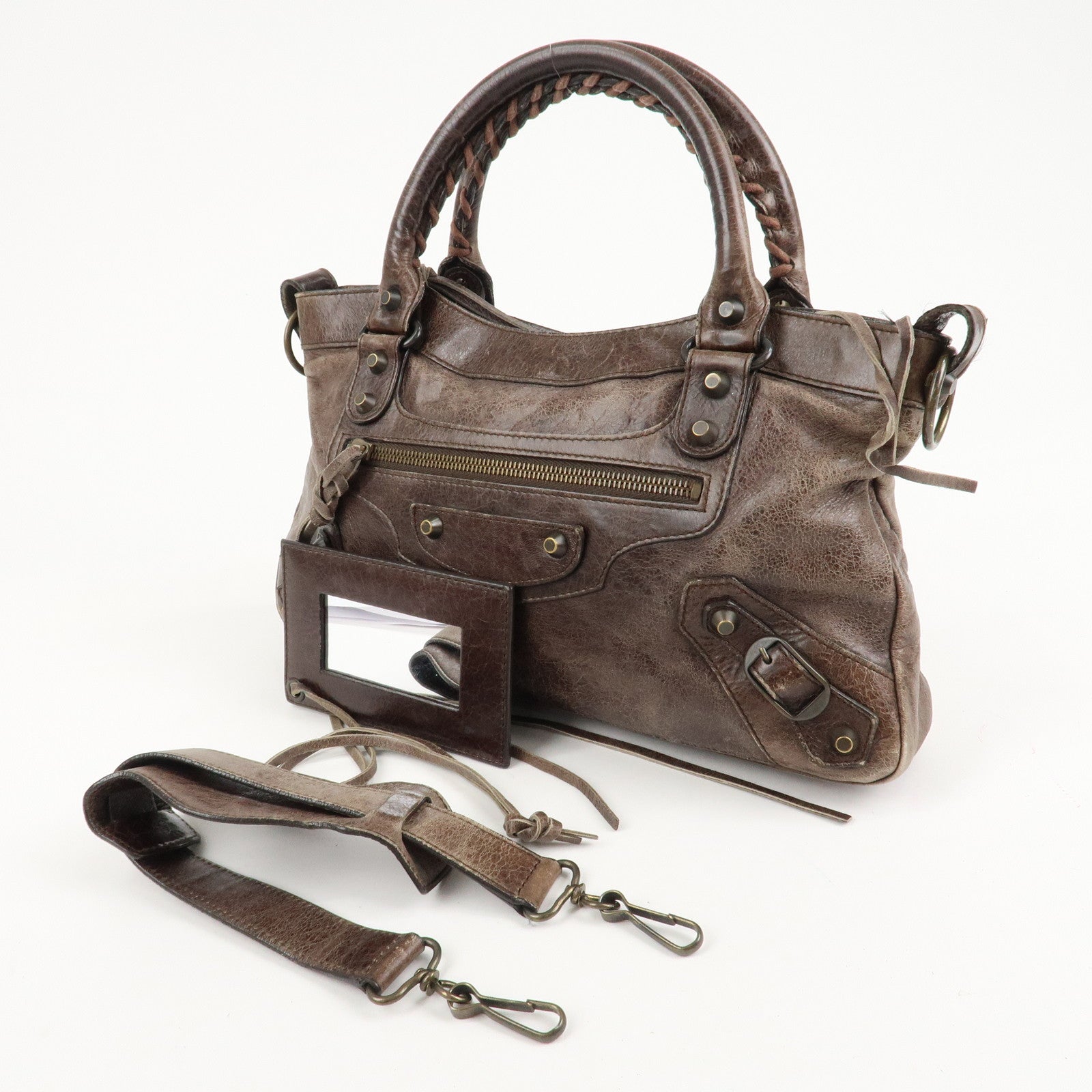 BALENCIAGA The First Leather 2Way Bag Hand Bag Brown 103208 Used