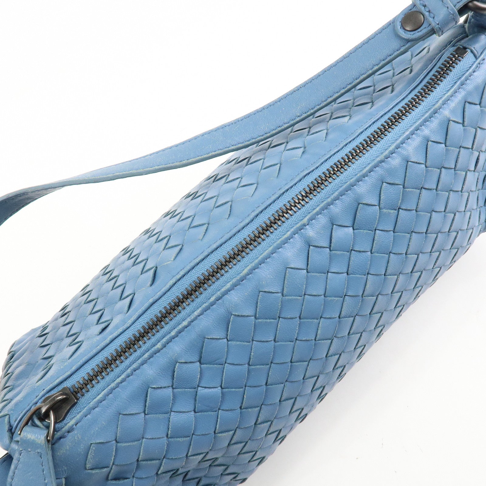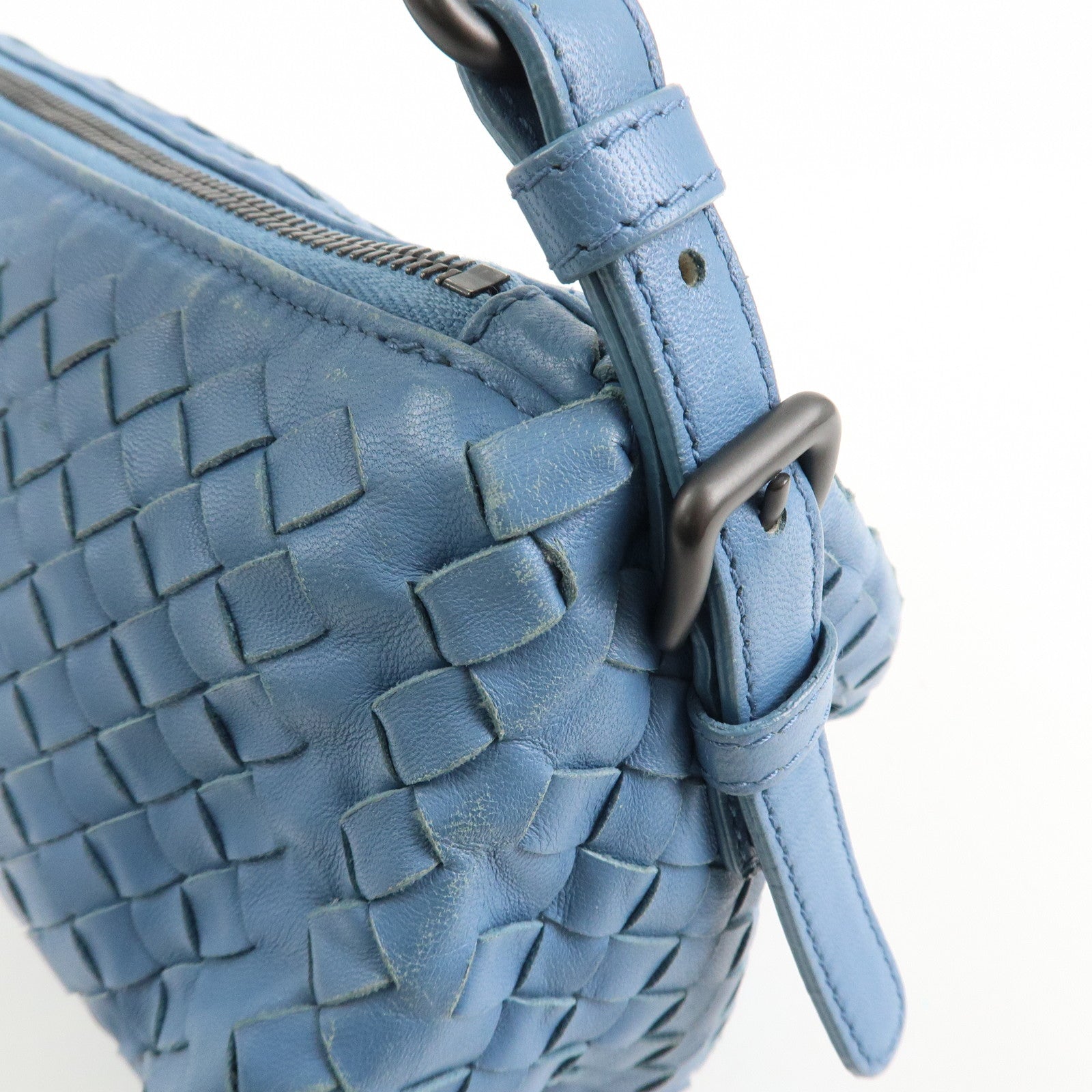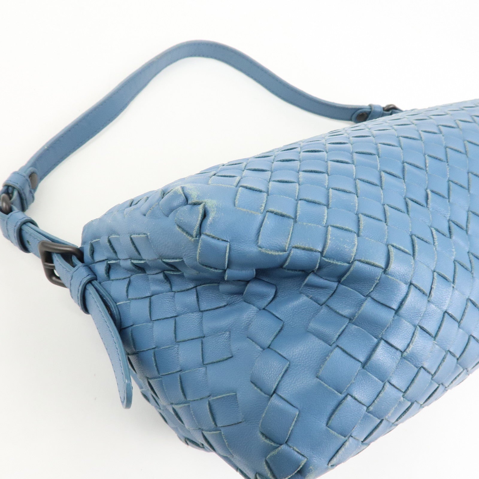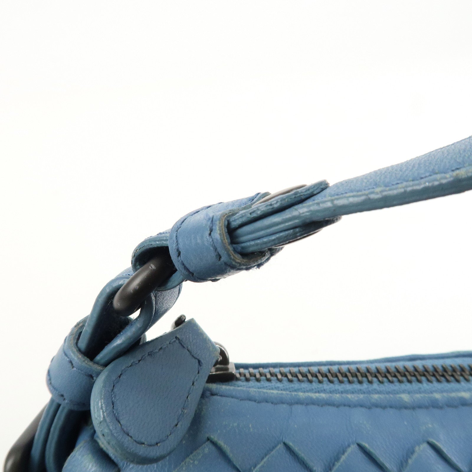 BOTTEGA VENETA Intrecciato Leather Shoulder Bag Light Blue Used