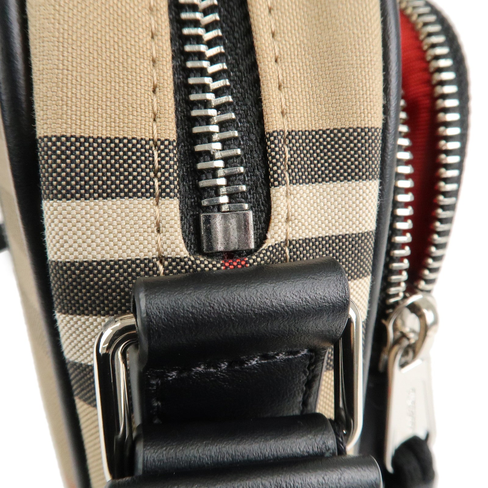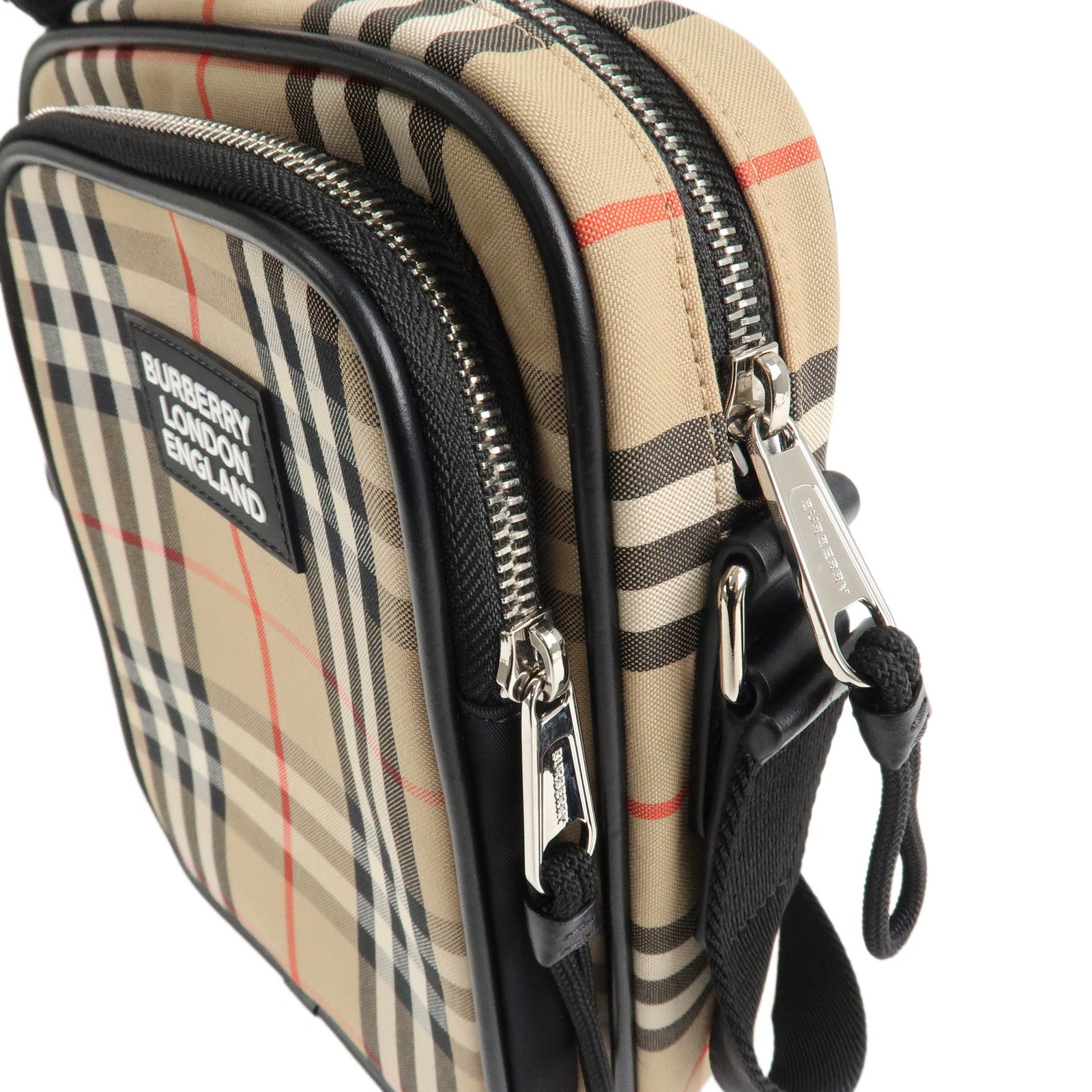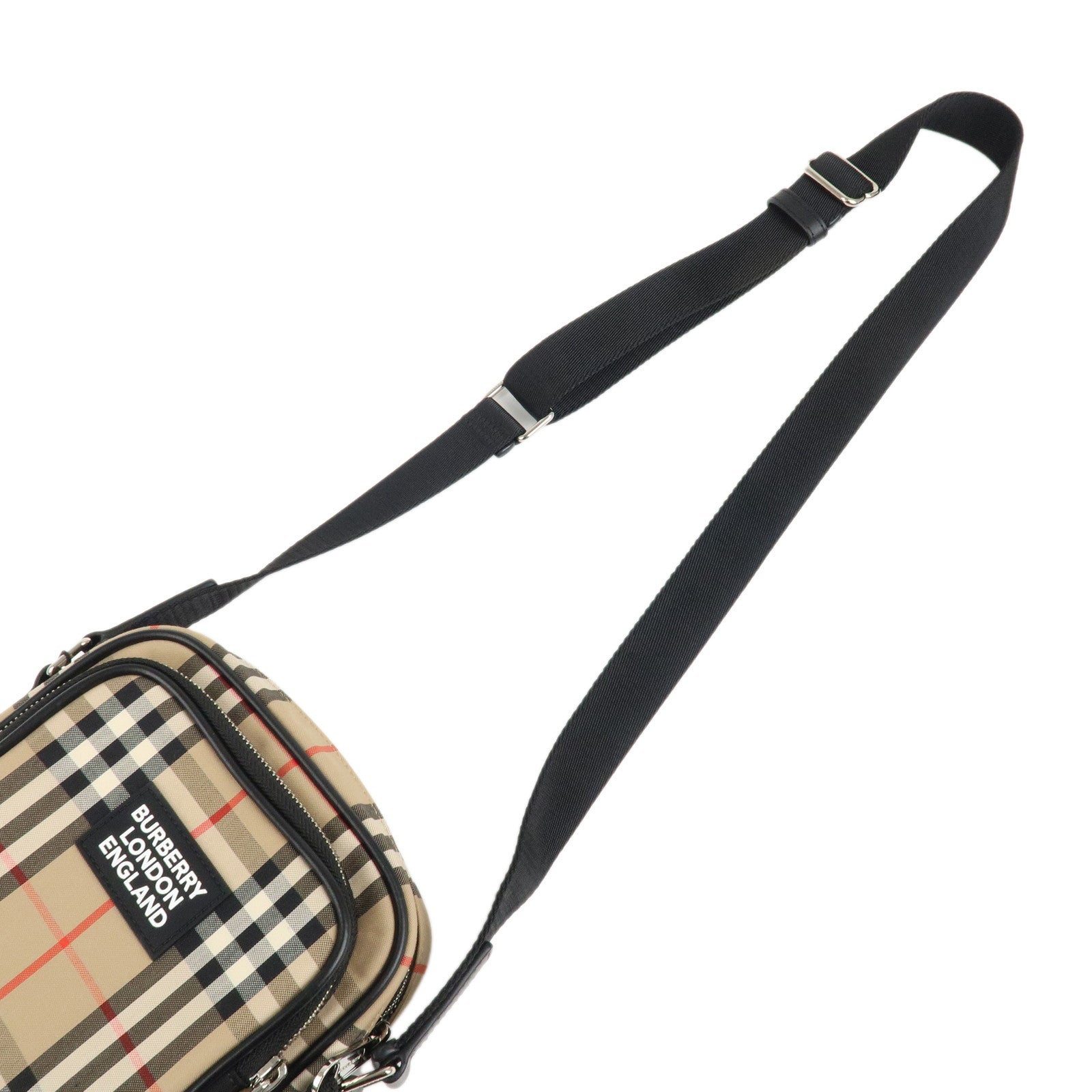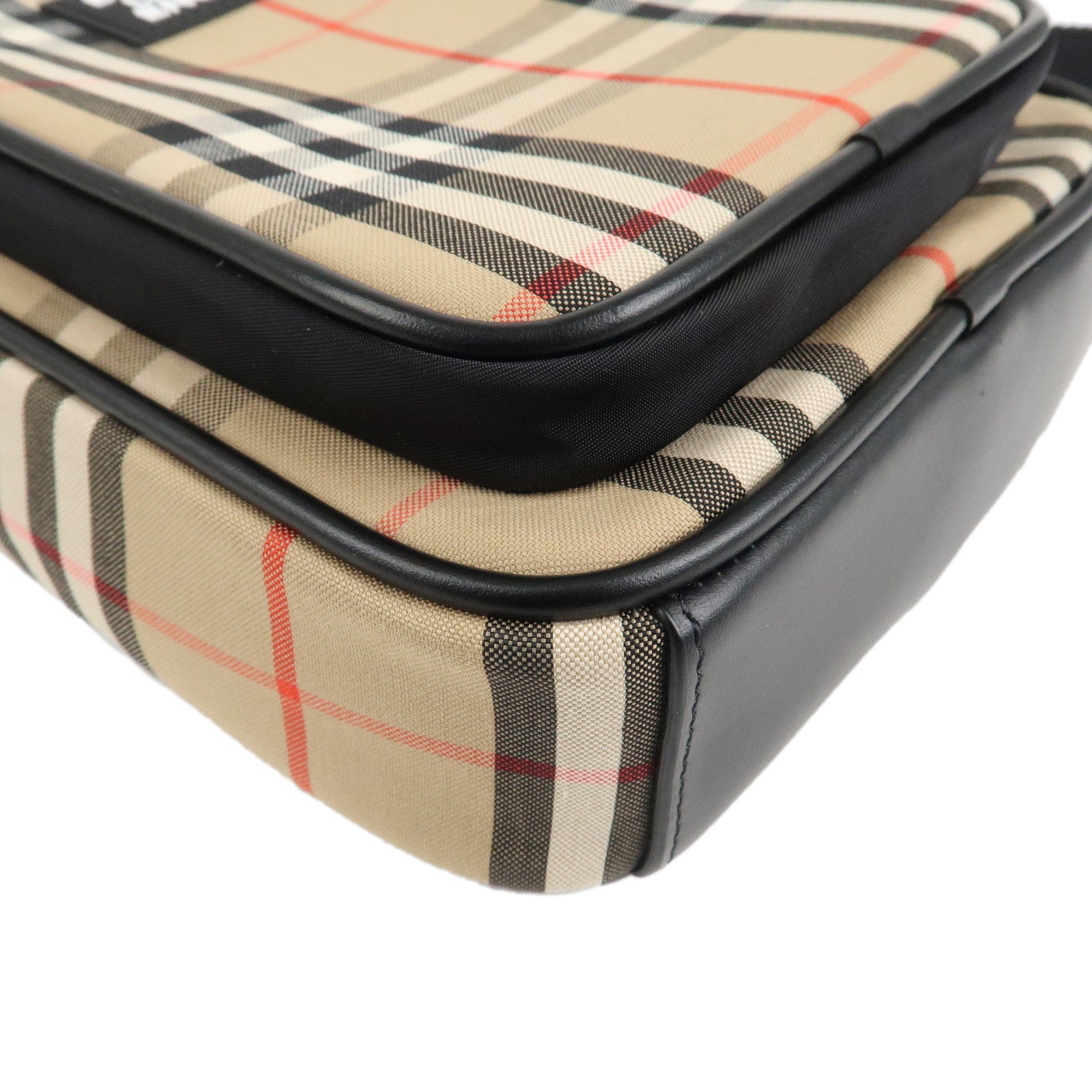 BURBERRY London Canvas Leather Shoudler Bag Nova Plaid Black Used