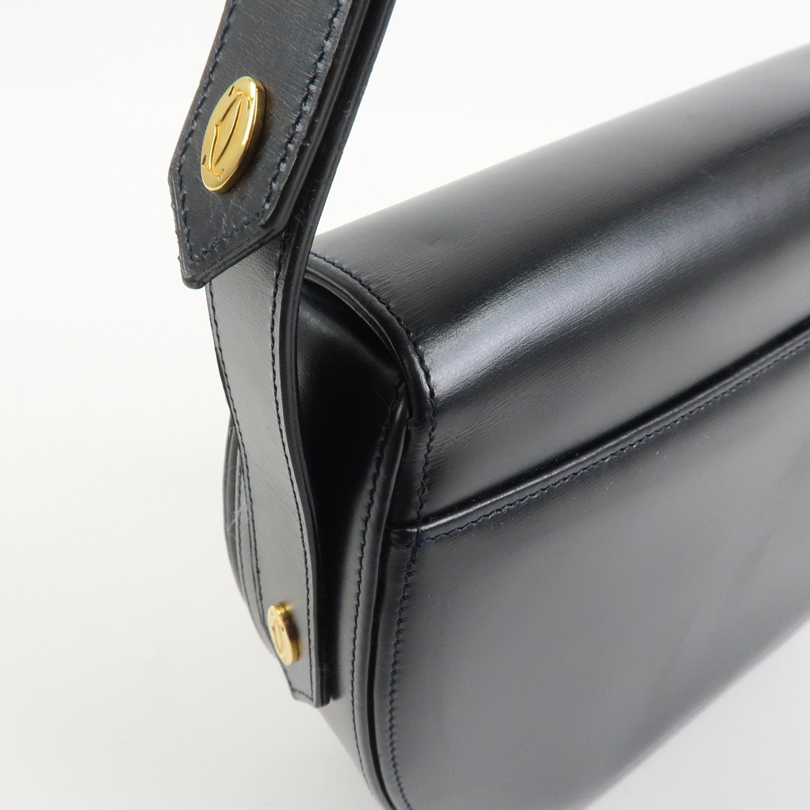 Cartier Sapphire Line Leather Sapphire Shoulder Bag Hand Bag Black