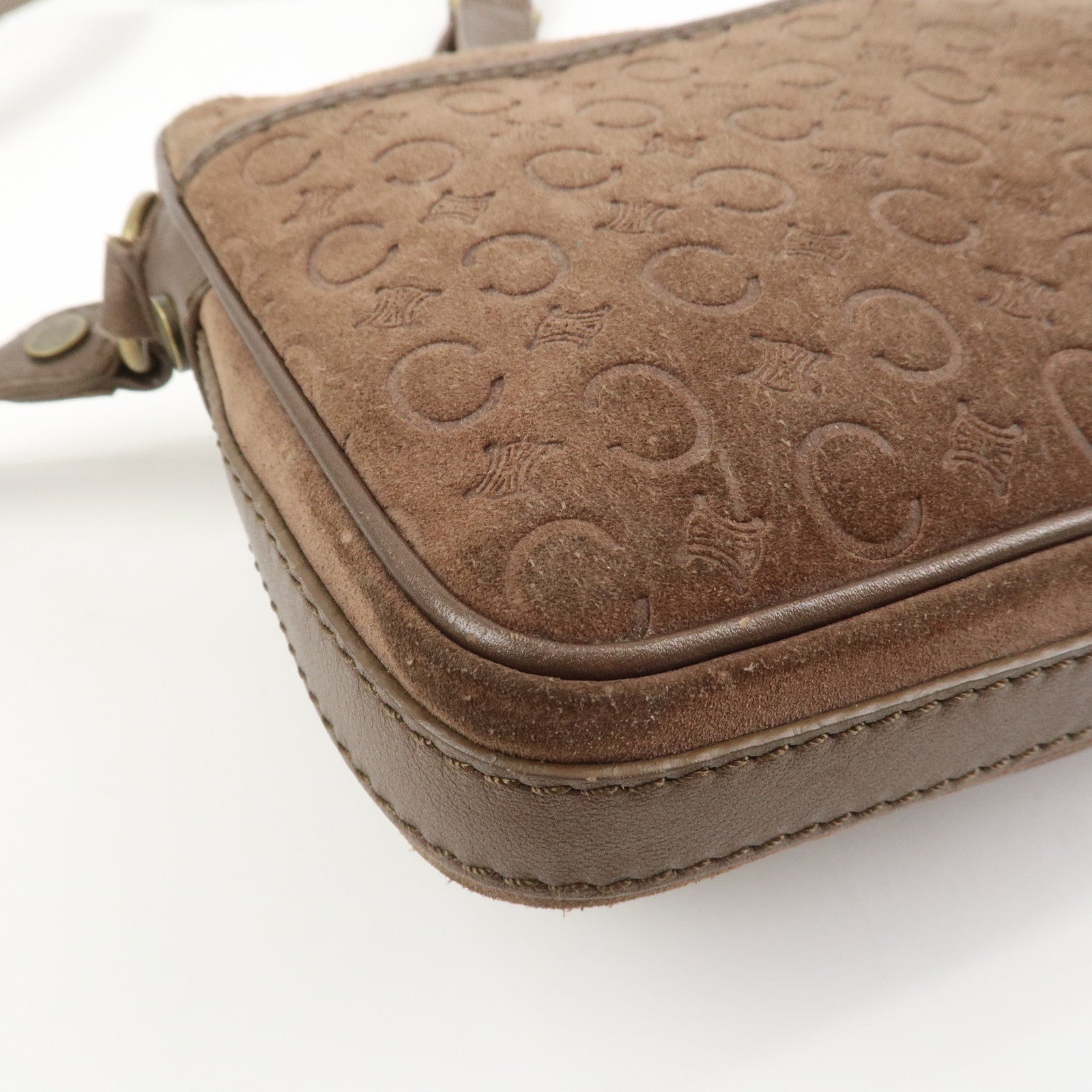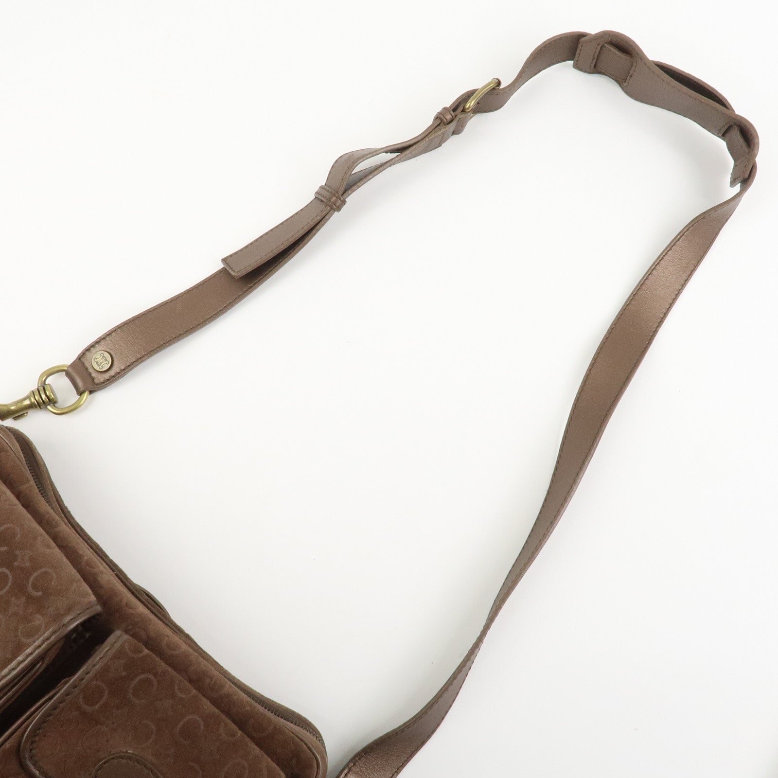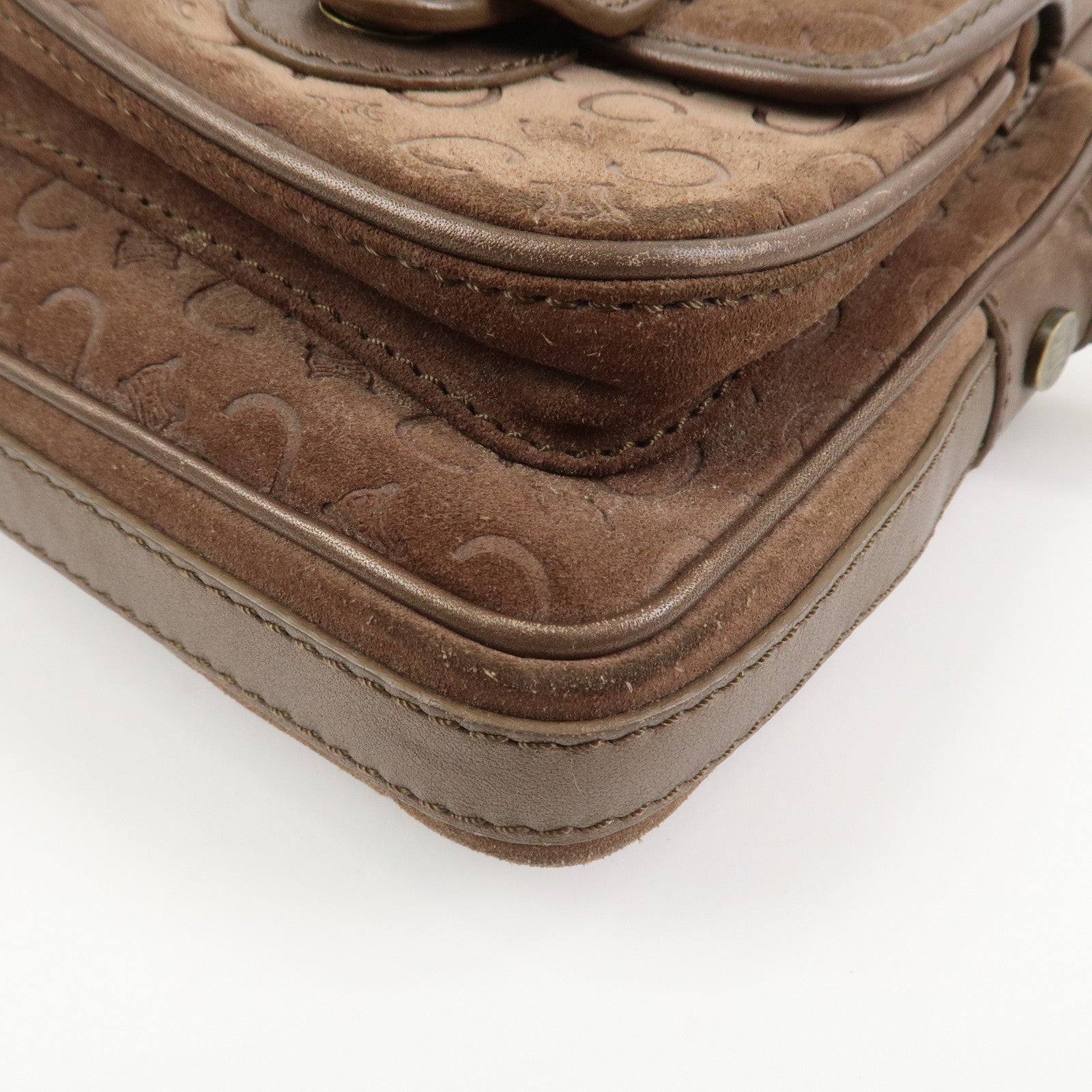 CELINE C Macadam Suede Leather Shoulder Bag Crossbody Bag Brown