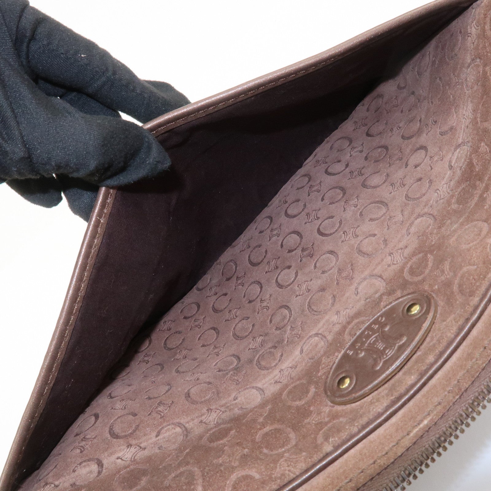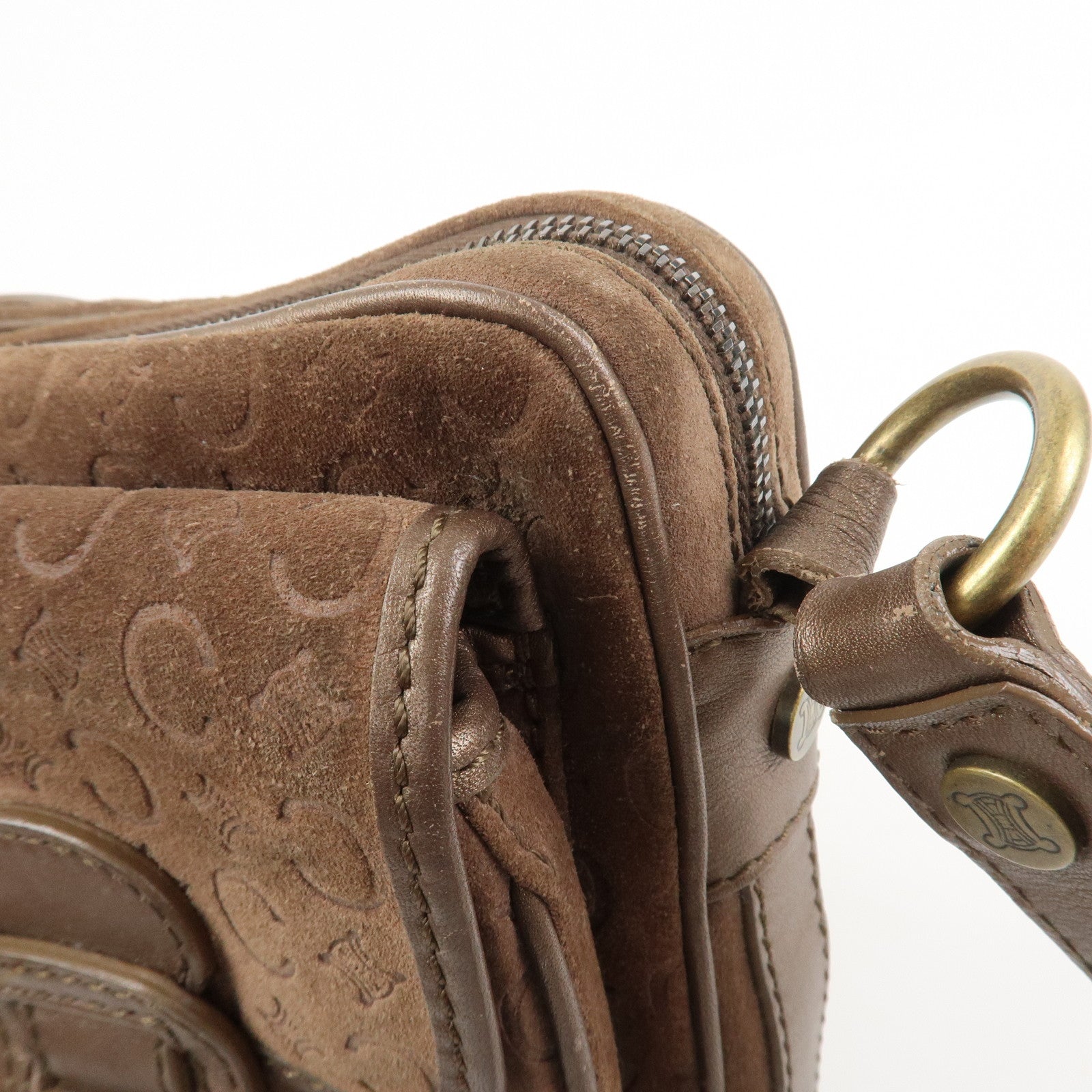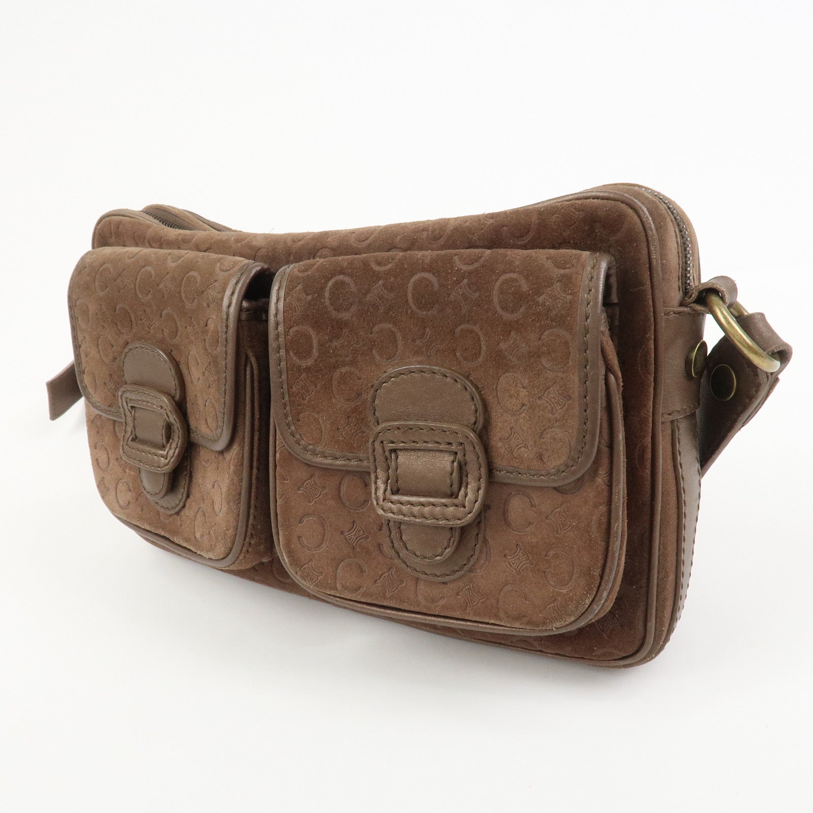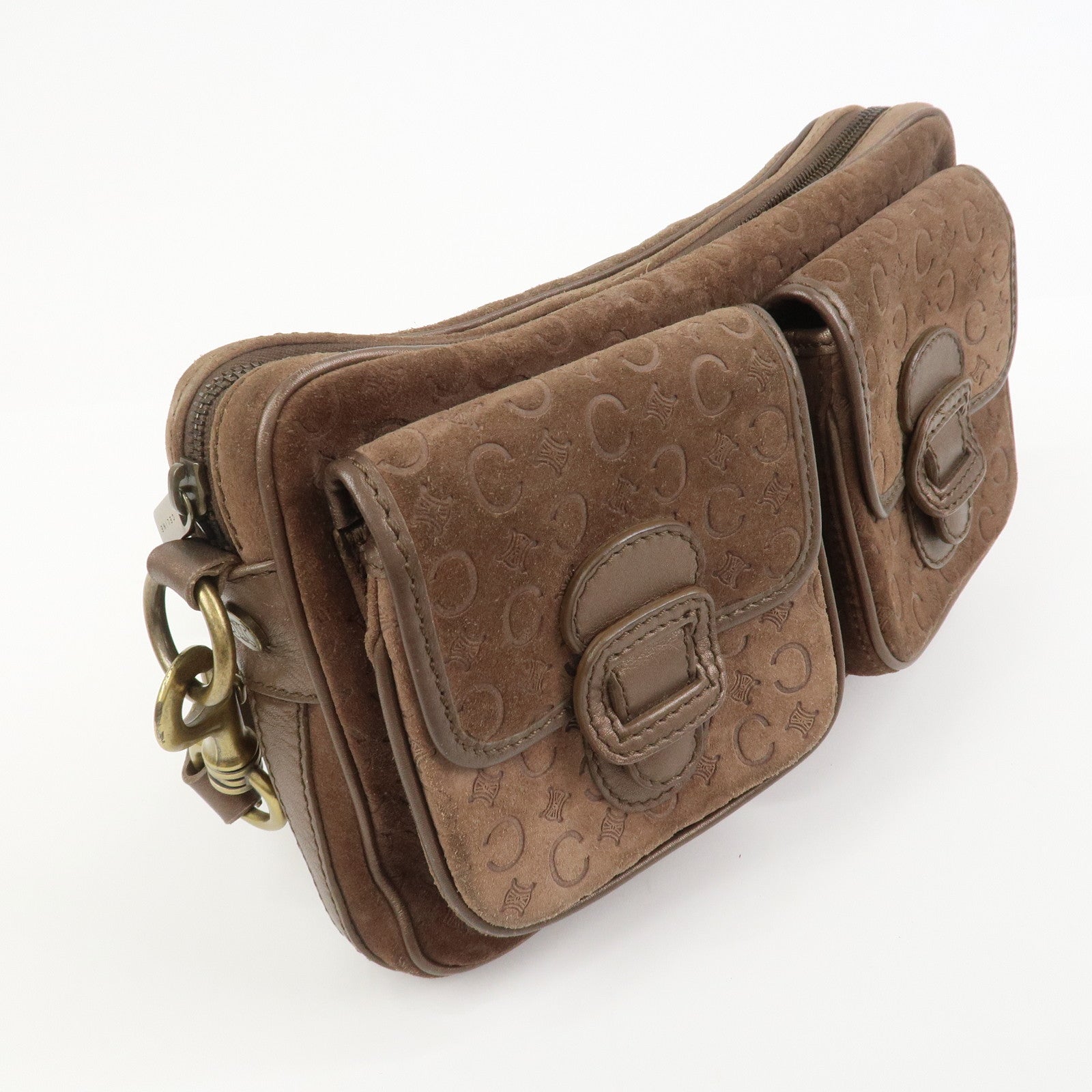 CELINE C Macadam Suede Leather Shoulder Bag Crossbody Bag Brown