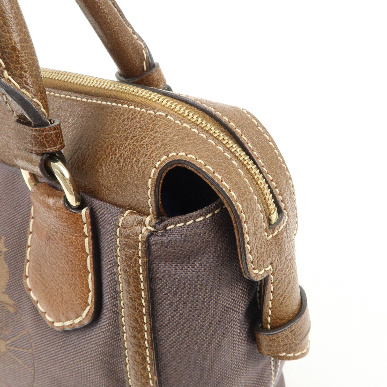 CELINE Leather Canvas Hand Bag Sulky Print Brown Used