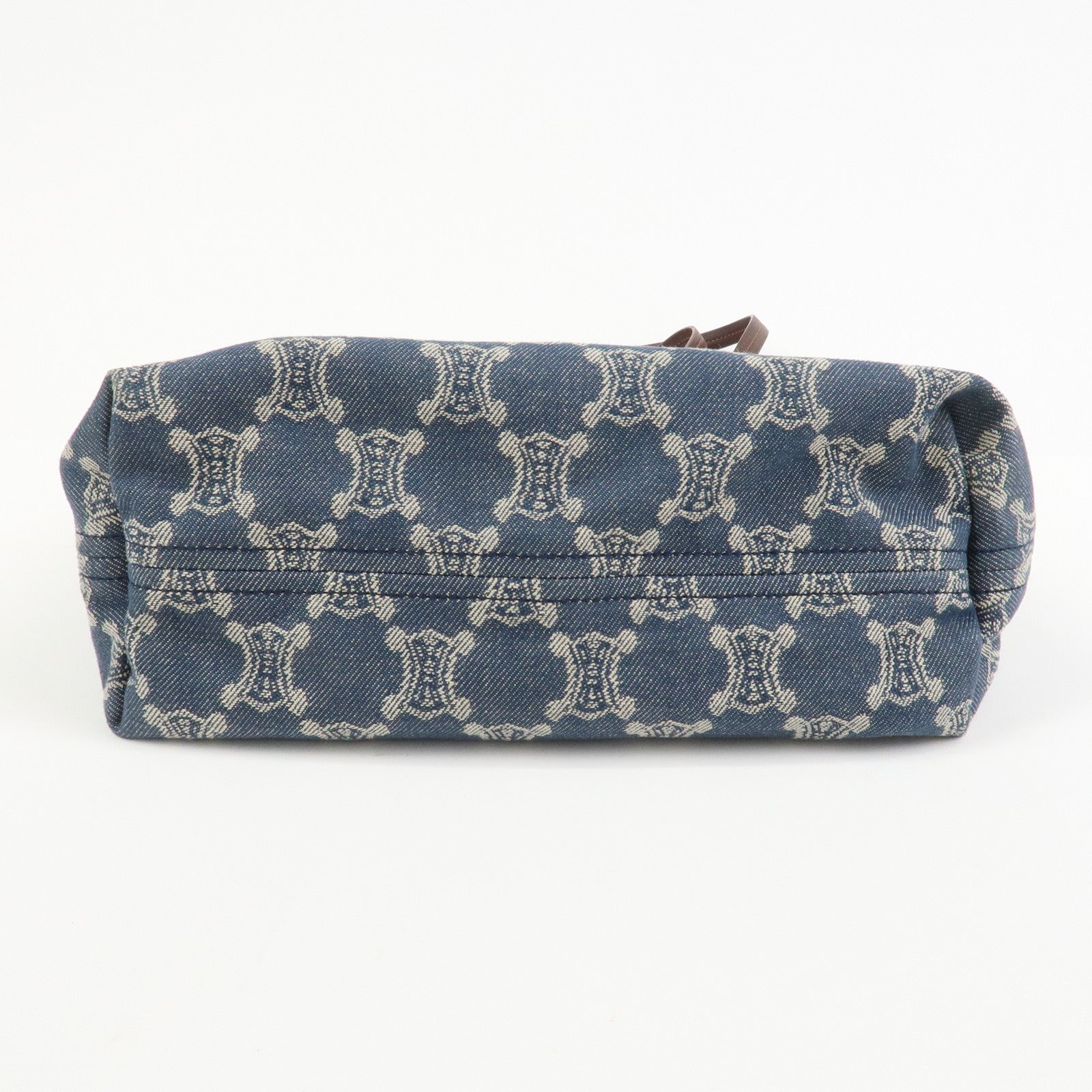 CELINE Macadam Denim Leather Tote Bag Shoulder Bag Blue Brown