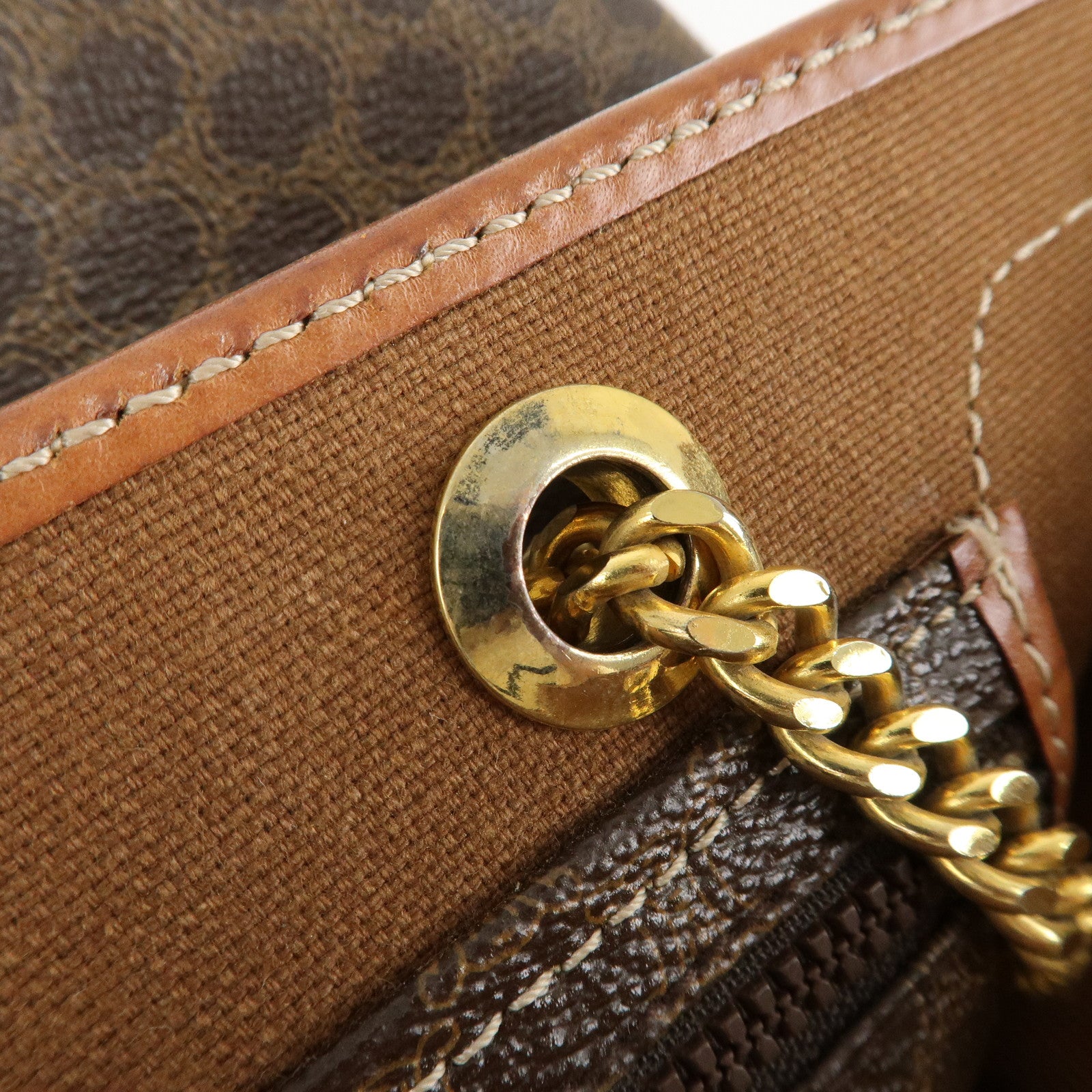 CELINE Macadam PVC Leather Chain Tote Bag Brown Used