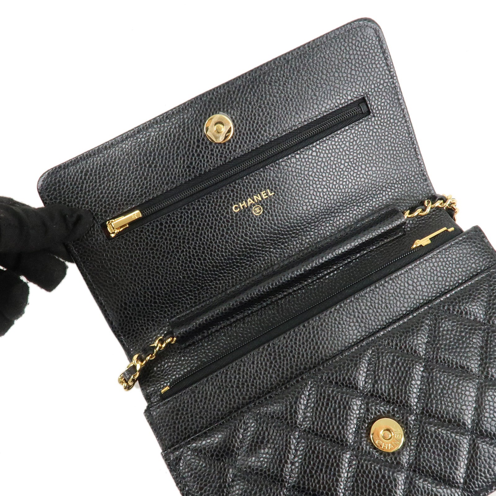 CHANEL Caviar Skin Chain Wallet Purse Black Shoulder Bag AP0250 Used