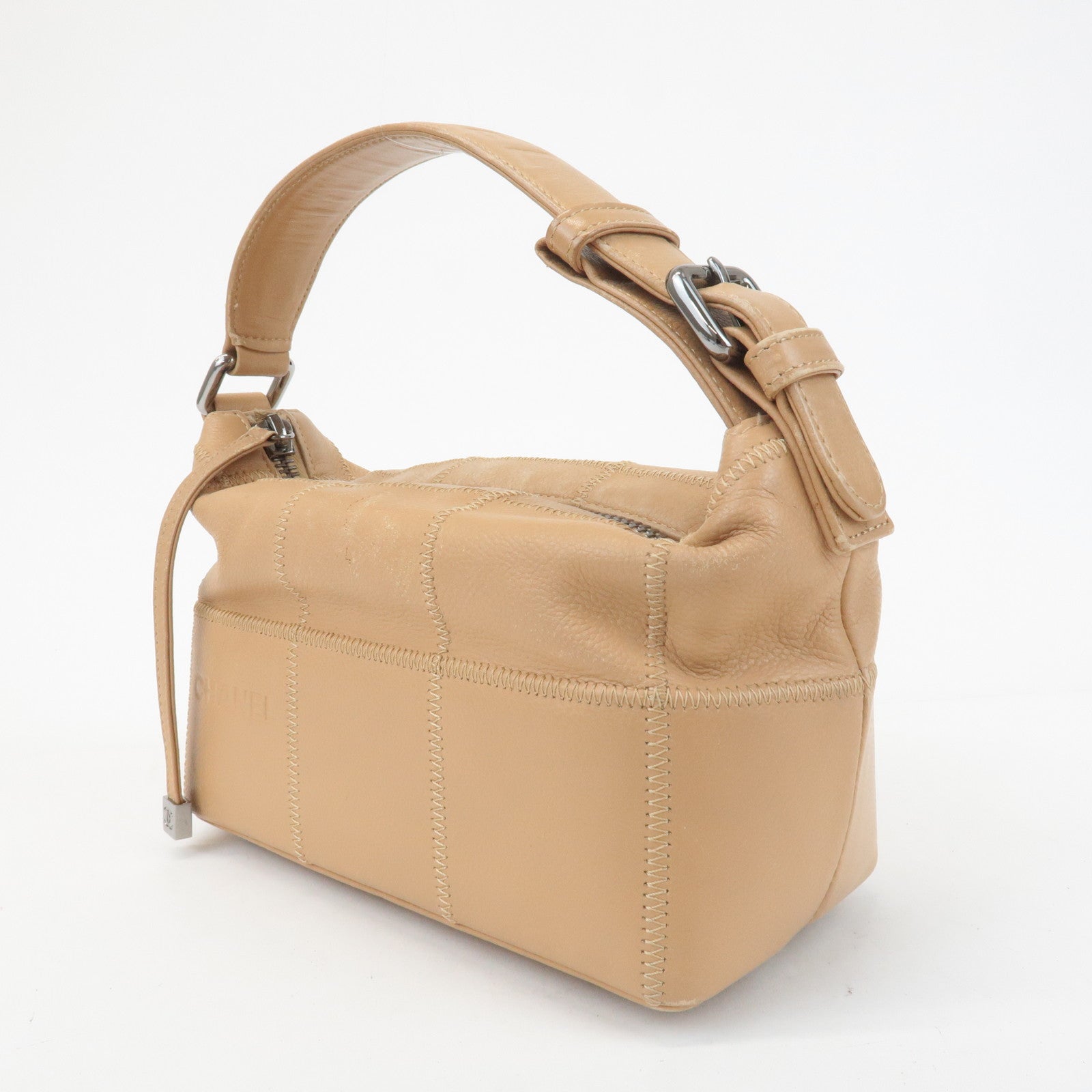 CHANEL Chocolate Bar Wild Stitch Leather Hand Bag Beige Used