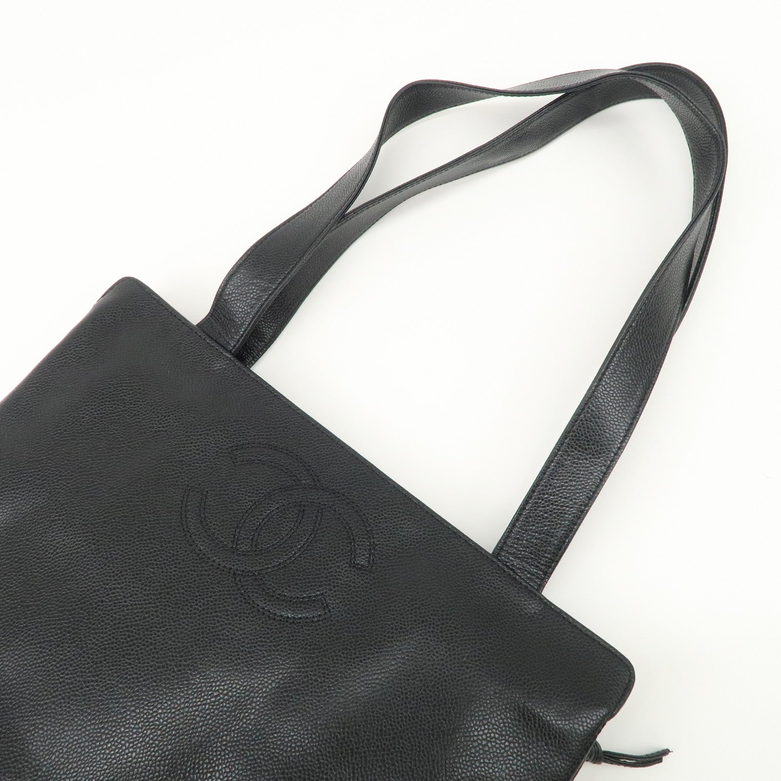 CHANEL COCO Mark Caviar Skin Tote Bag Hand Shoulder Bag Black Used