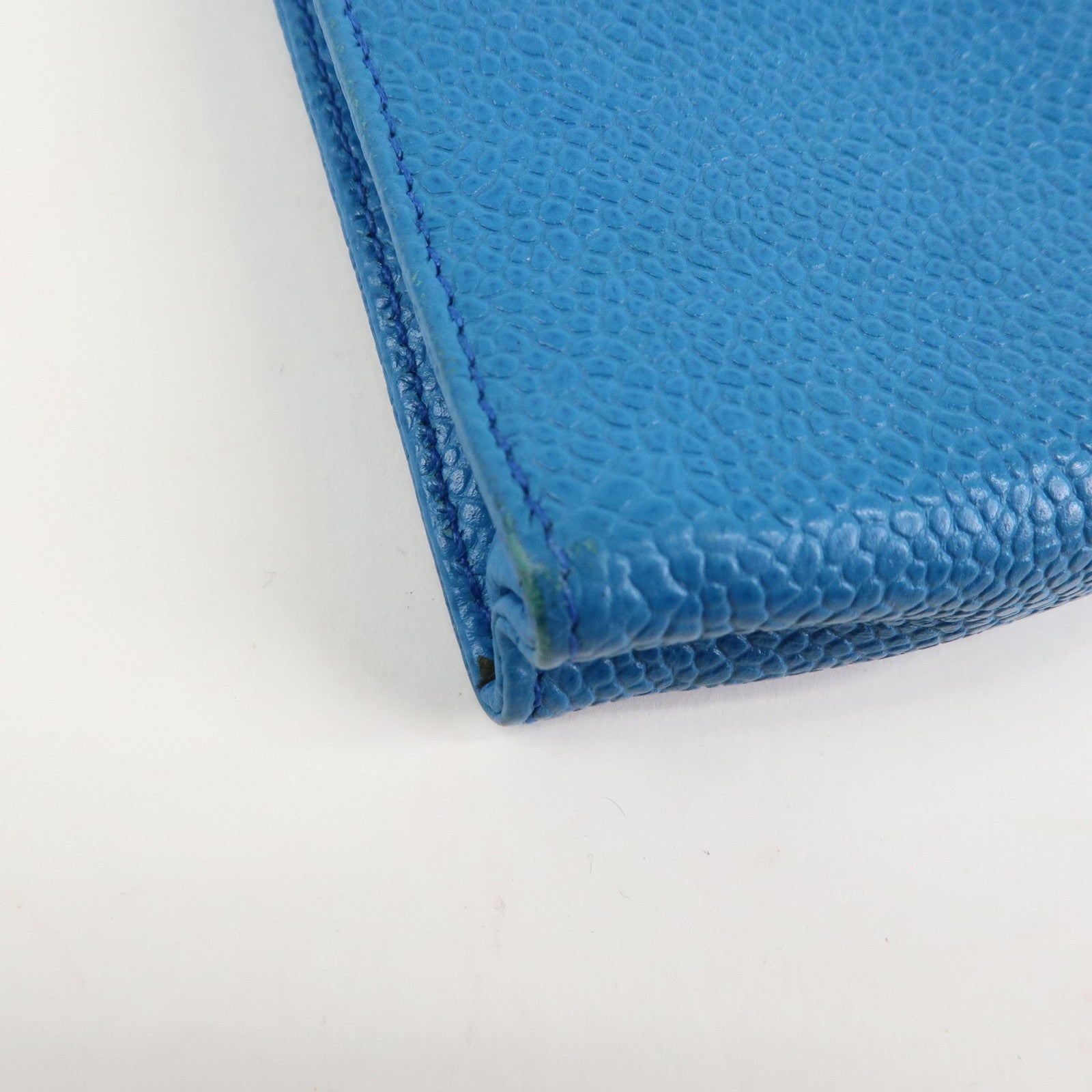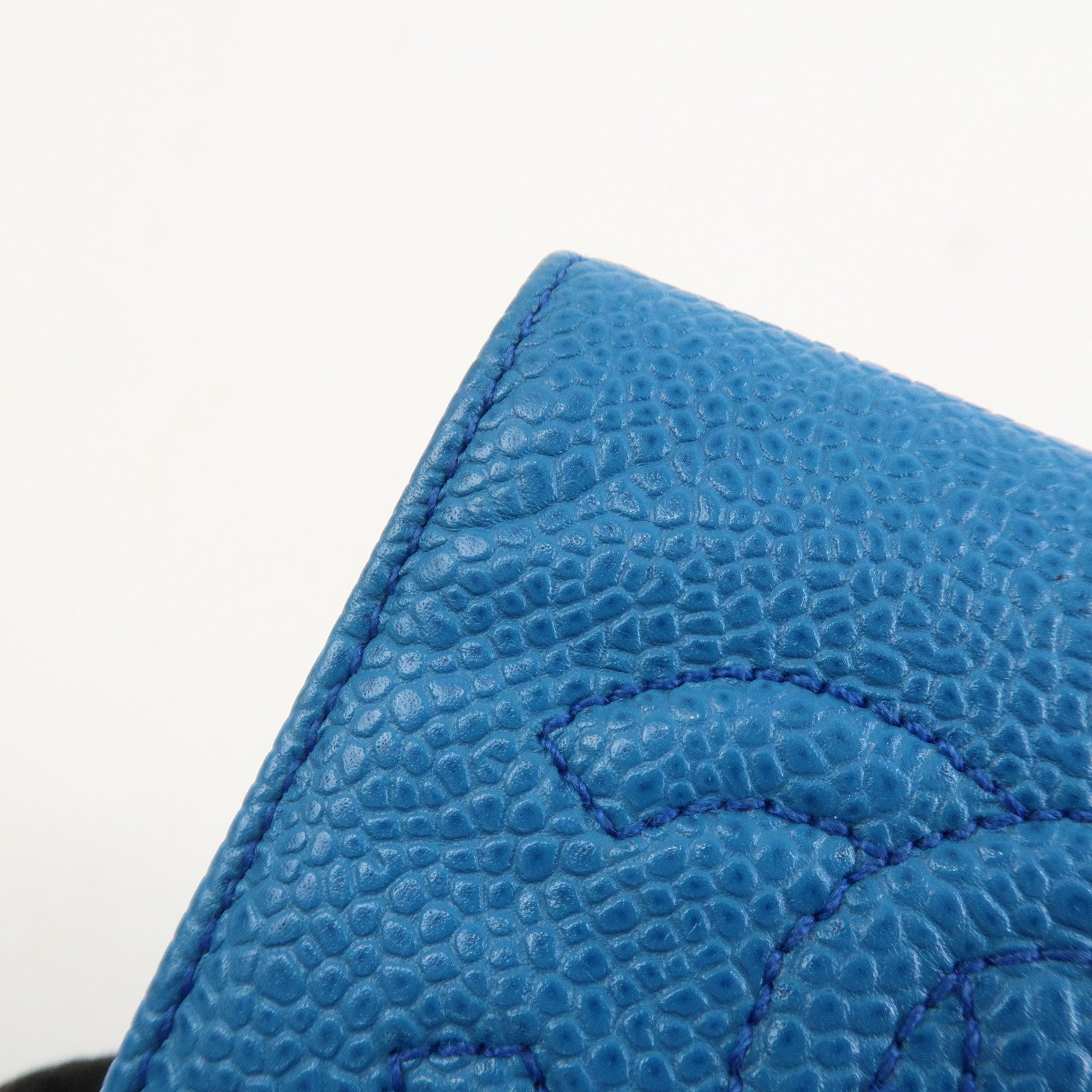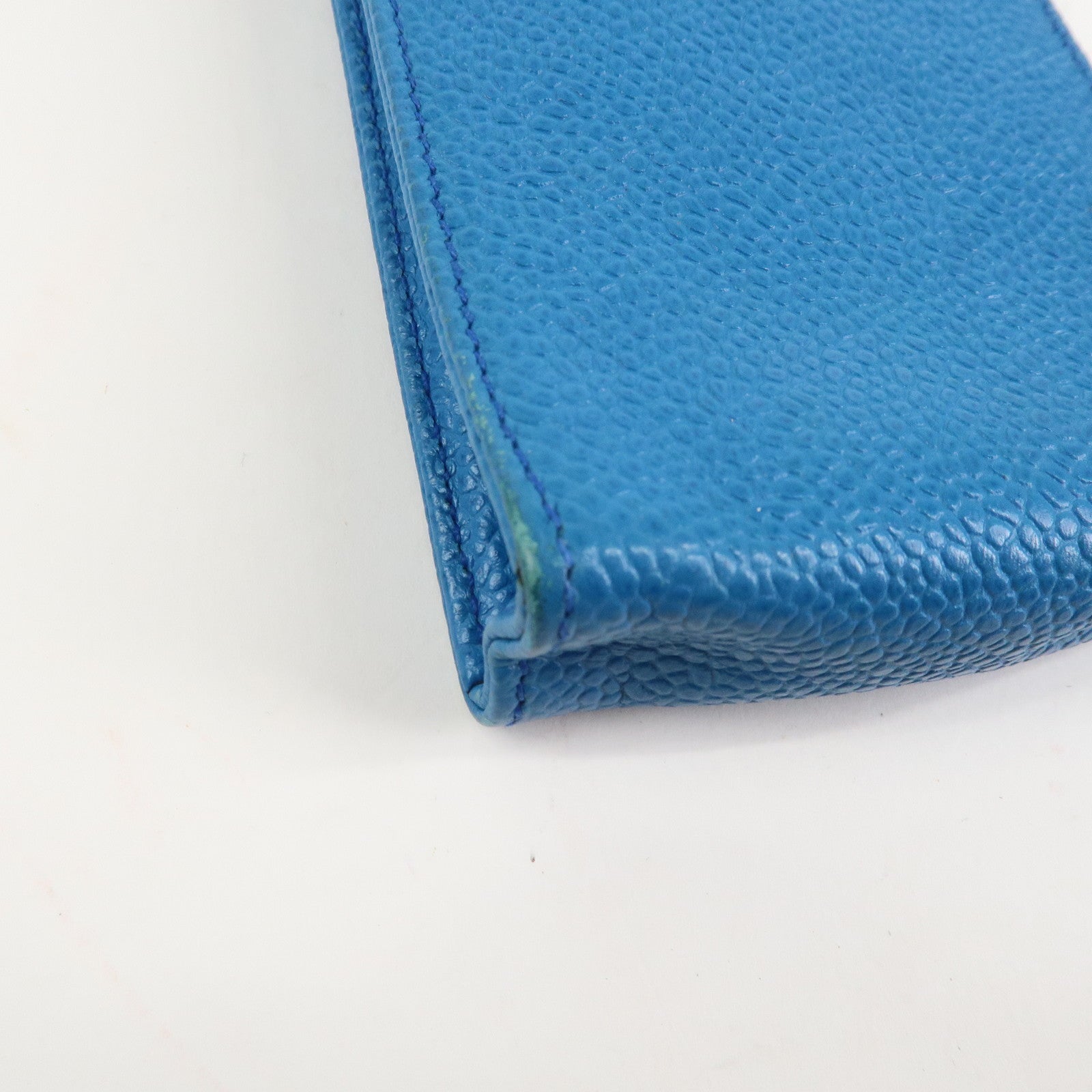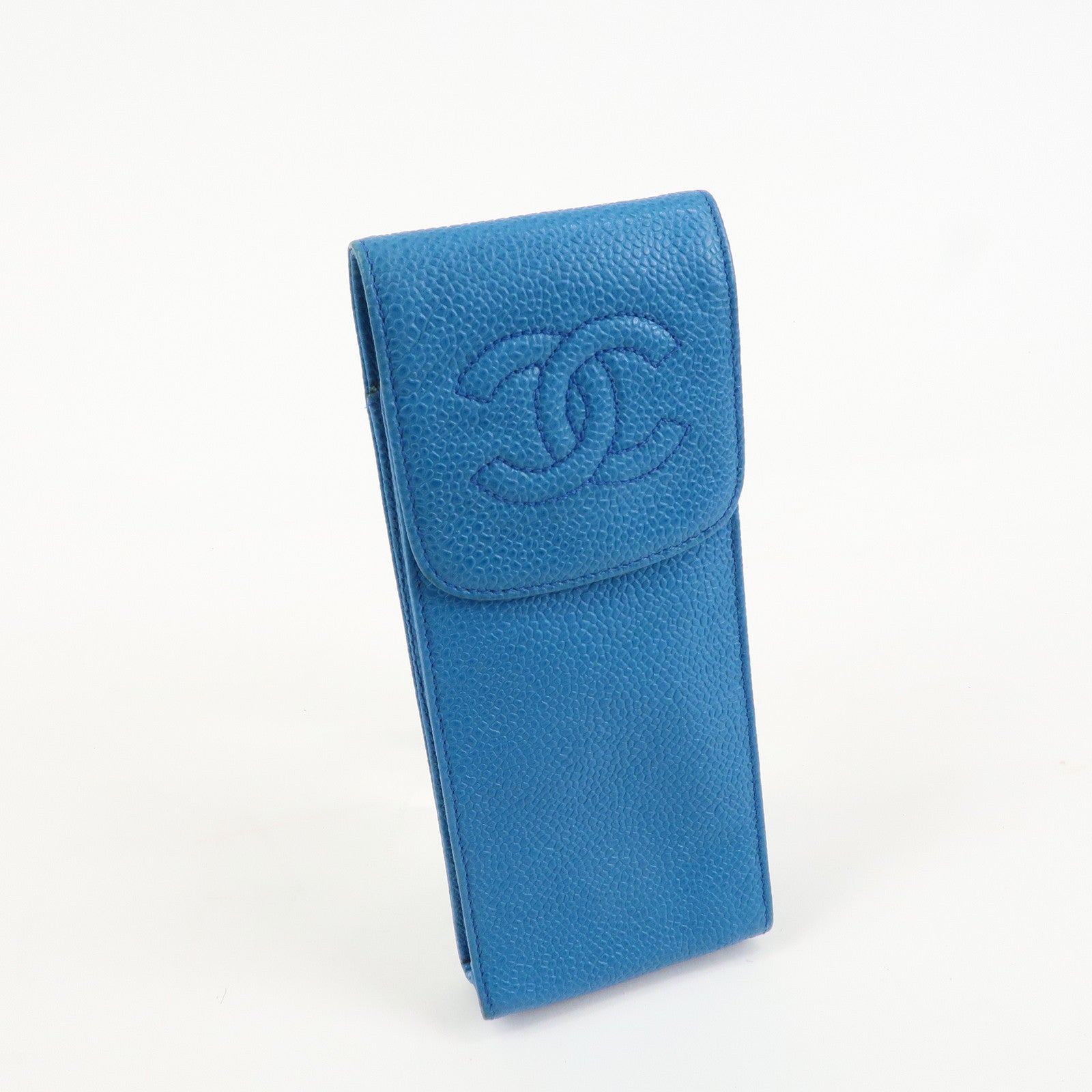 CHANEL COCO Mark Caviarskin Pen Case Glasses Case Blue Used