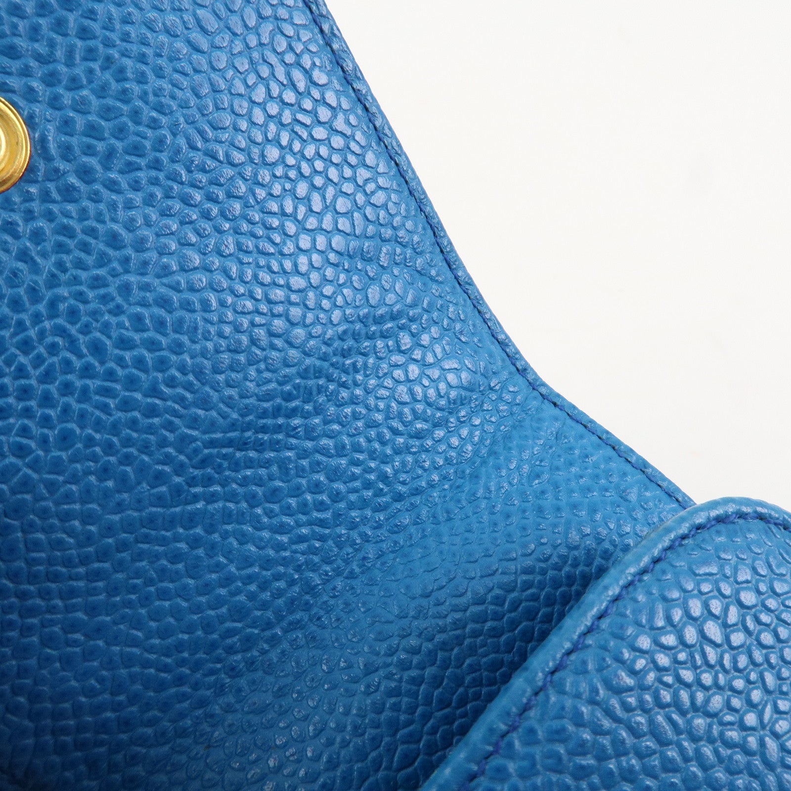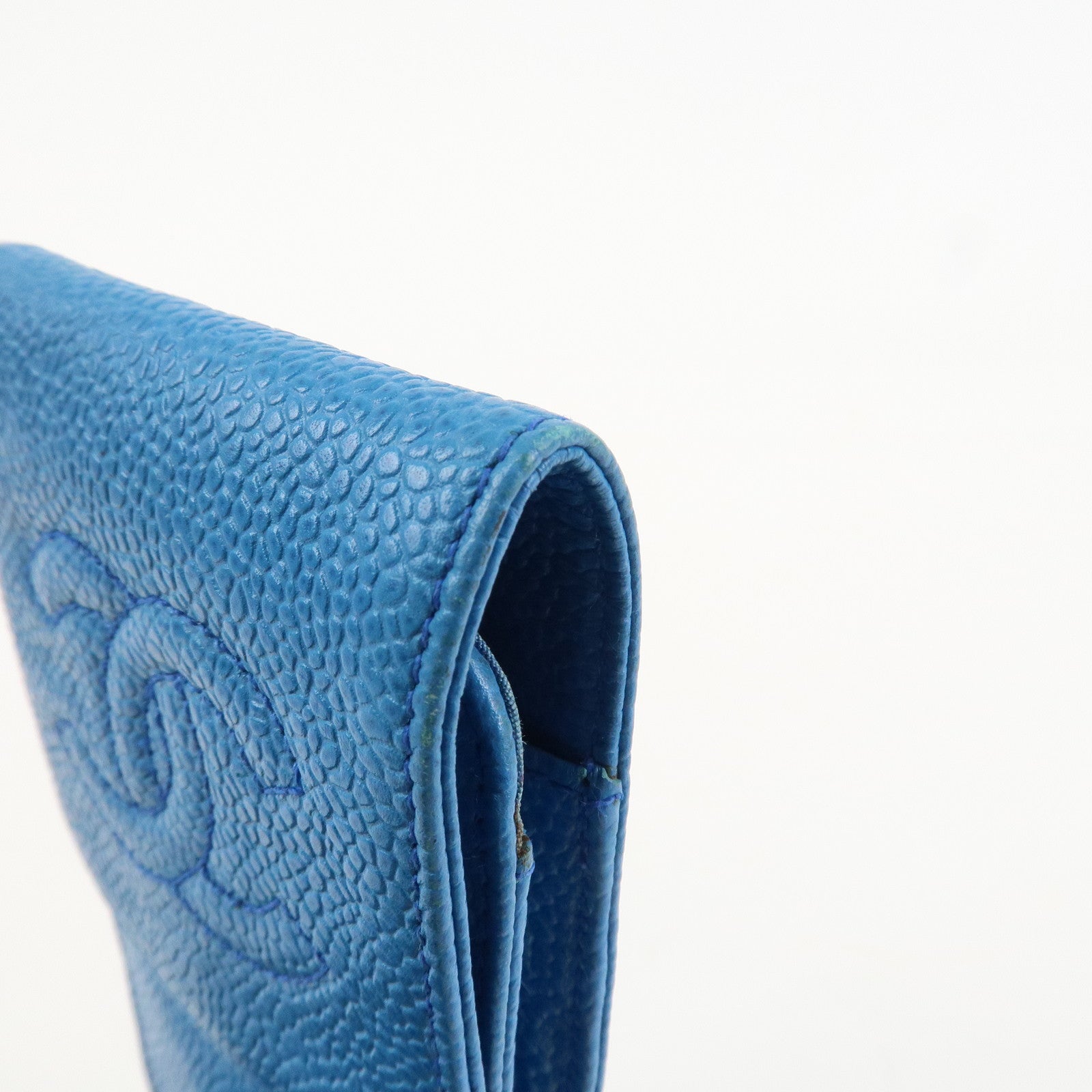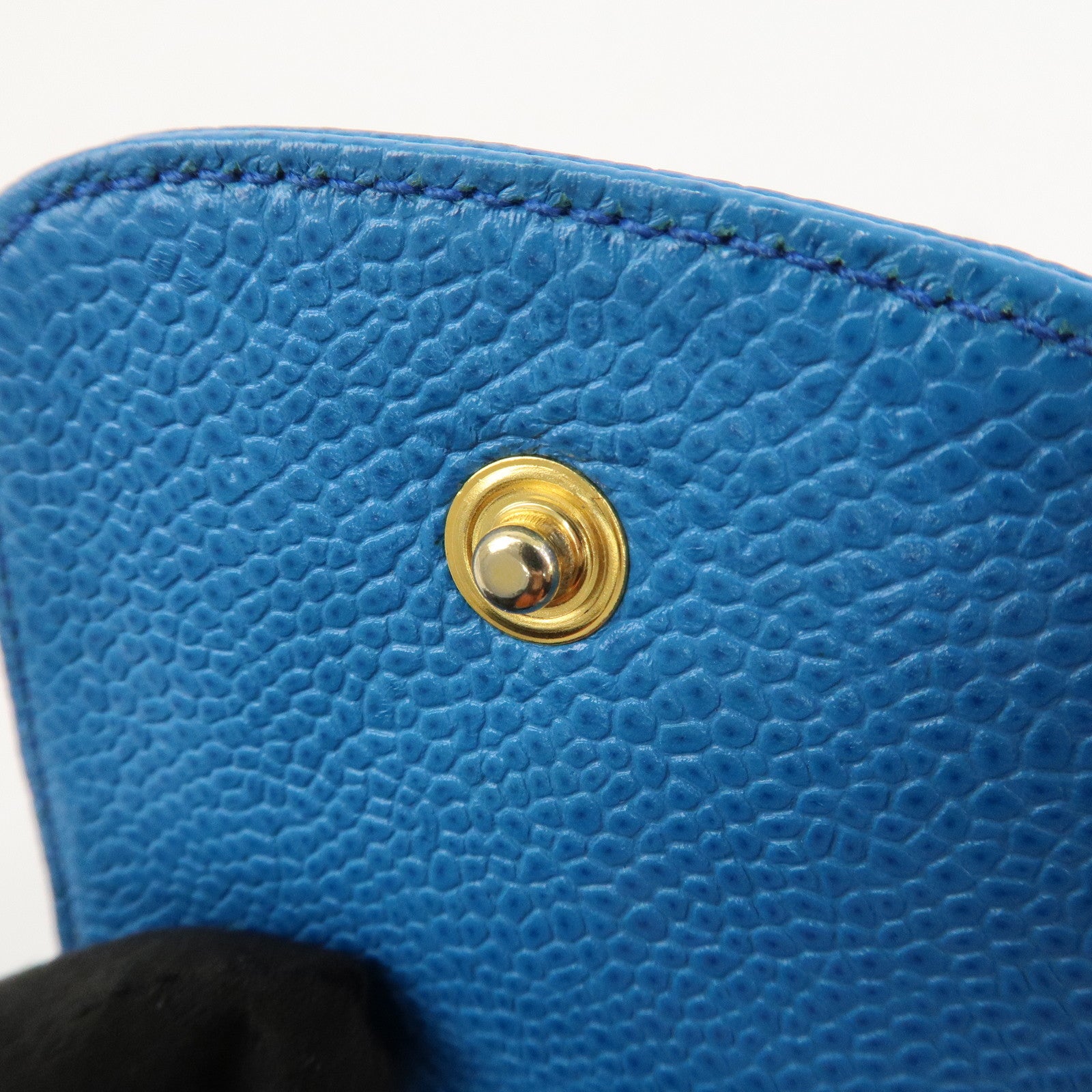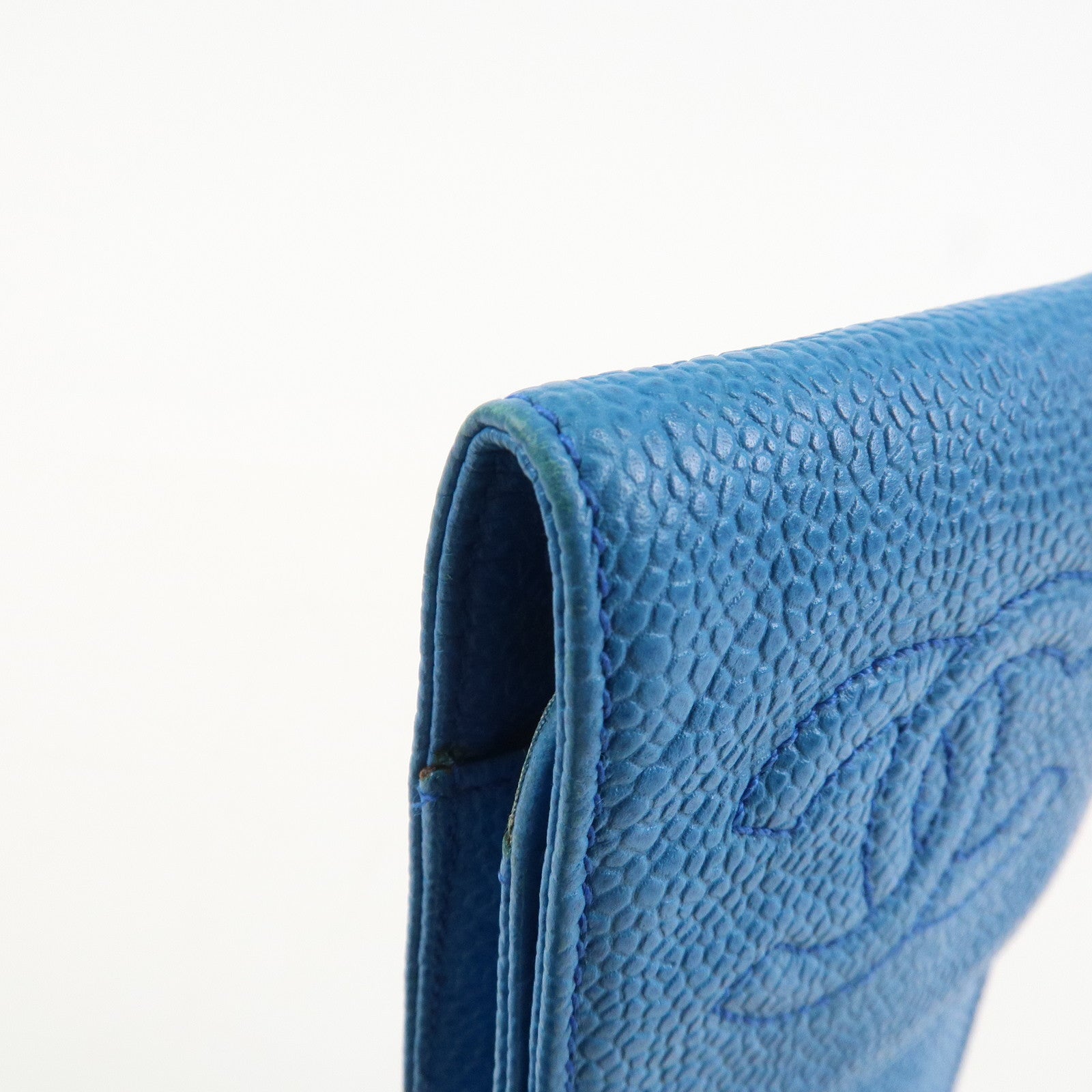 CHANEL COCO Mark Caviarskin Pen Case Glasses Case Blue Used