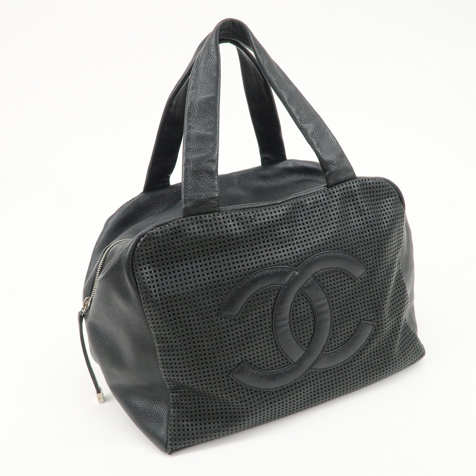 CHANEL COCO Mark Caviarskin Punching Boston Bag Black Used