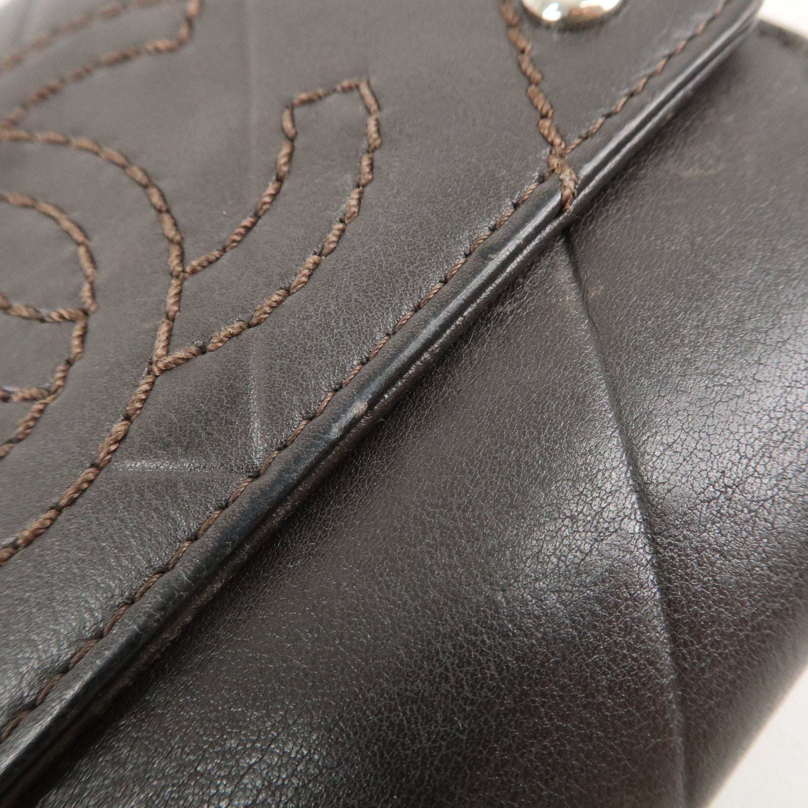 CHANEL Lamb Skin Coco Mark Double Hook Wallet Dark Brown