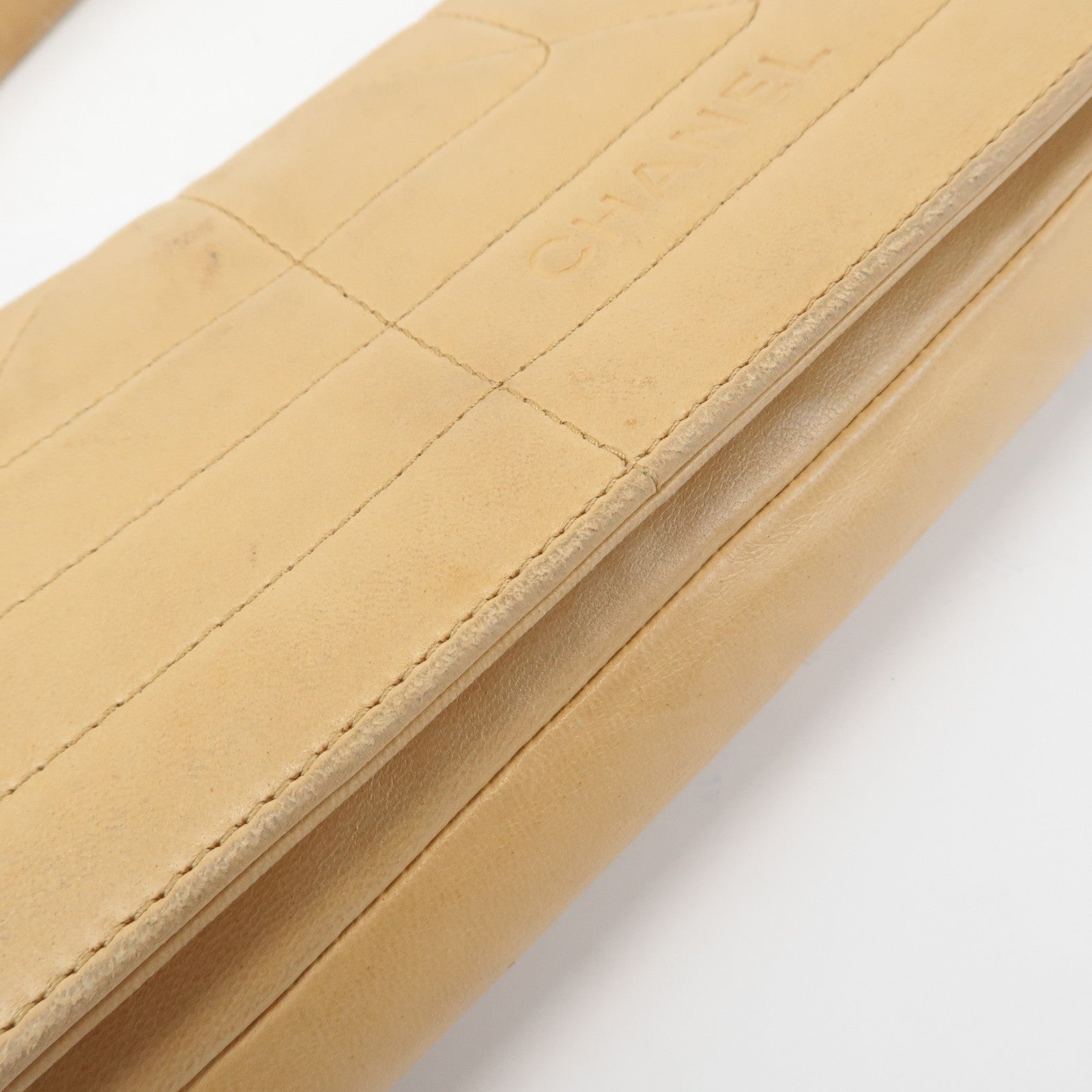 CHANEL Lamb Skin Shoulder Bag Silver Hardware Beige Used