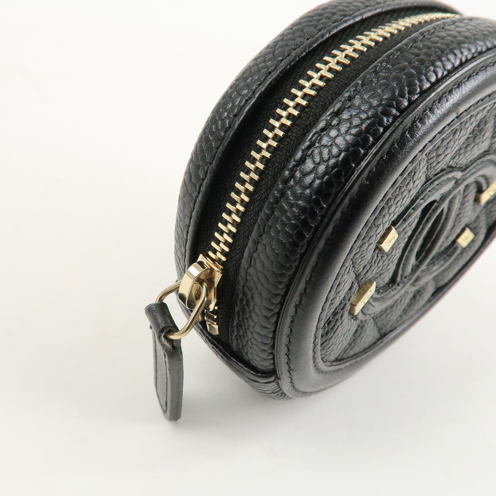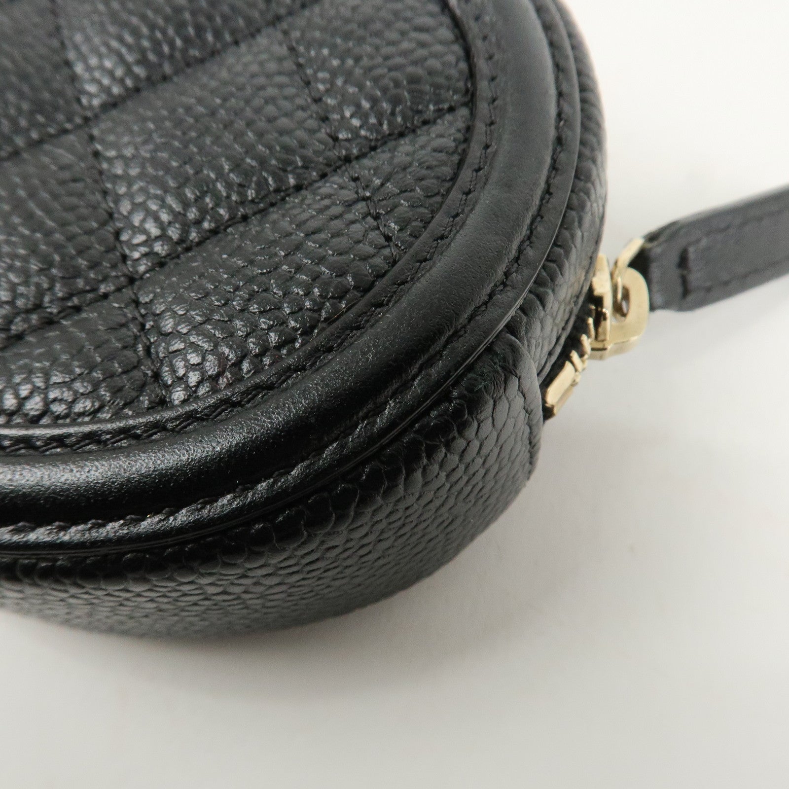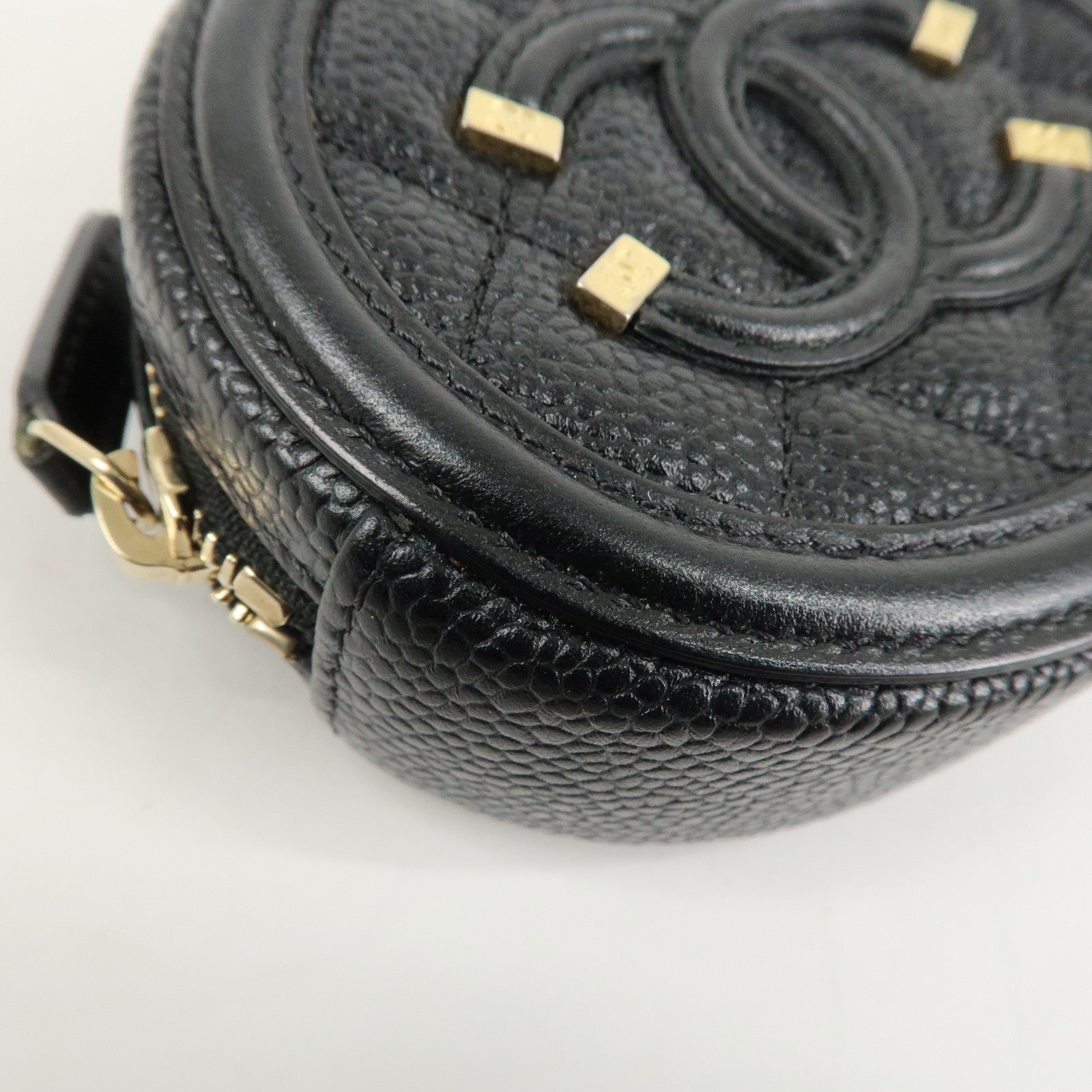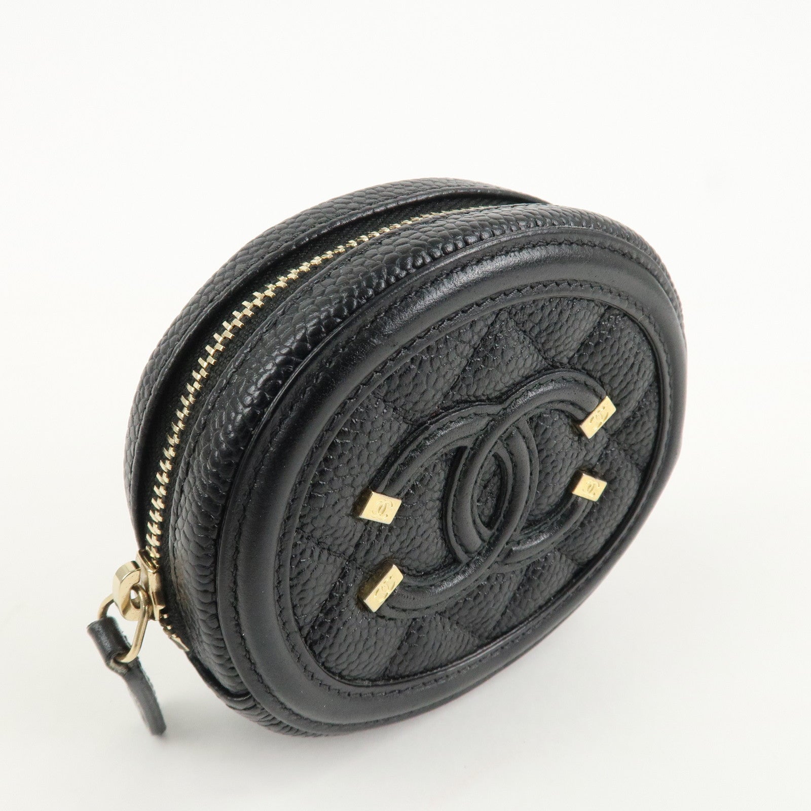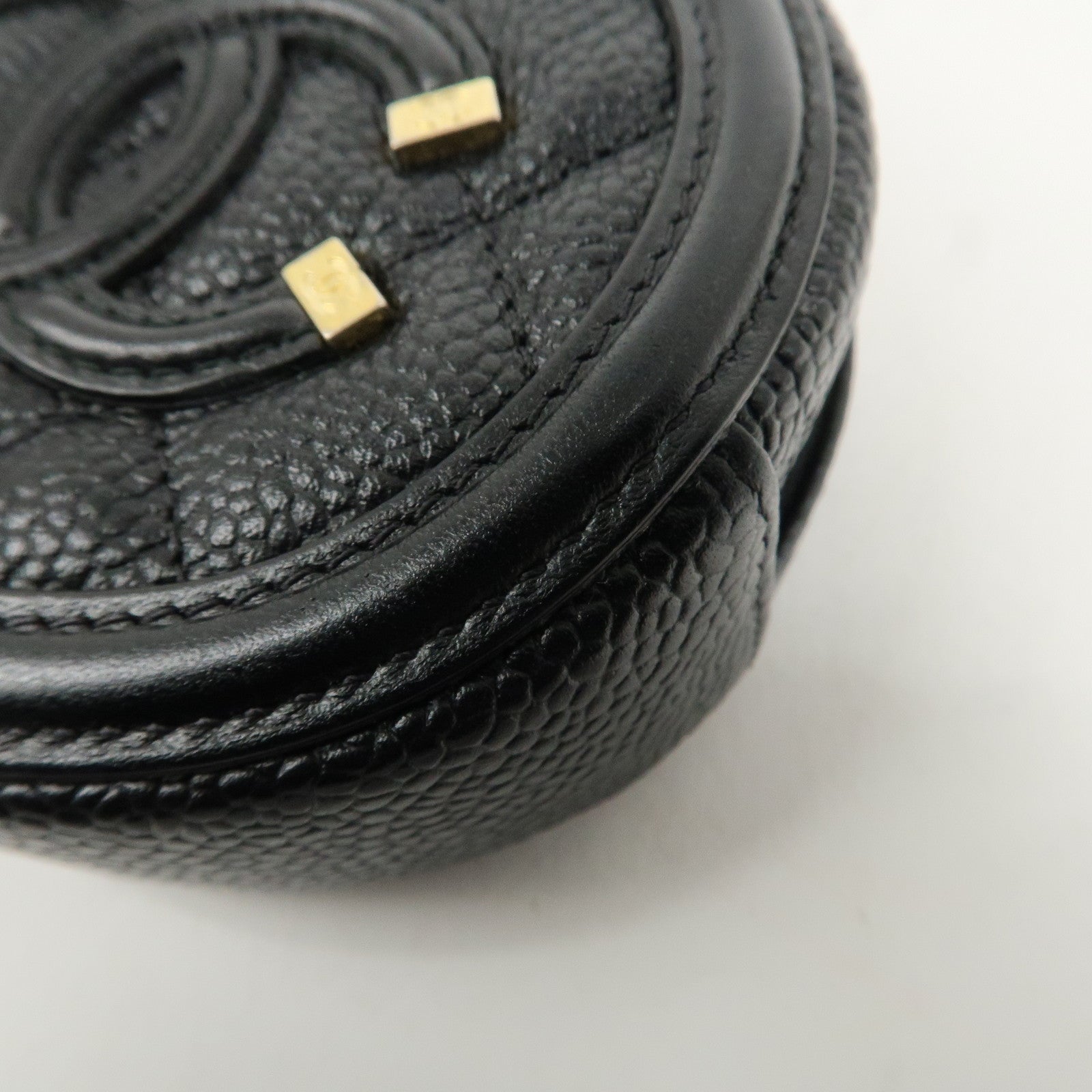 CHANEL Matelasse CC Filigree Caviarskin Coin Case Black A81458 Used