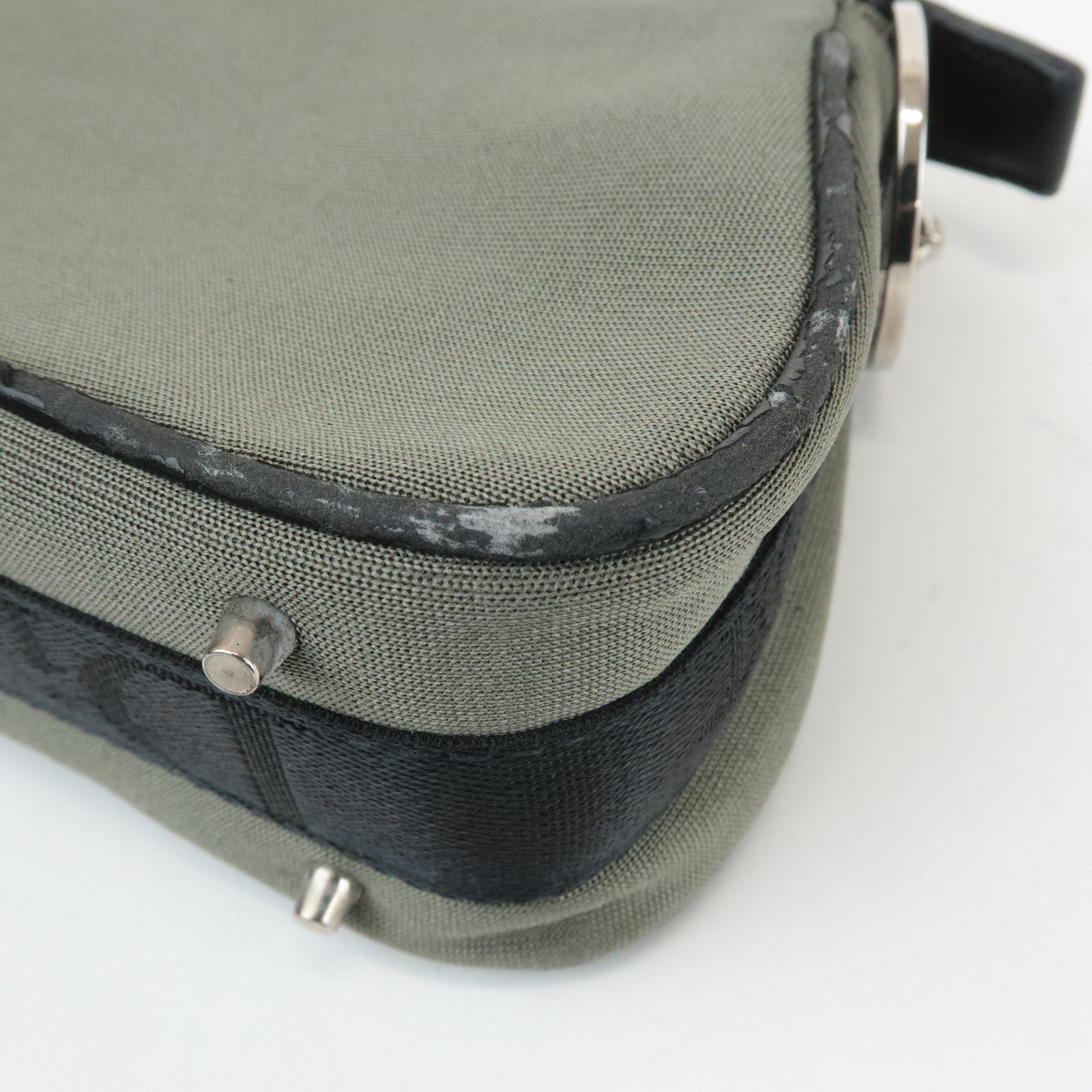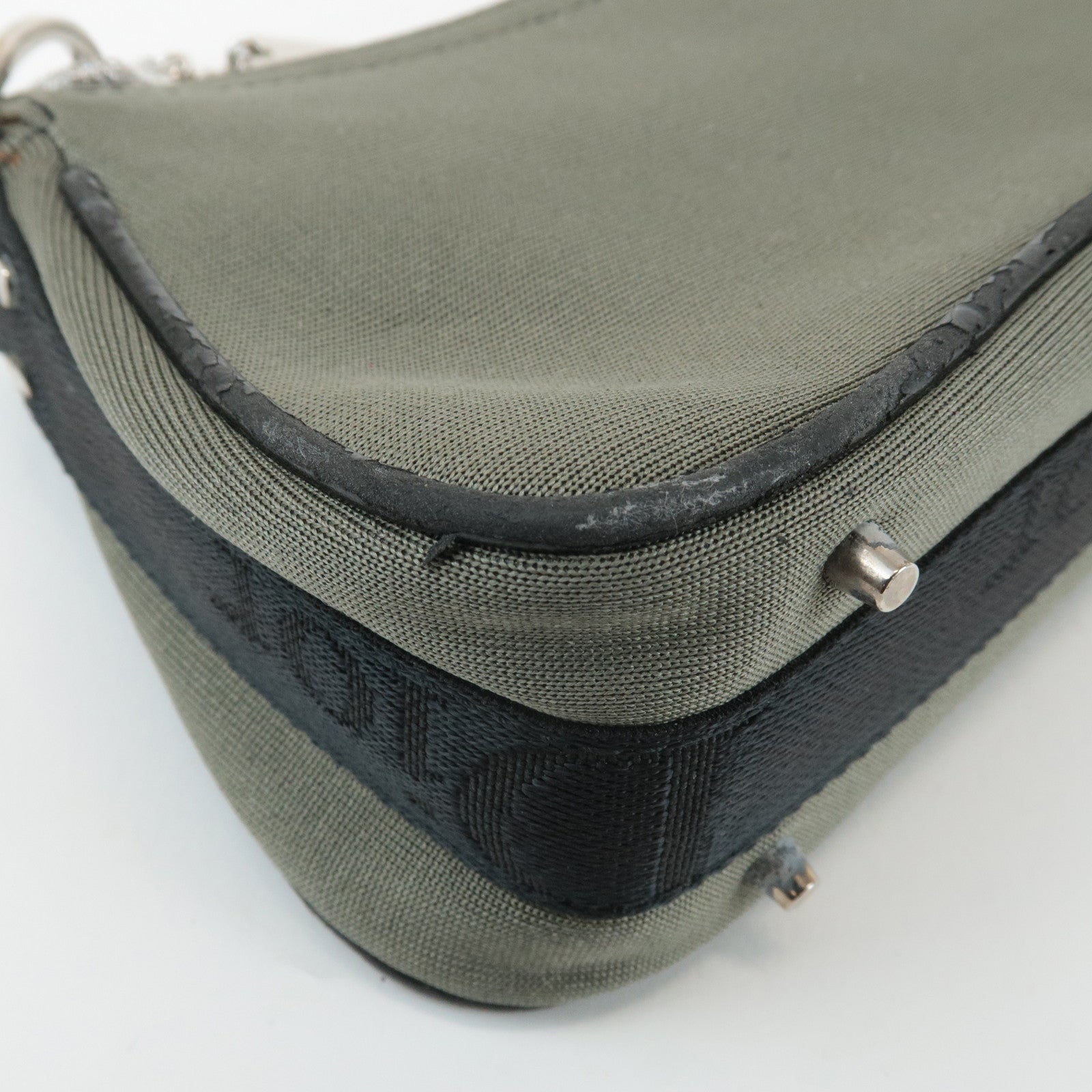 Chiristian Dior Canvas Leather Chain Pouch Hand Bag Khaki Black Used