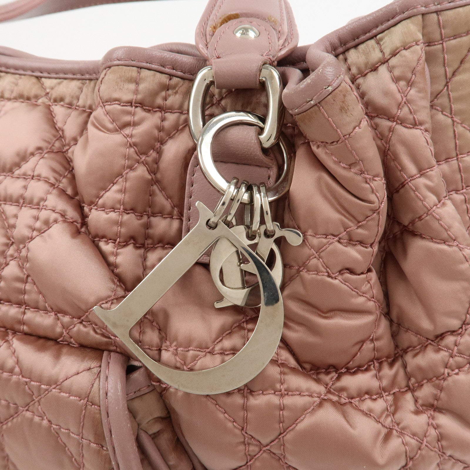 Christian Dior Cannage Nylon Leather Hand Bag Tote Bag Pink