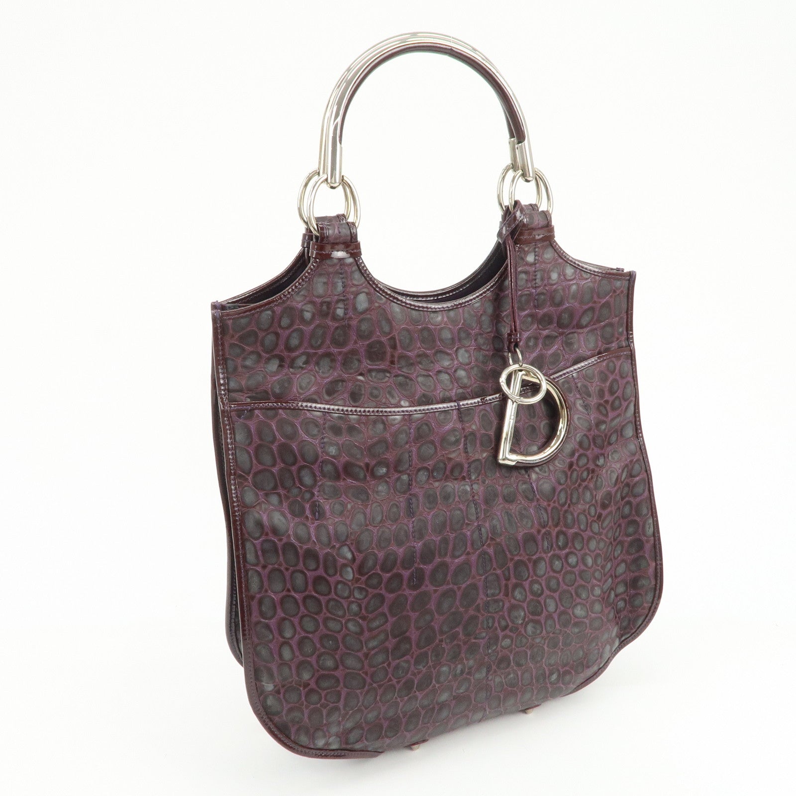 Christian Dior Embossed Leather Tote Bag Shoulder Bag Purple