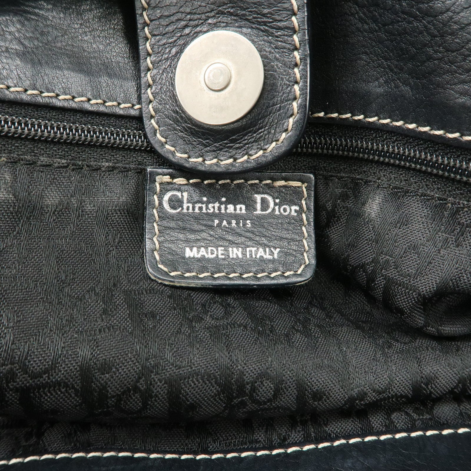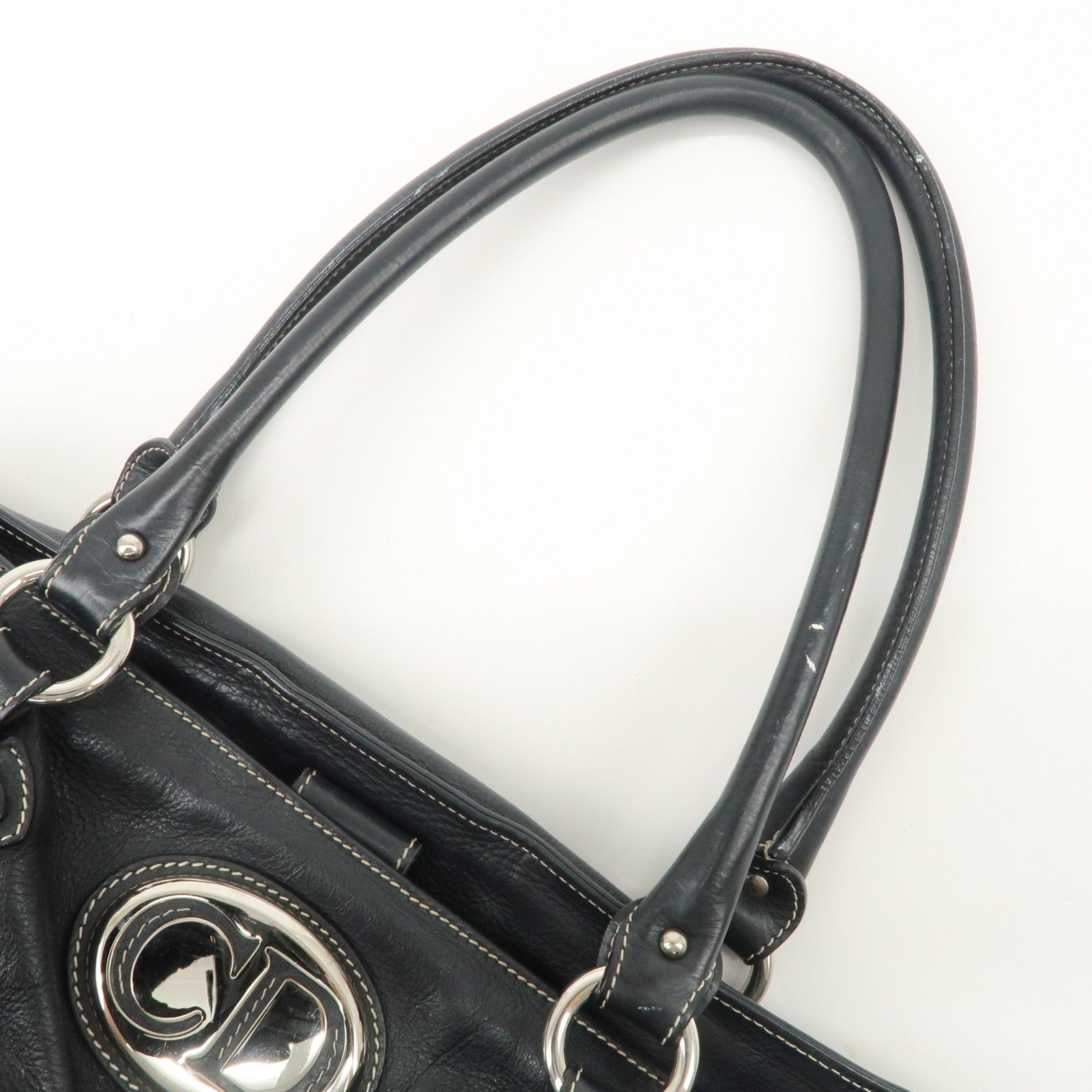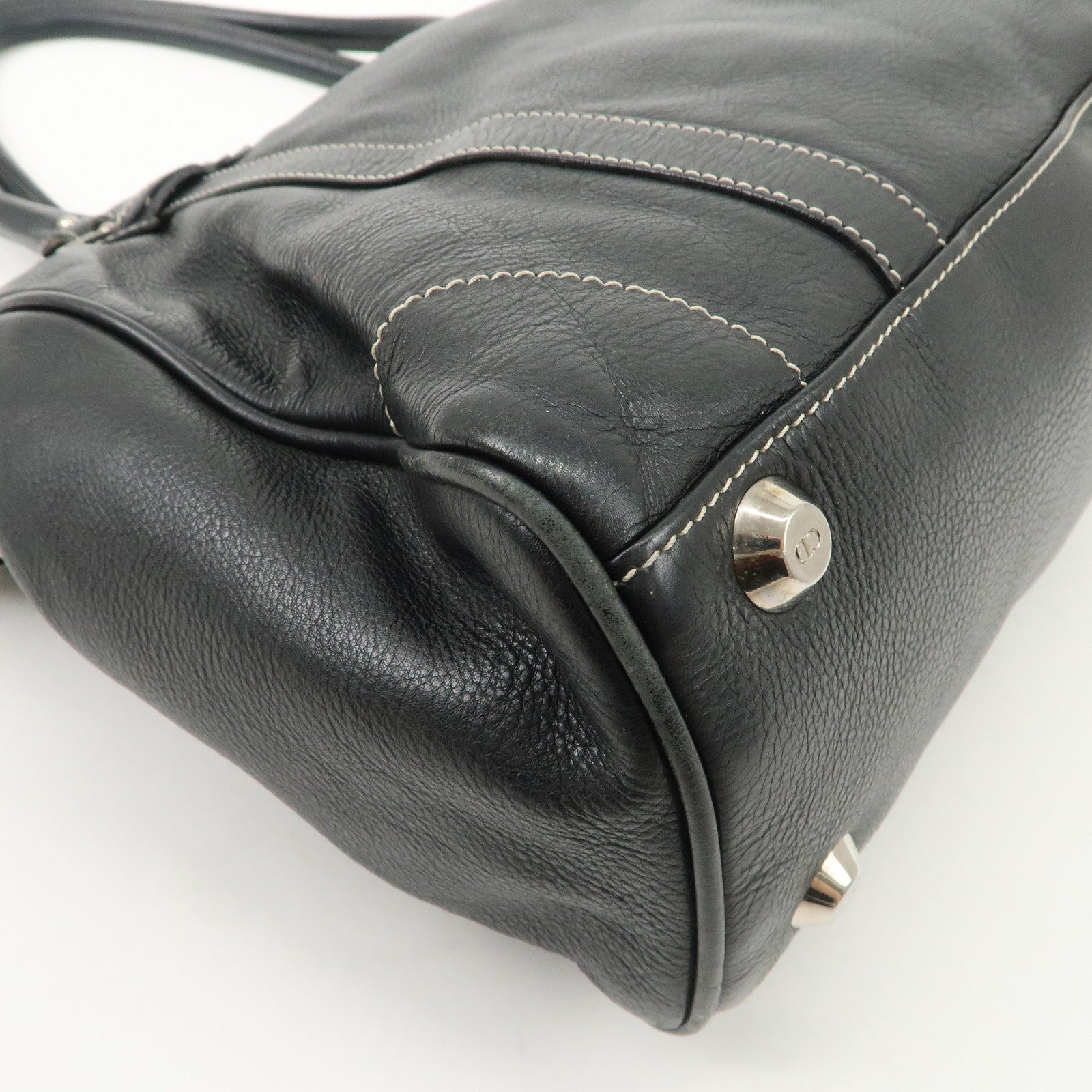Christian Dior Leather Shoulder Bag Hand Bag Black Silver HDW