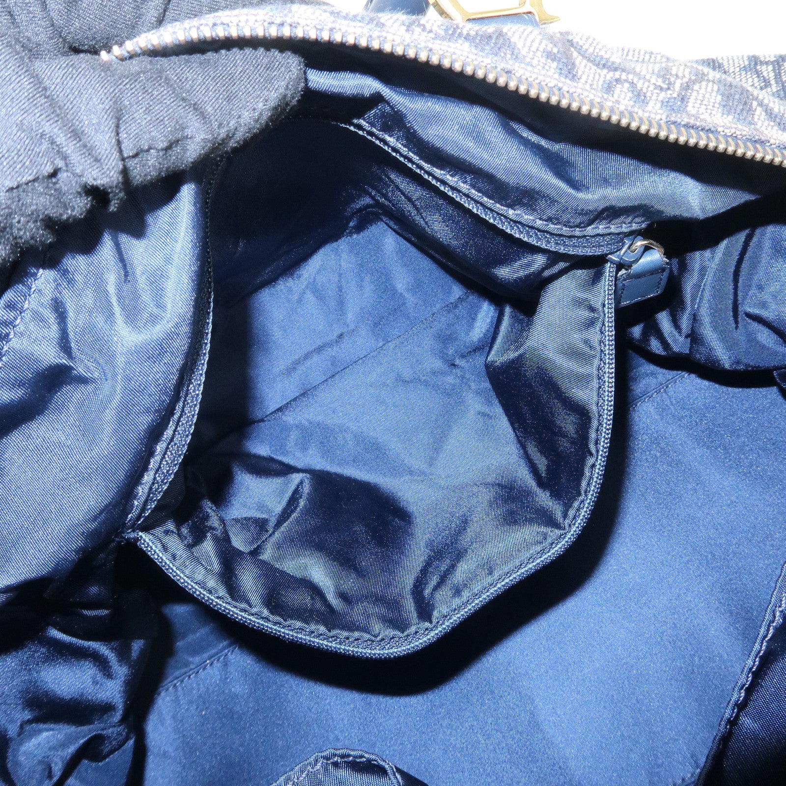 Christian Dior Trotter Jacquard Canvas Leather Boston Bag Navy