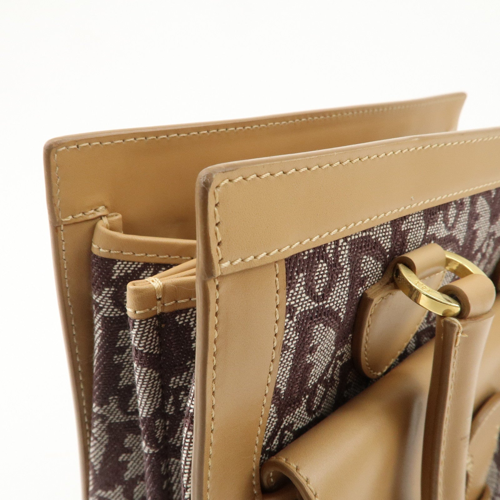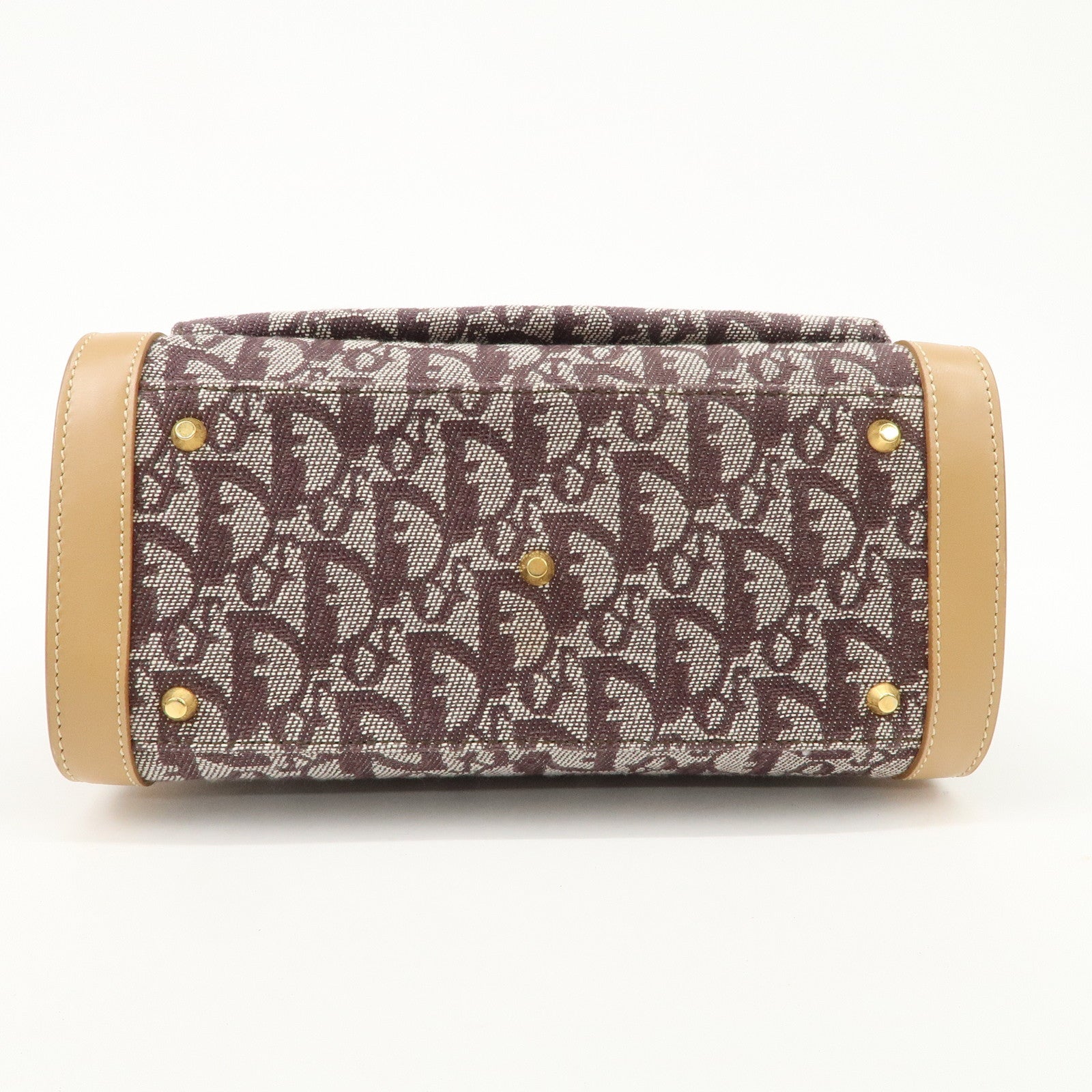 Christian Dior Trotter Jacquard Leather Hand Bag Brown Gold HDW