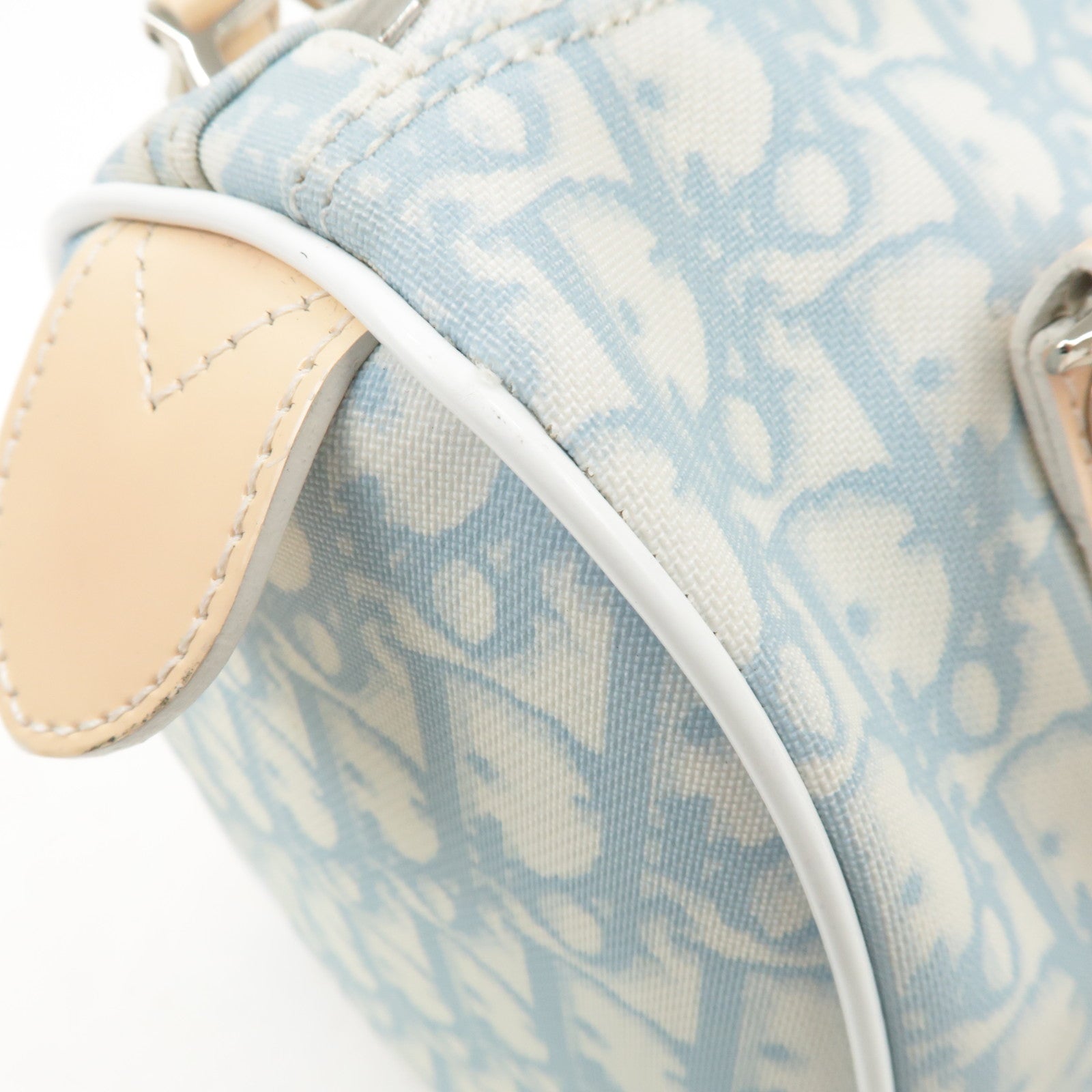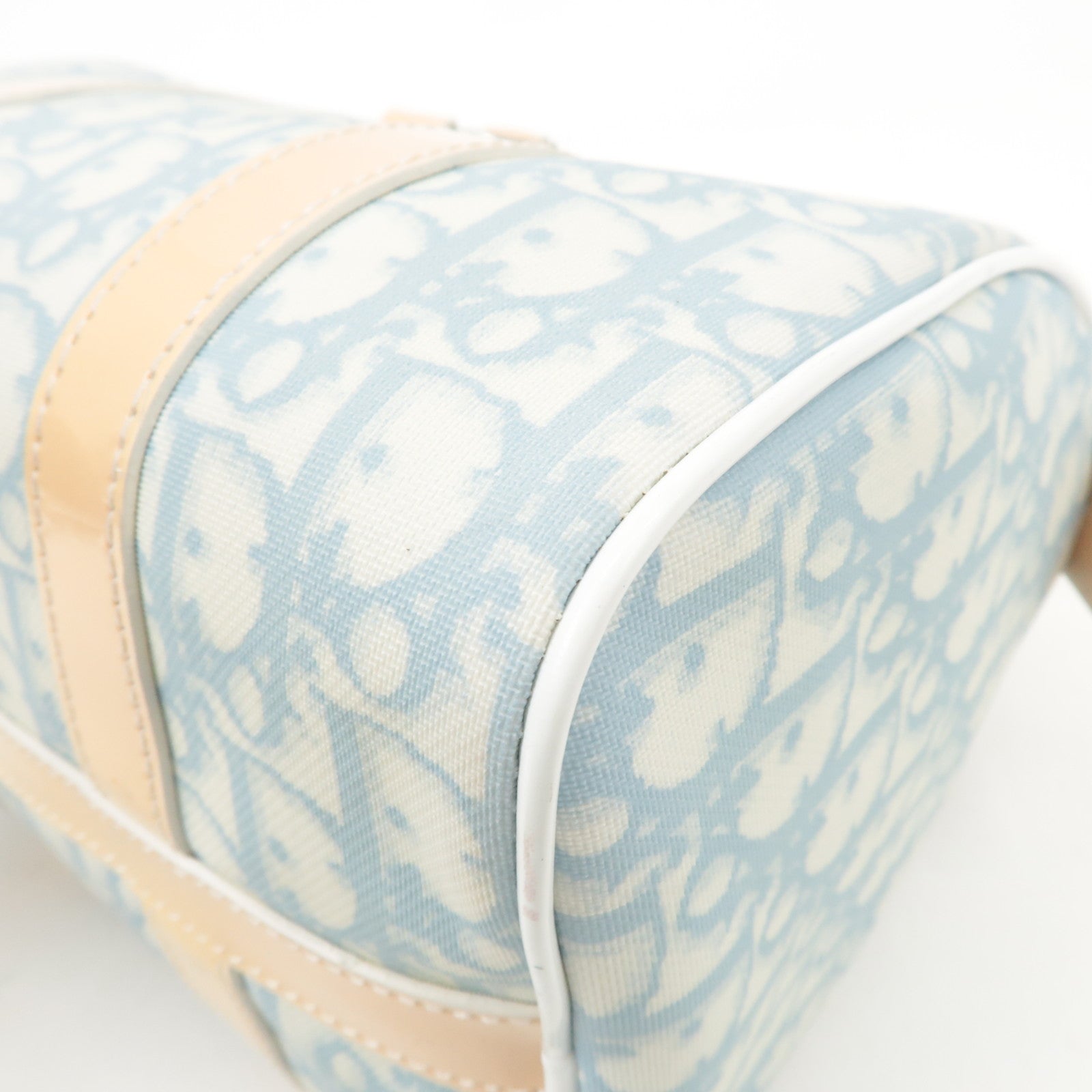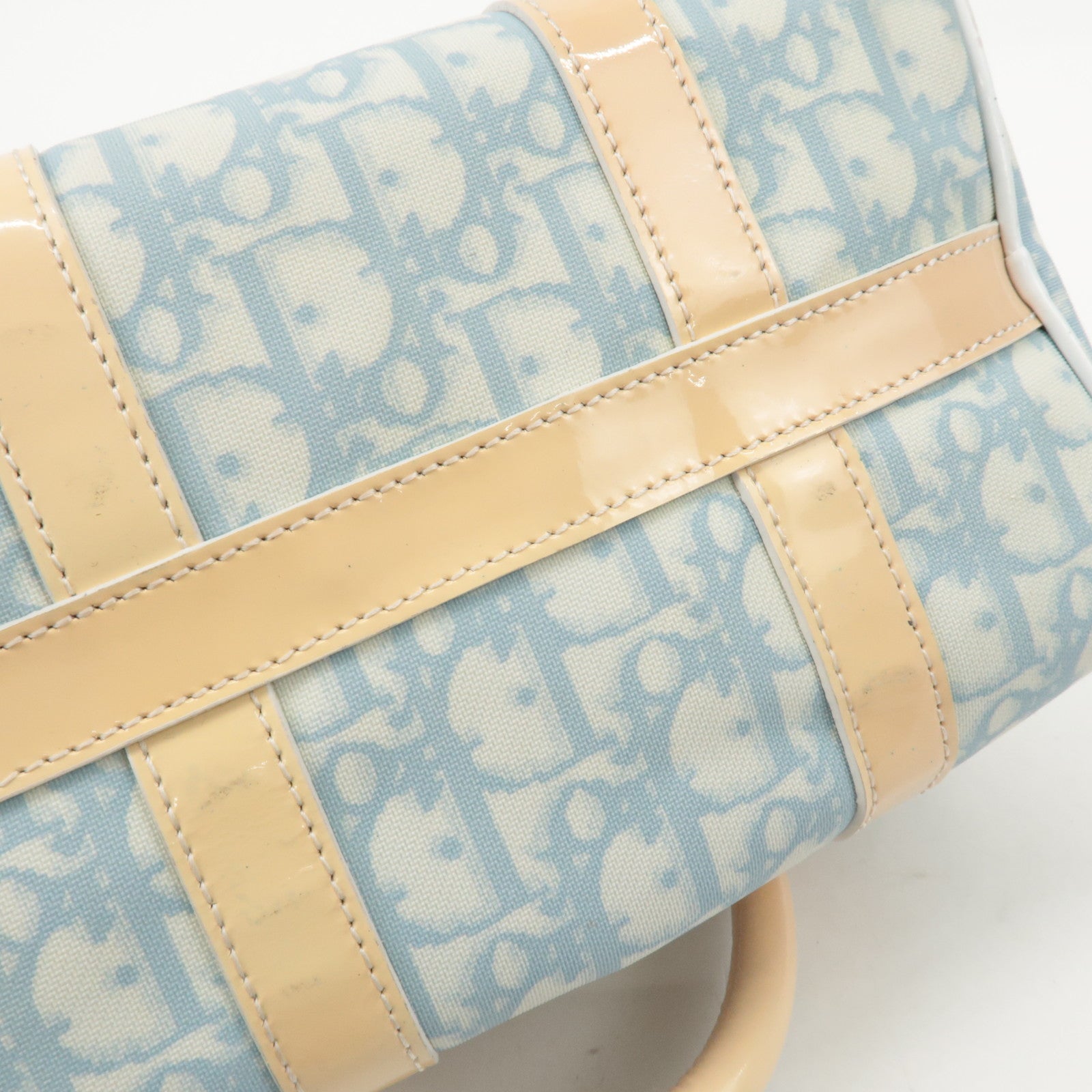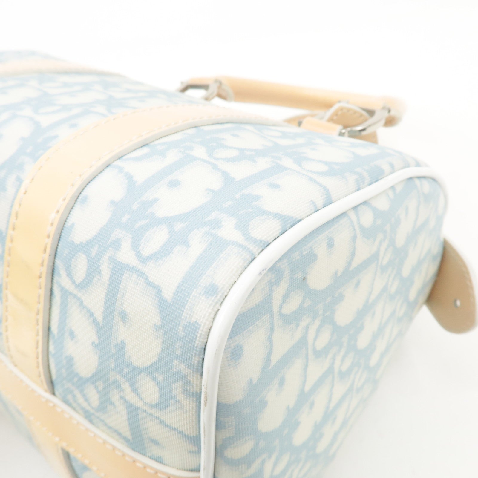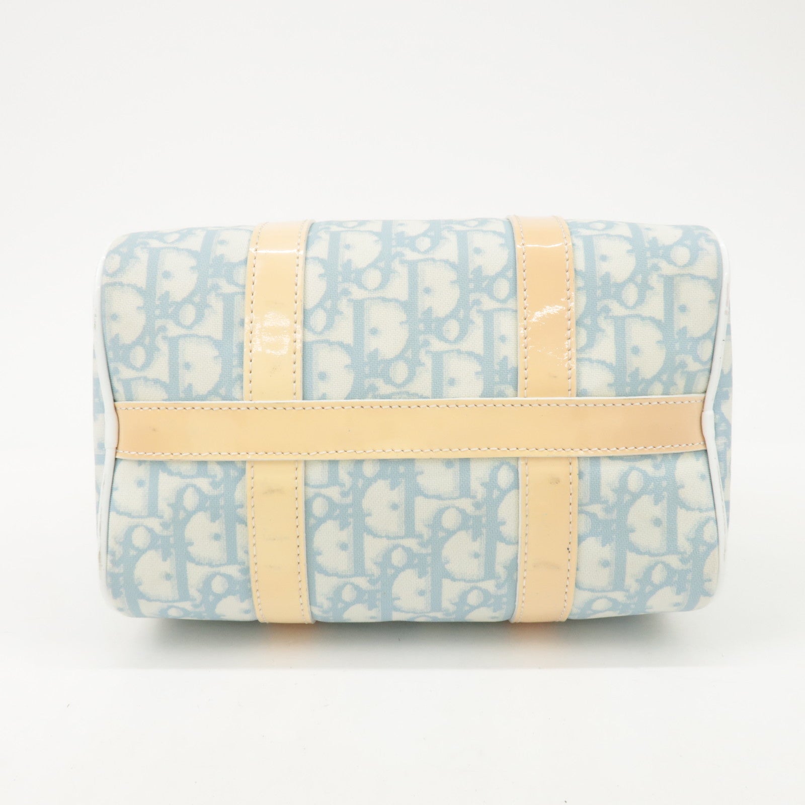 Christian Dior Trotter Leather PVC Hand Bag Beige Light Blue Used