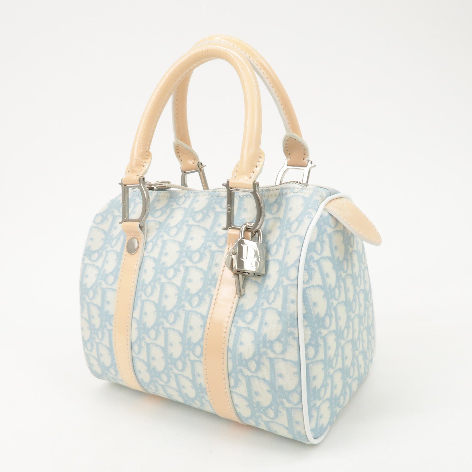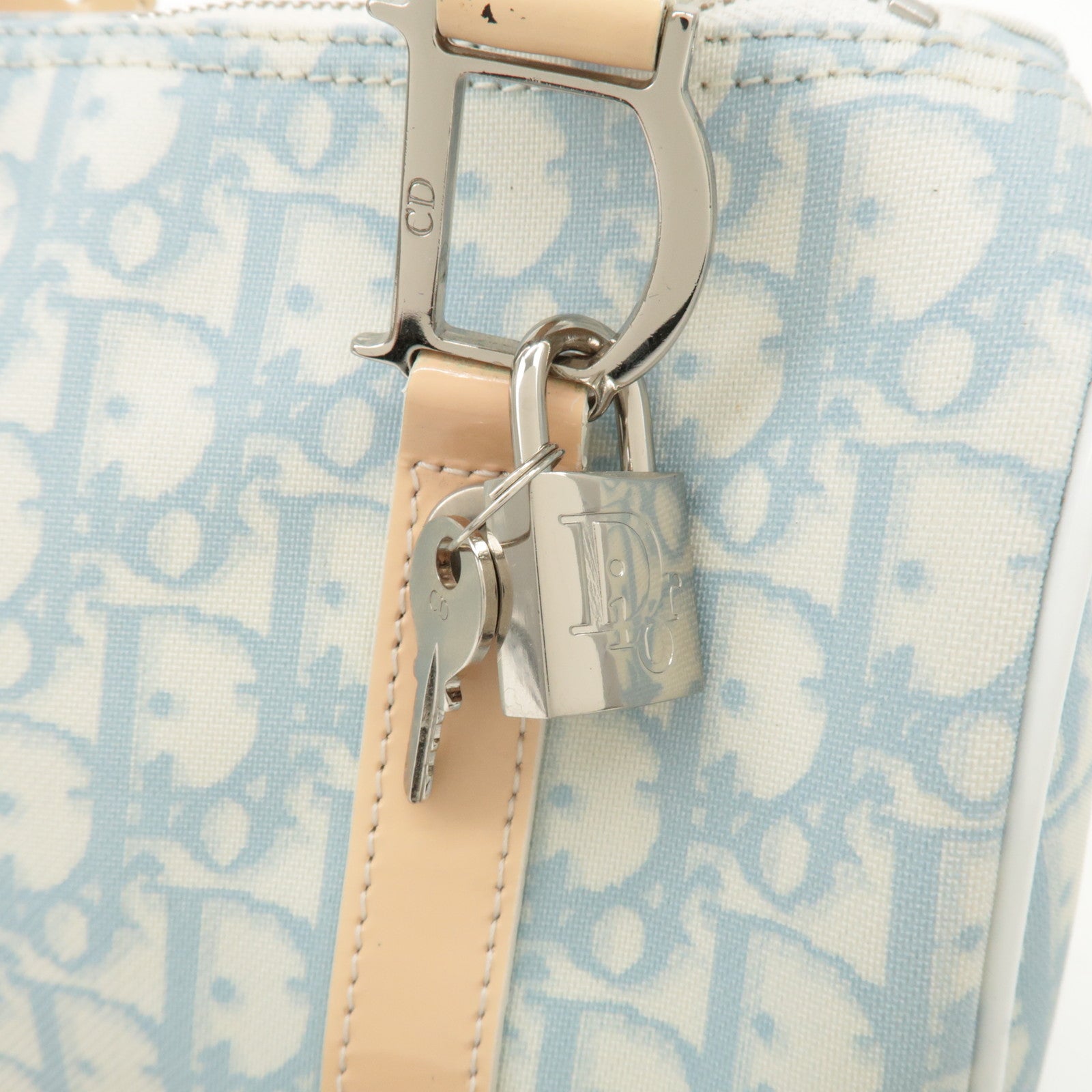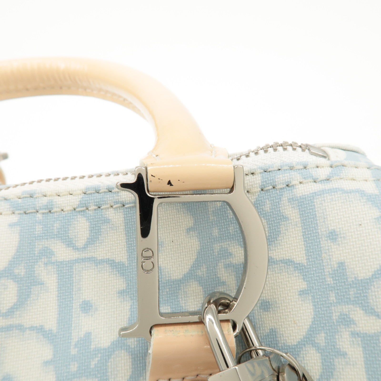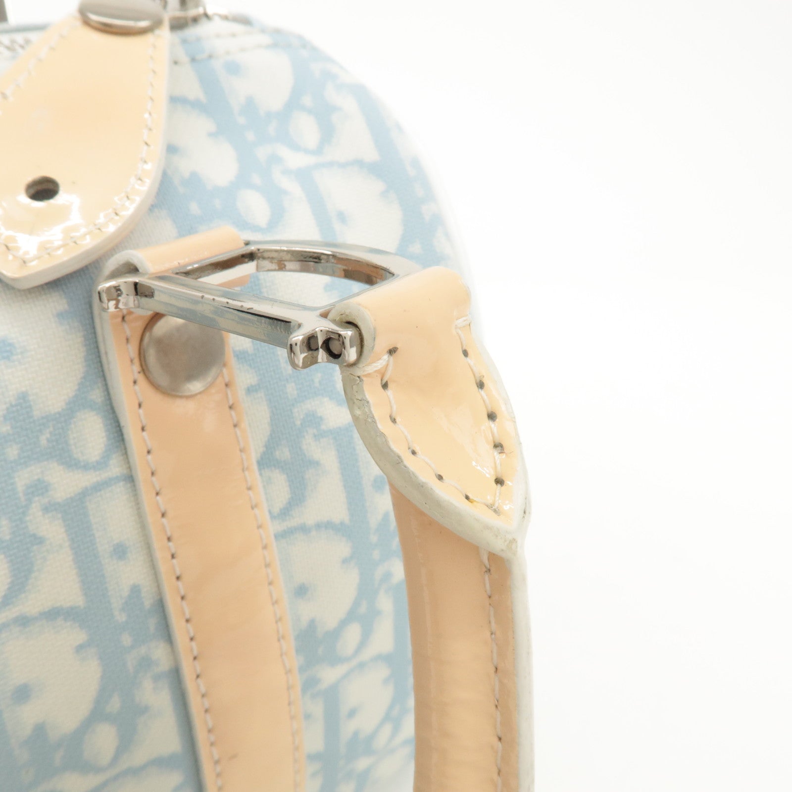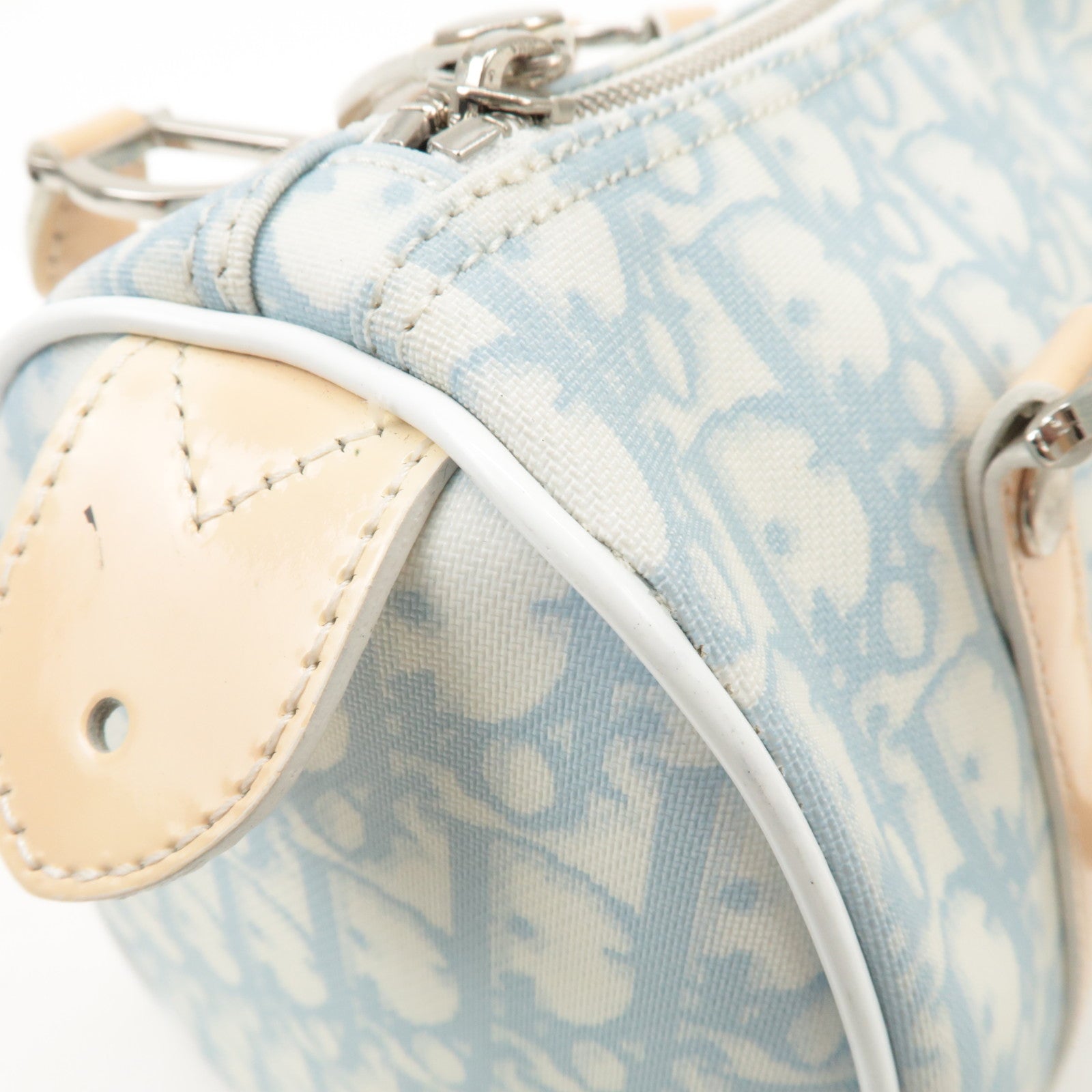 Christian Dior Trotter Leather PVC Hand Bag Beige Light Blue Used
