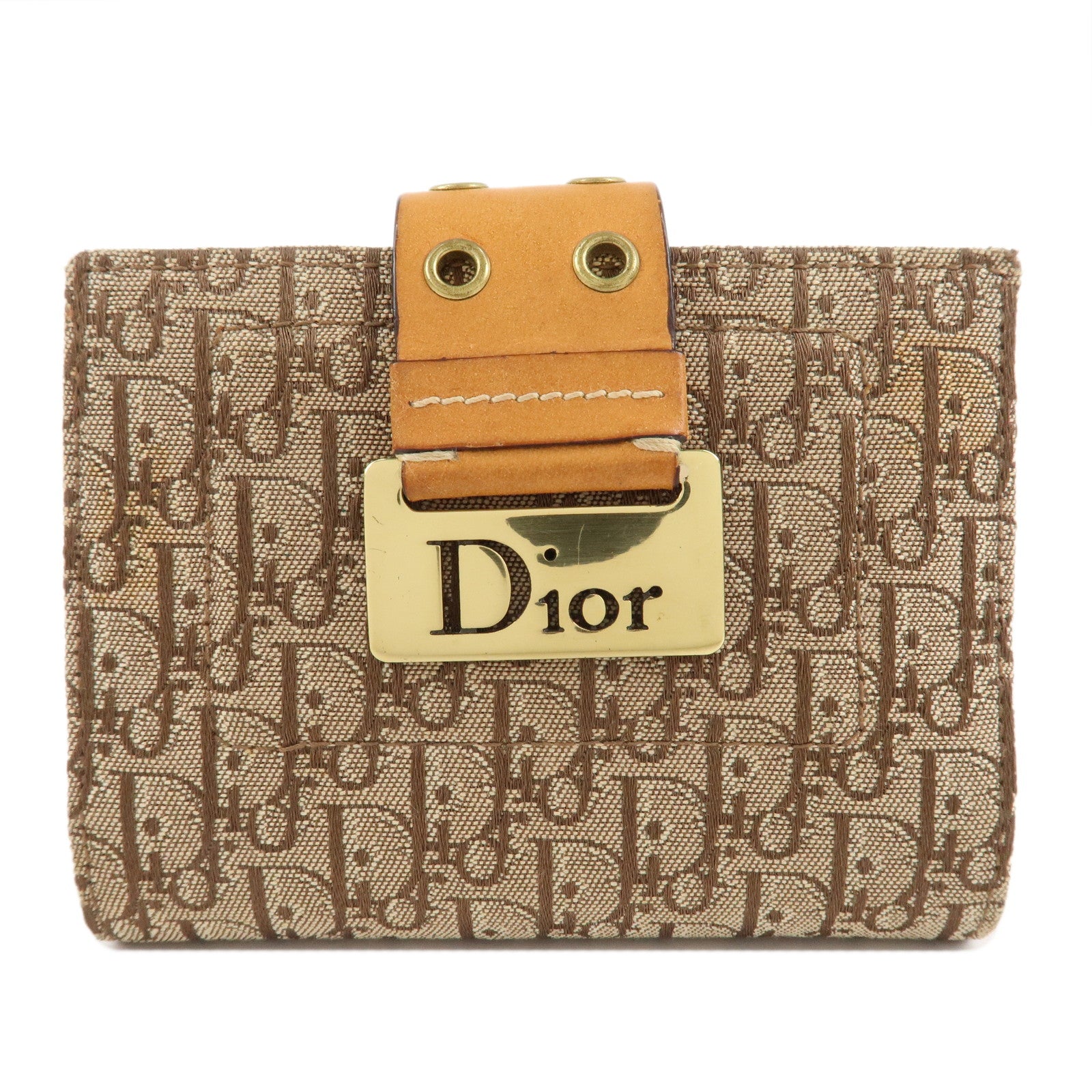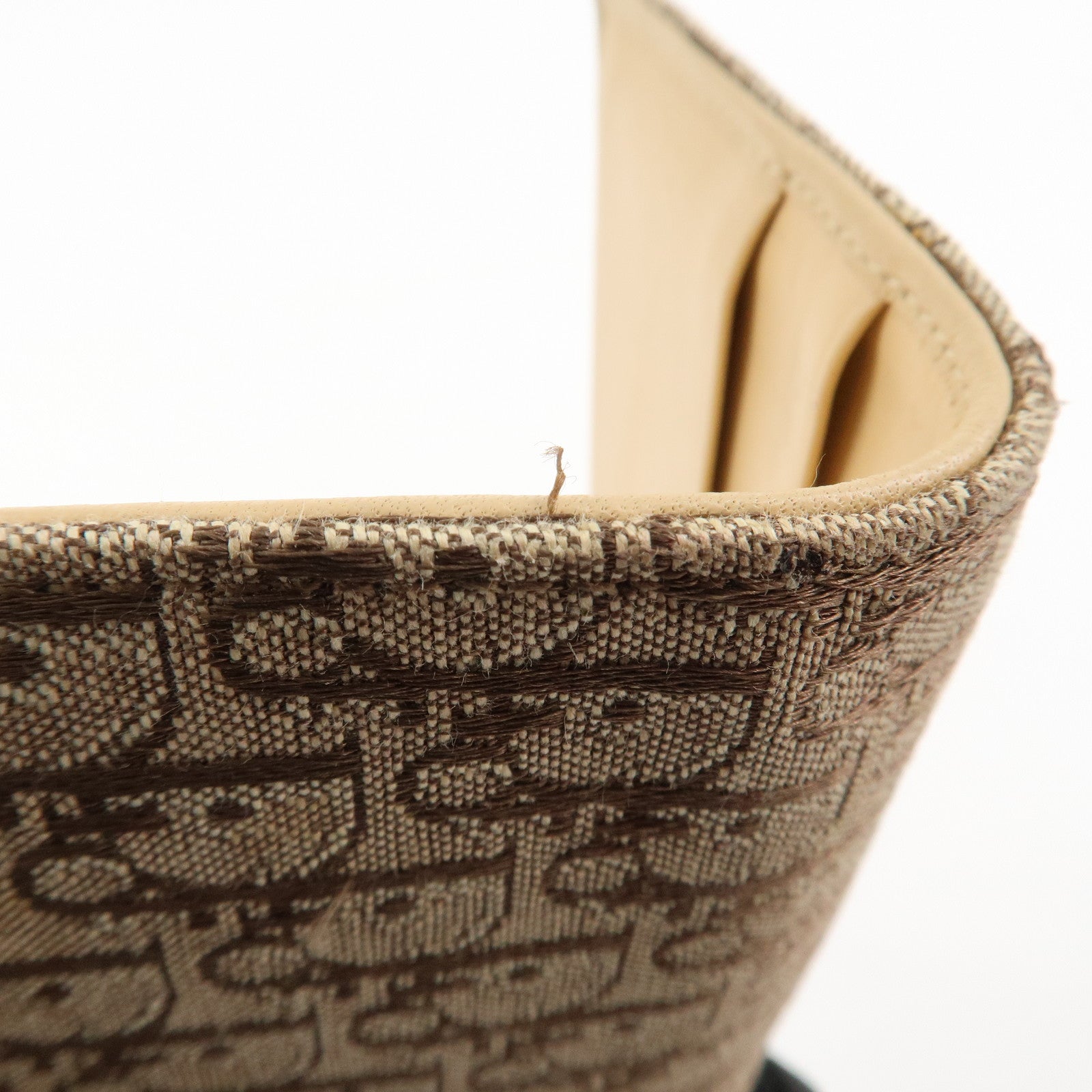 Cristian Dior Trotter Canvas Leather Bifold Card Case Beige Brown Used