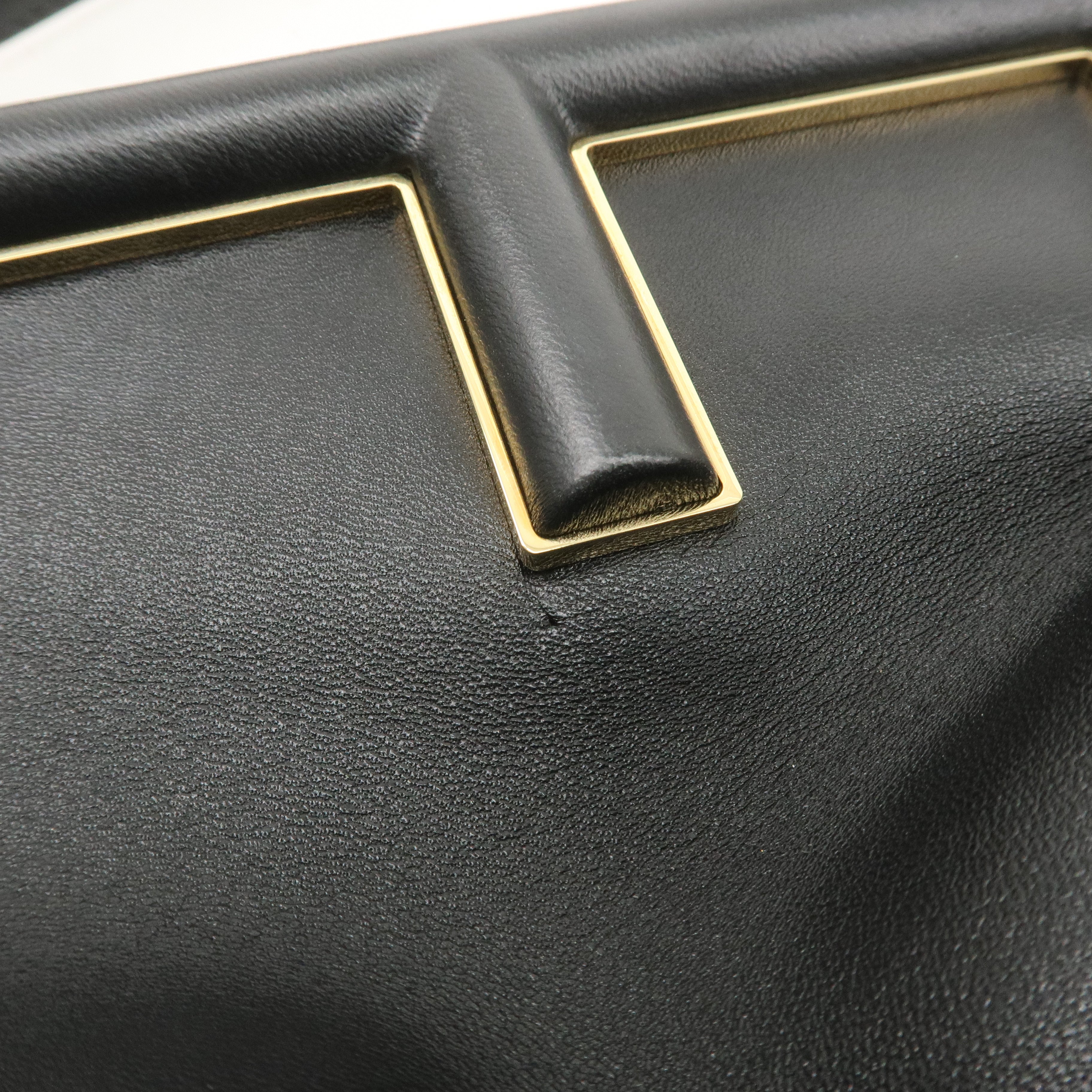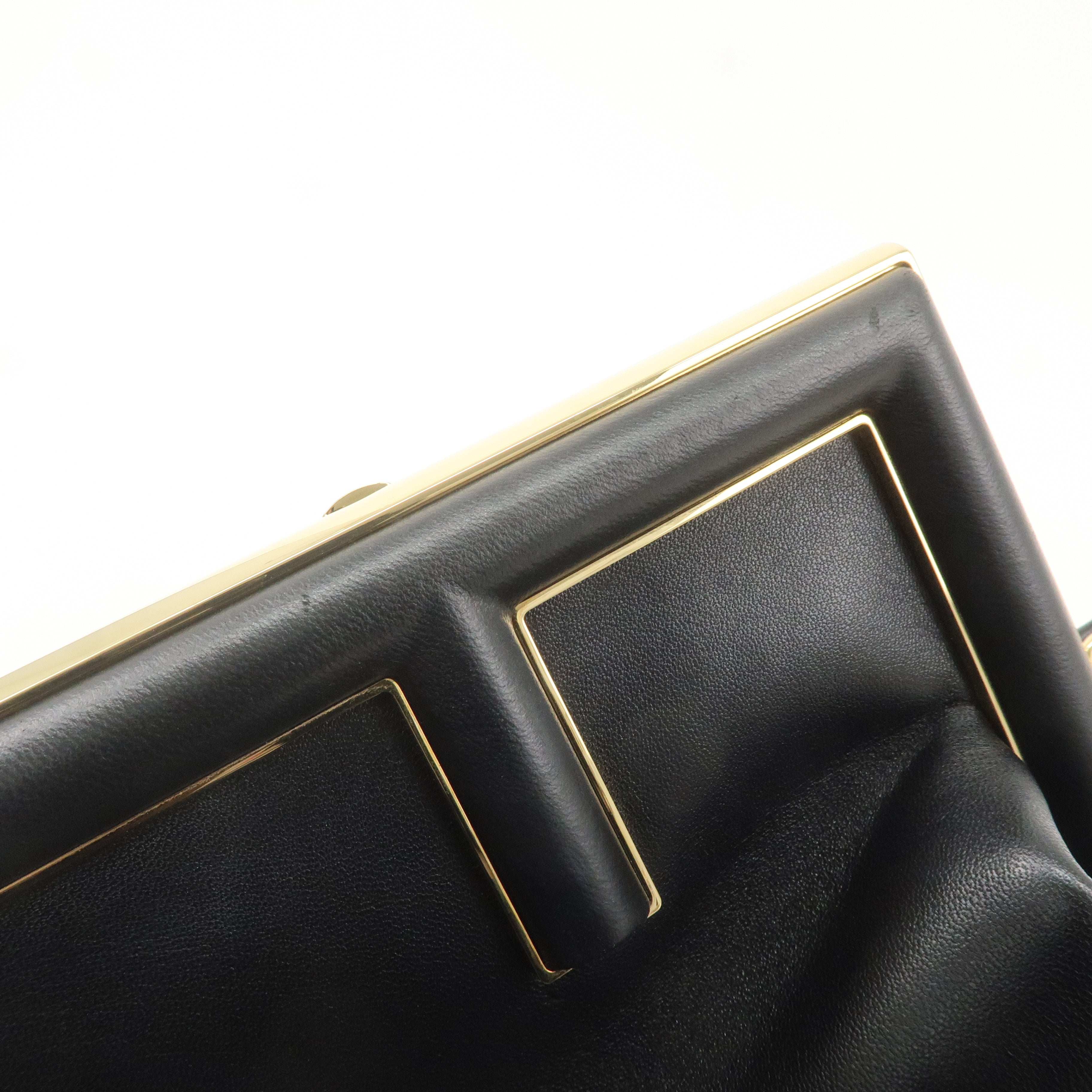 FENDI Leather First Medium 2Way Clutch Shoulder Bag Black 8BL127
