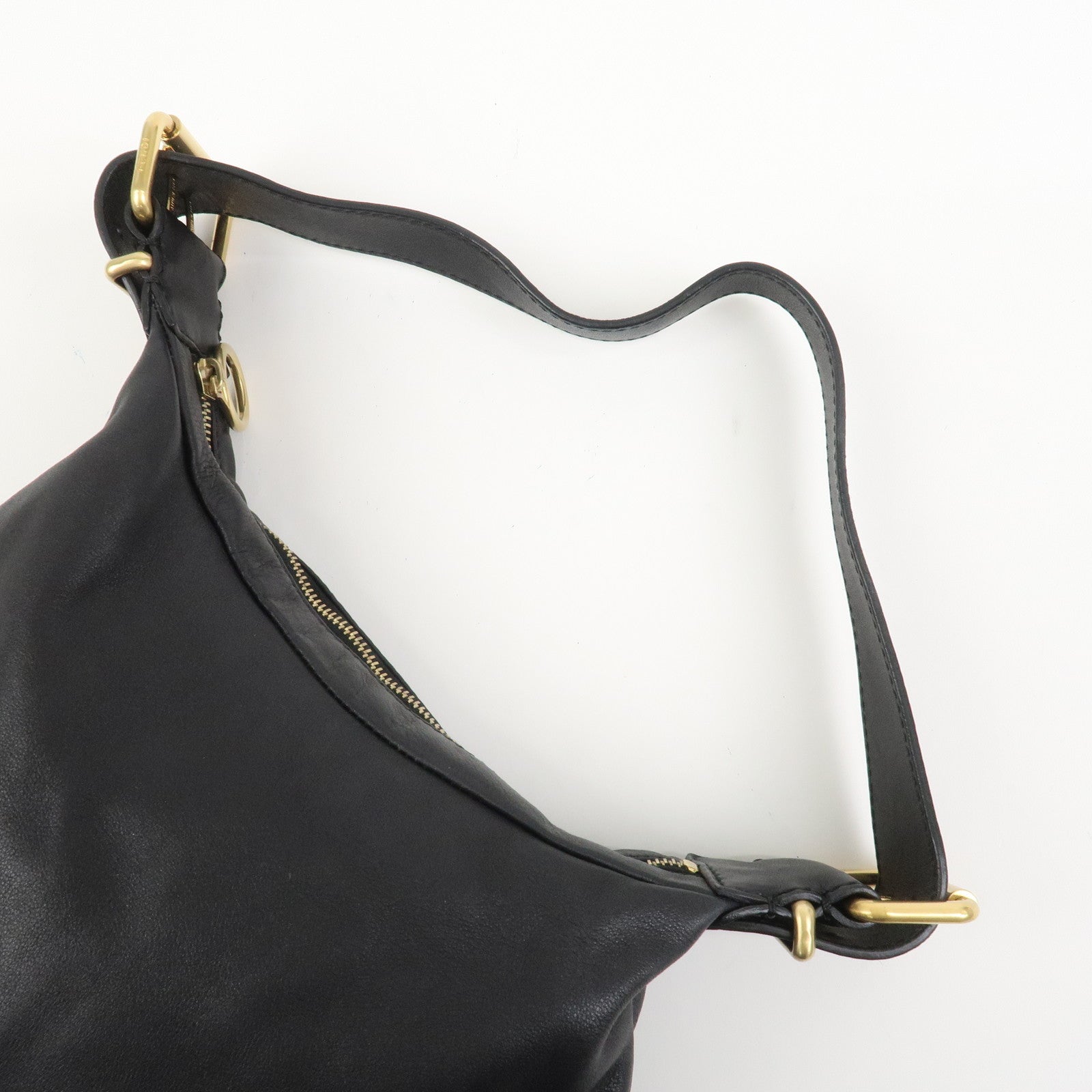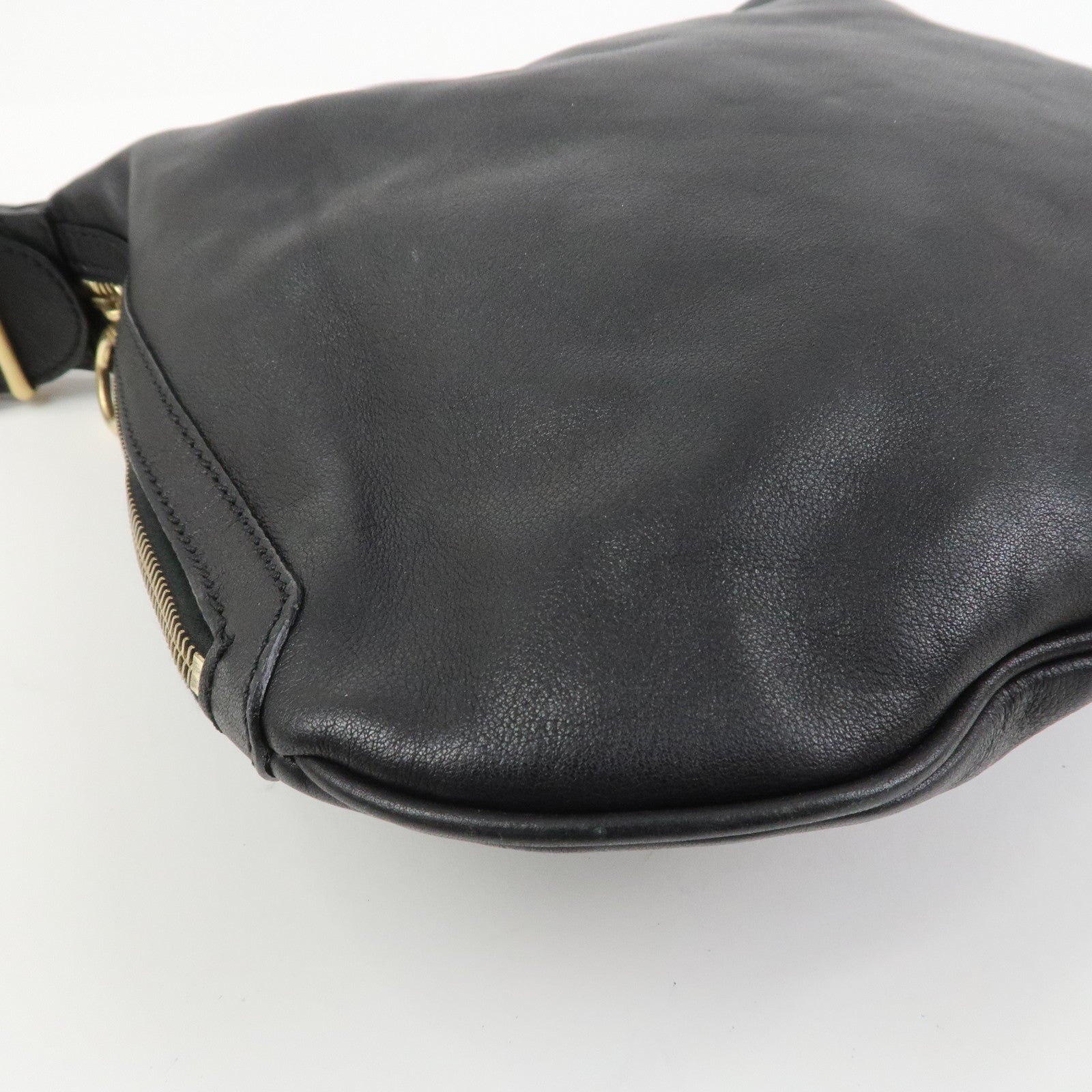 FENDI Logo Leather Shoulder Bag Hand Bag Black 8BR228