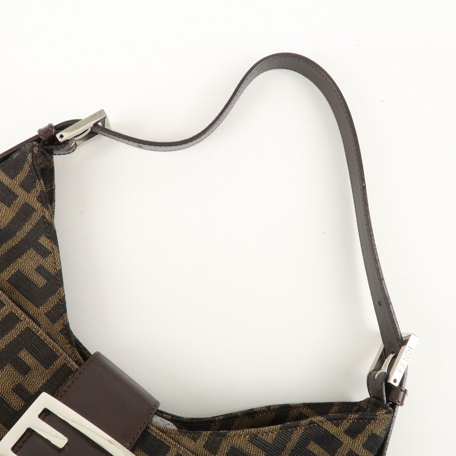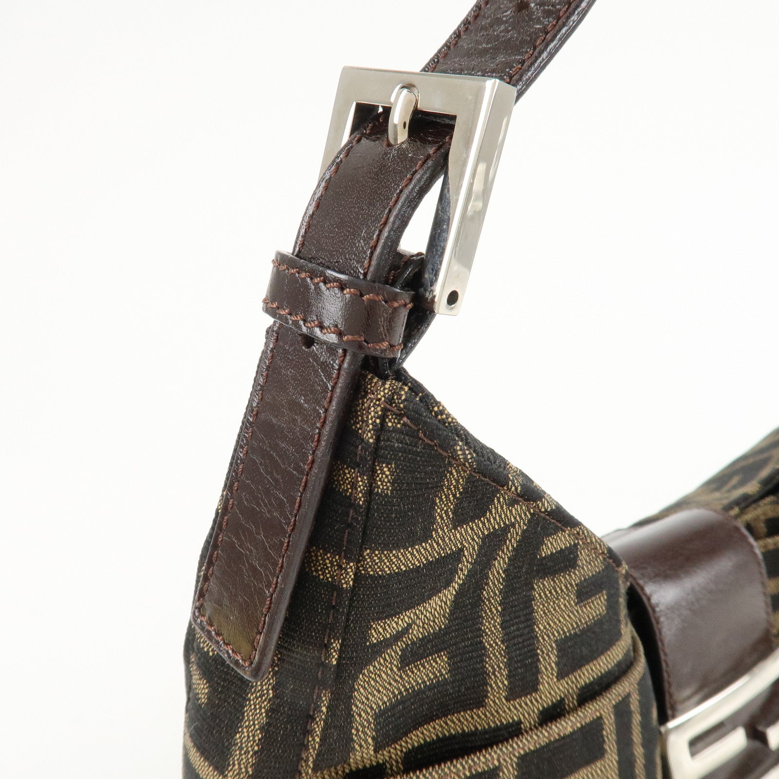 FENDI Zucca Canvas Leather Shoulder Bag Brown Black 26569 Used