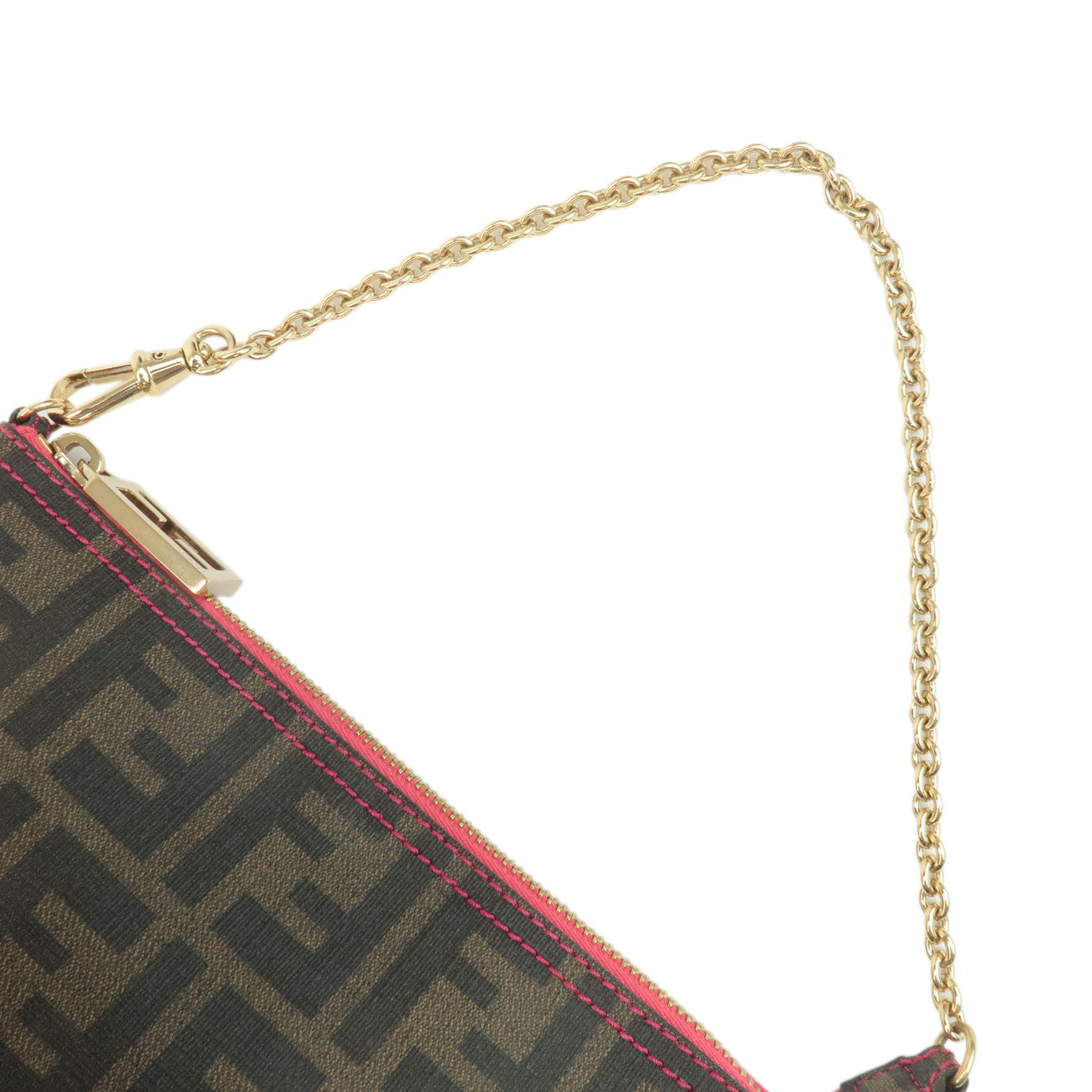 FENDI Zucca PVC Accessory Chain Pouch Brown Black Pink 8BR592 Used