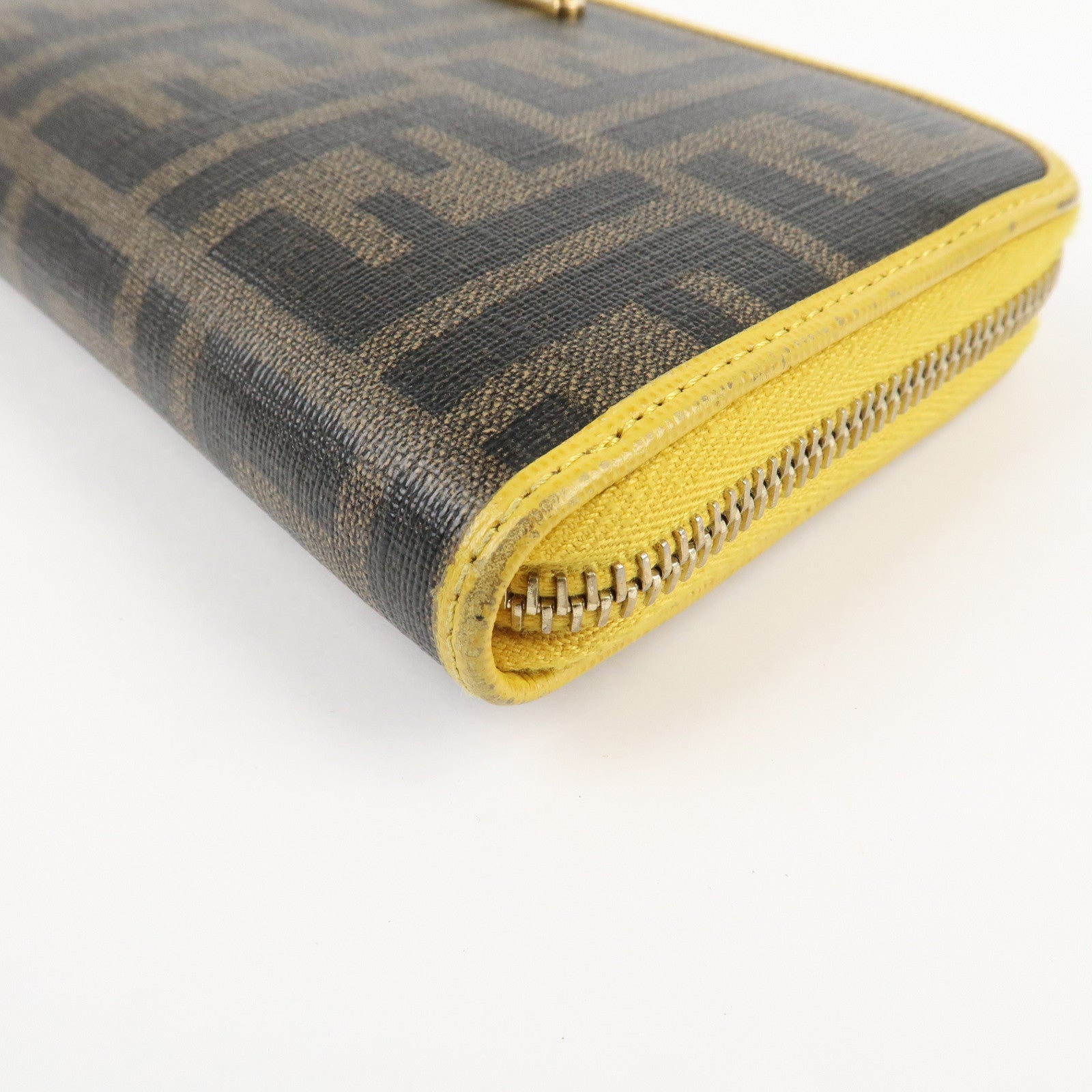 FENDI Zucca PVC Leather Round Zippy Long Wallet Brown Yellow 8M0299 Used